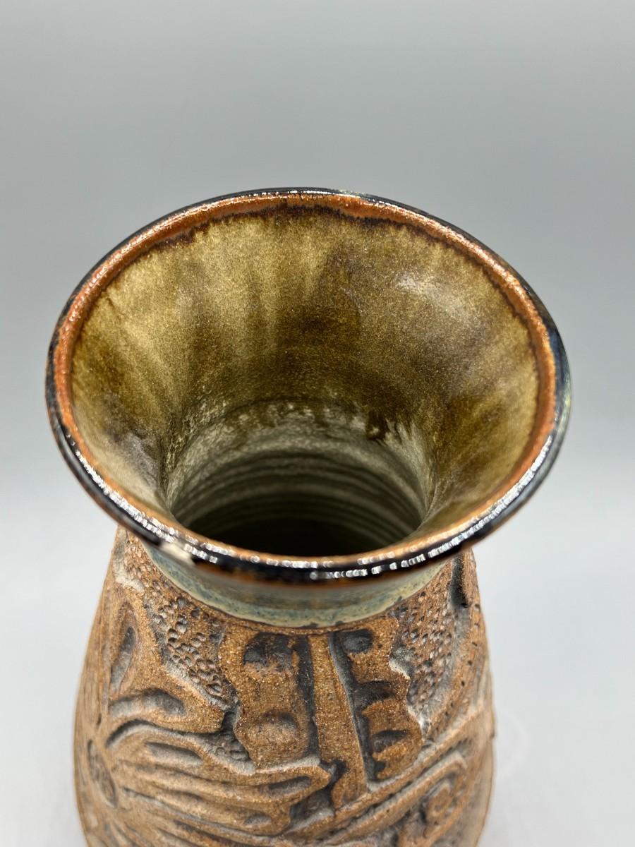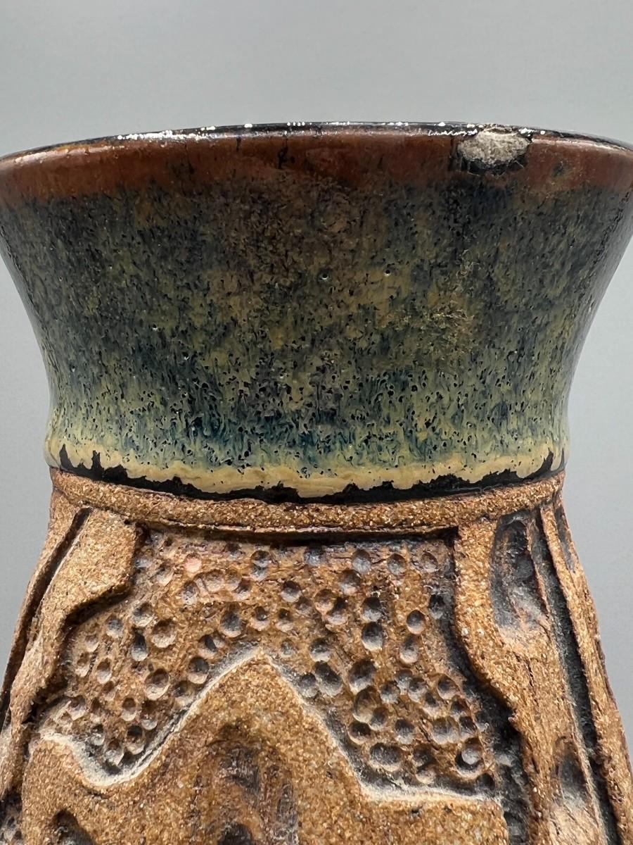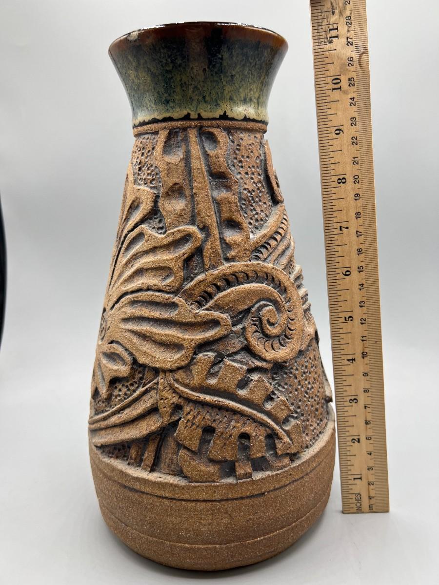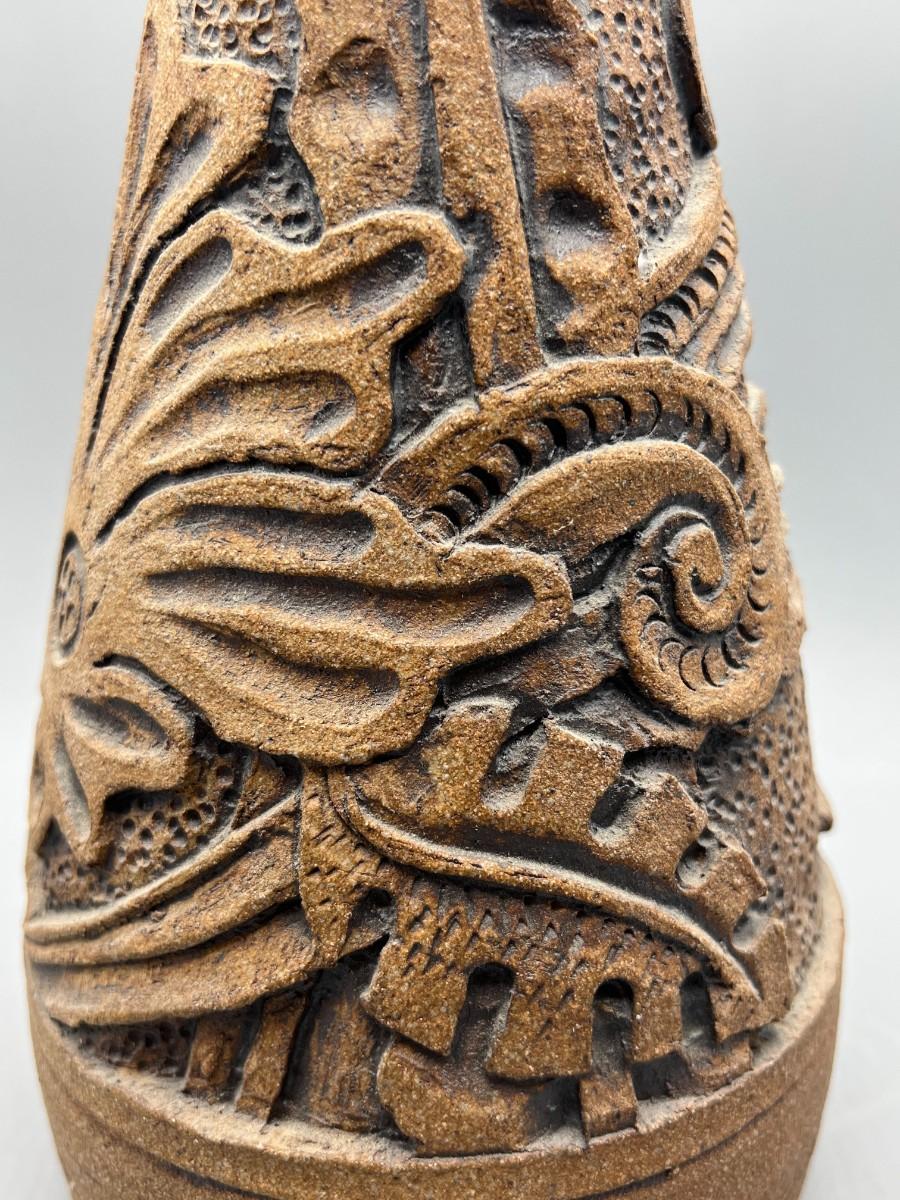 Vintage Dave Ramsey Pottery Stoneware Carved Foliage Vase