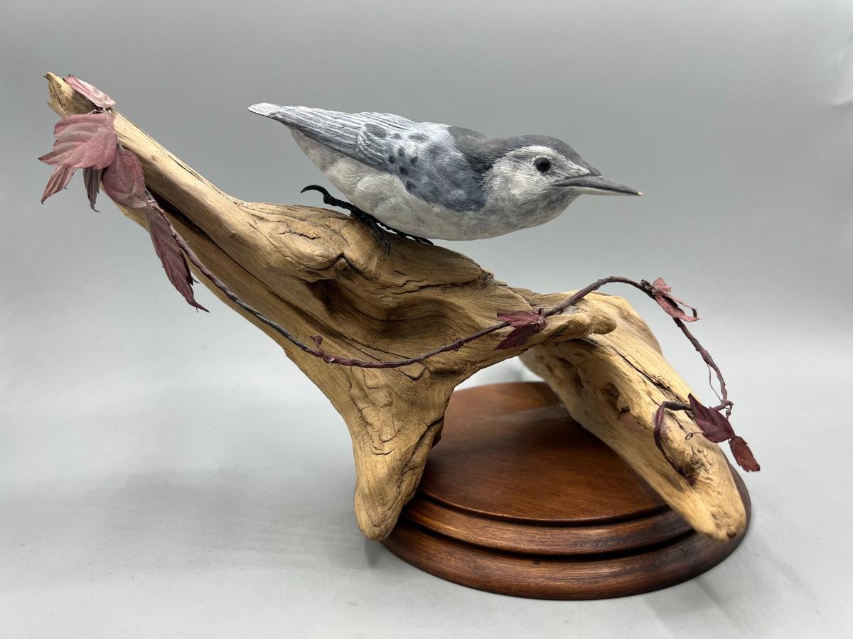 Retro White Breasted Nuthatch with Virginia Creeper Wild Animal Diorama
