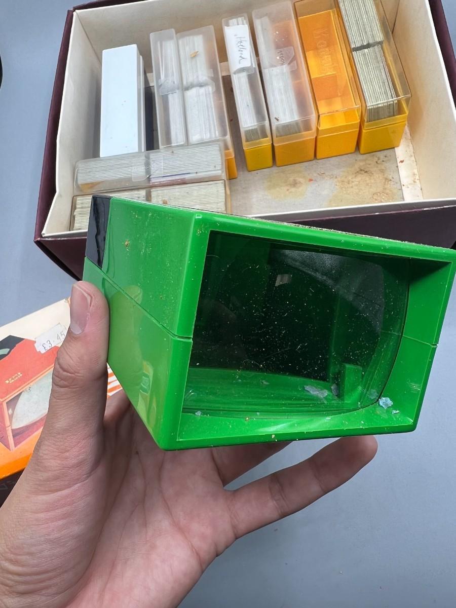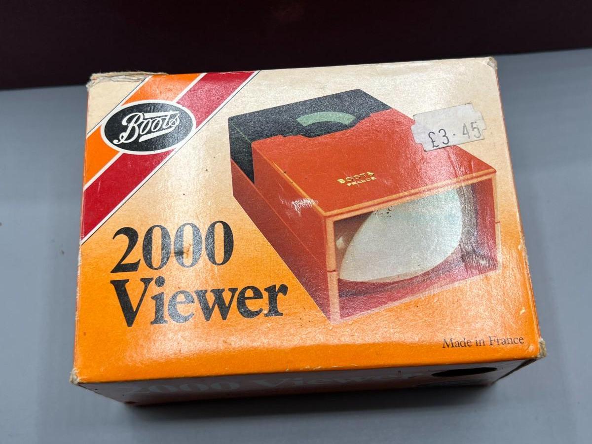 There is some vintage wear to the viewer and the light has not been tested with new batteries, check pictures for more details and for what comes in the lot.