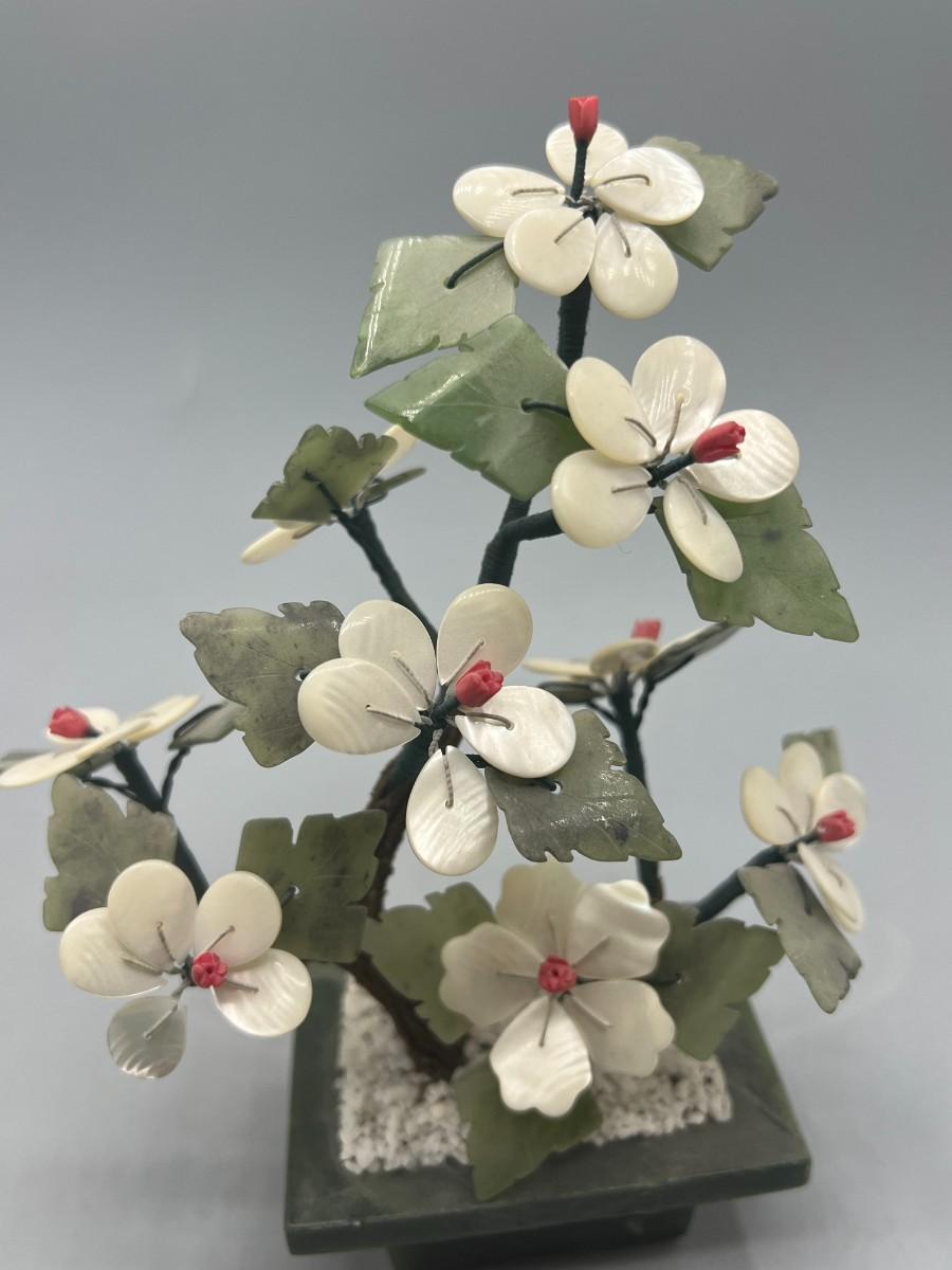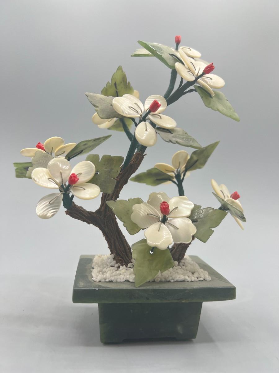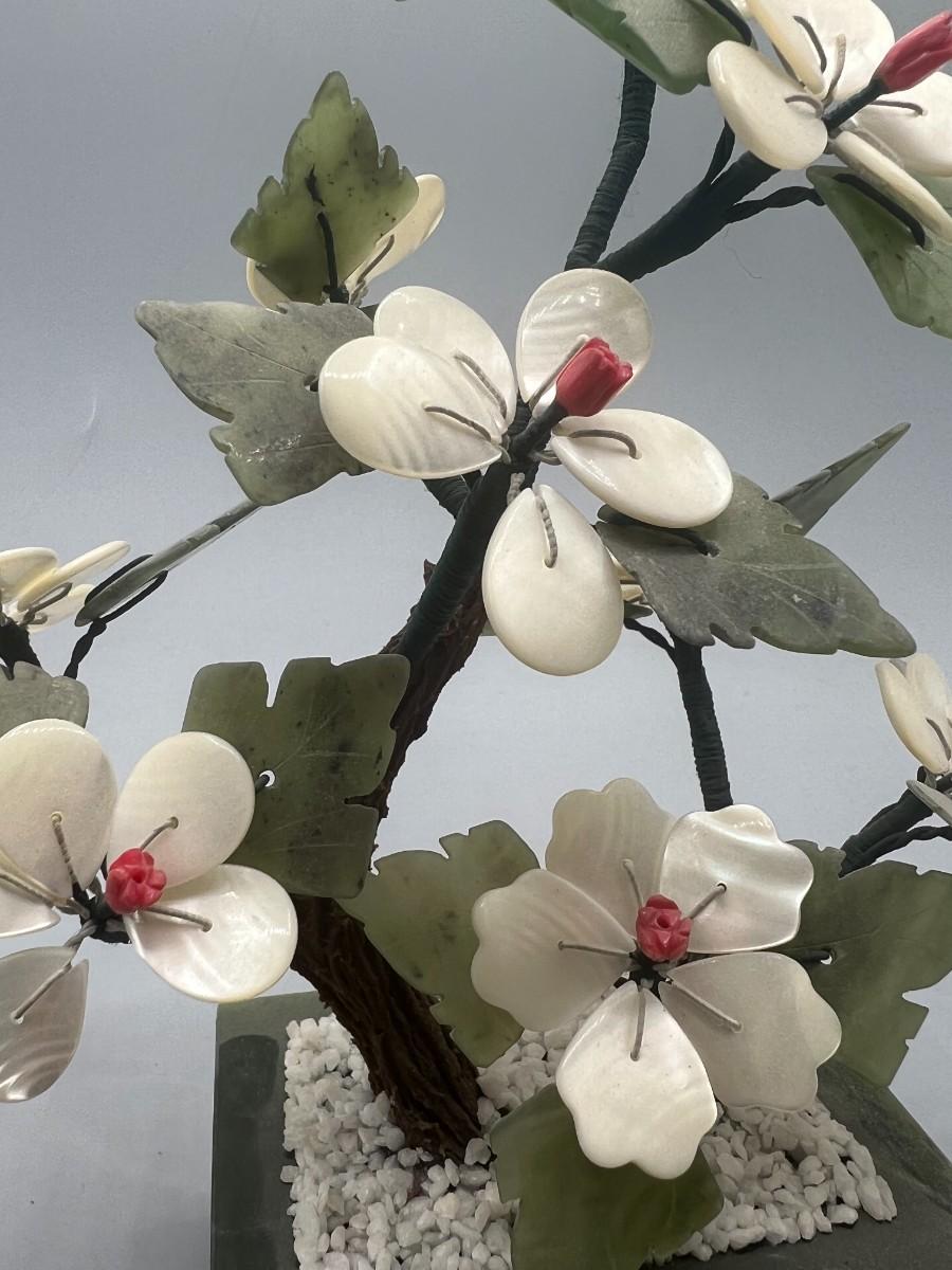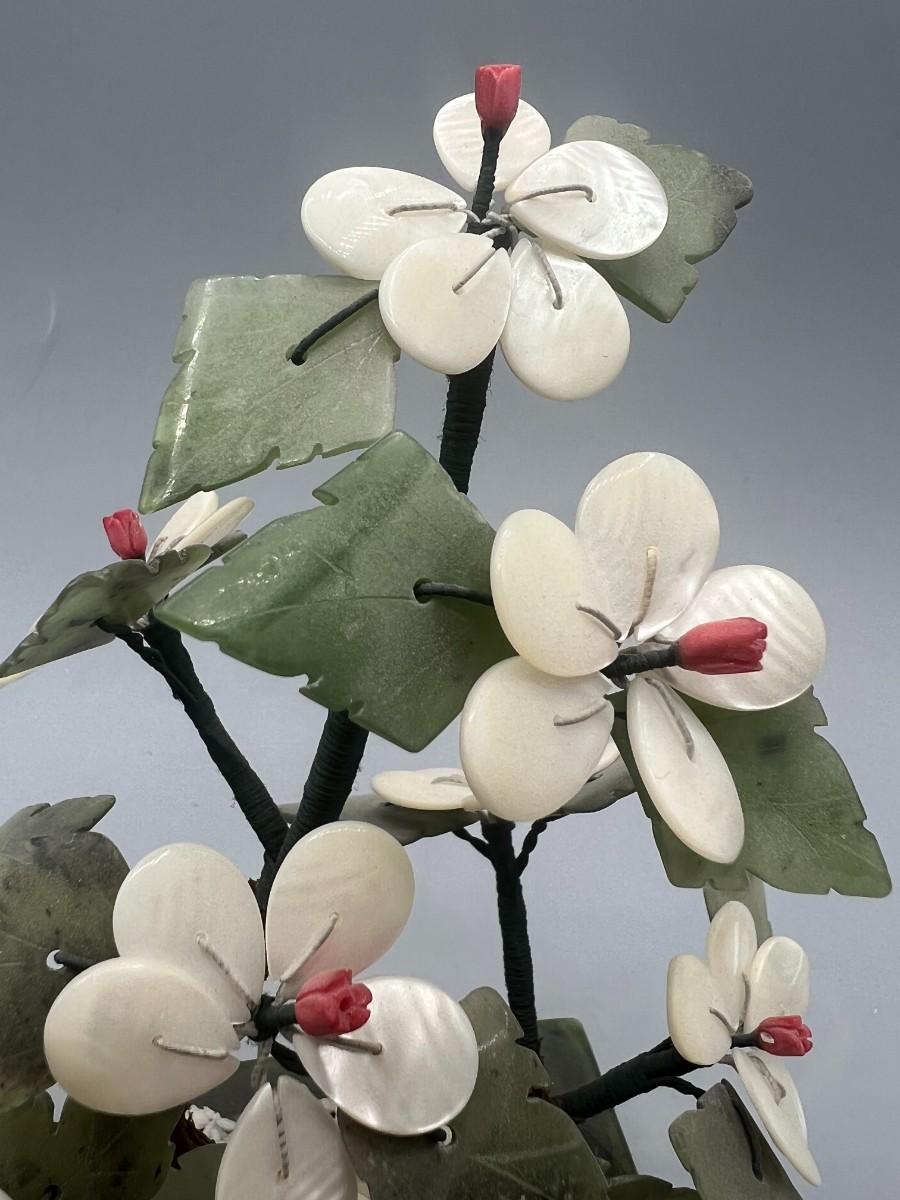 Vintage Asian Japanese Jade Glass Mother of Pearl Abalone Yulan Magnolia Bonsai Tree Decor
