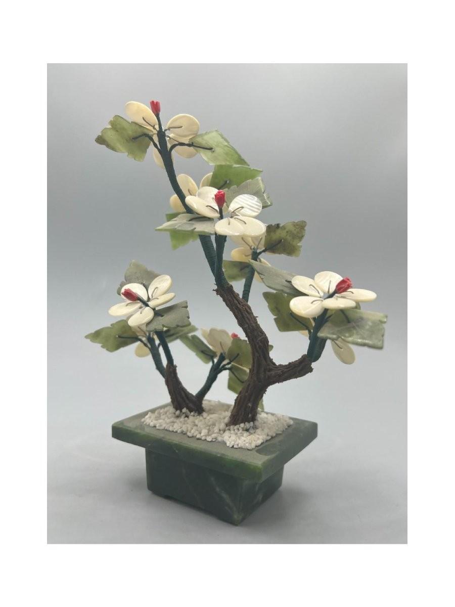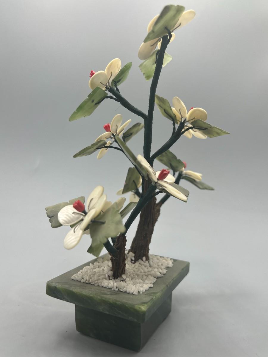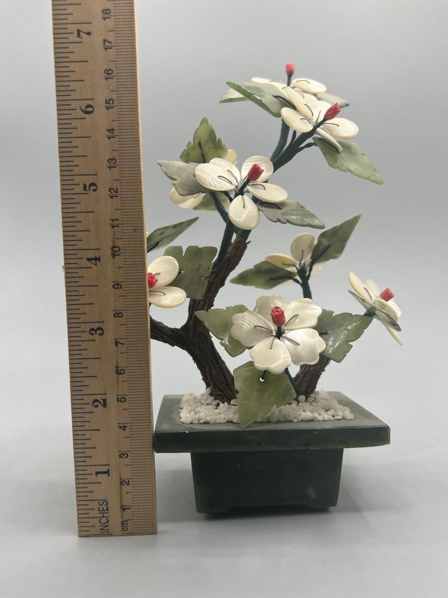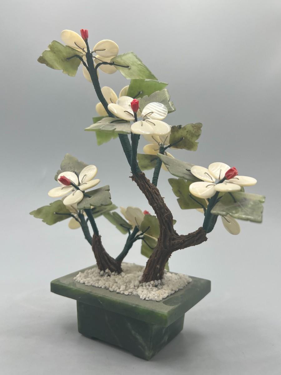 Vintage Asian Japanese Jade Glass Mother of Pearl Abalone Yulan Magnolia Bonsai Tree Decor