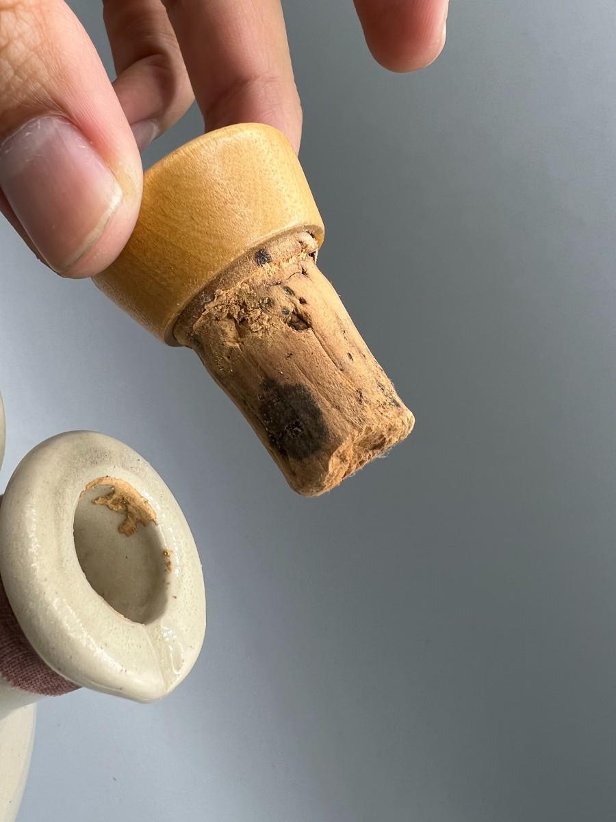 There is no significant cracks or chips to the decanter bottle and is in overall good displayable or collectible condition. The cork fits well, check pictures for more details and for sizing.