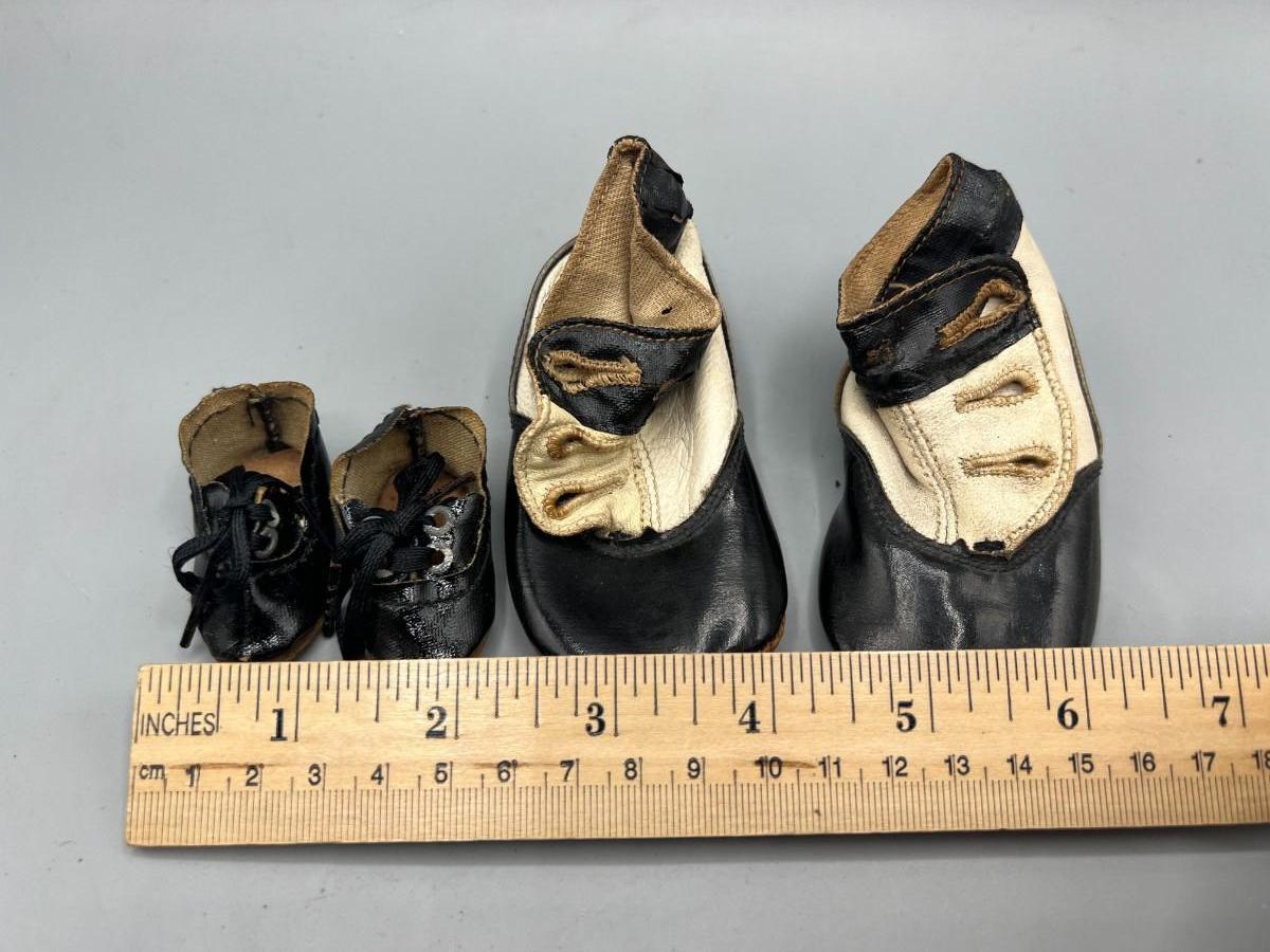 There is some vintage wear to both of the pair of shoes, but there is no significant damage and is in overall good collectible or useable condition. Check pictures for more details and for sizing.