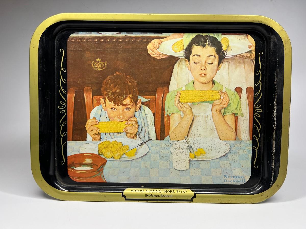 Vintage Norman Rockwell Metal Tray Who's Having More Fun