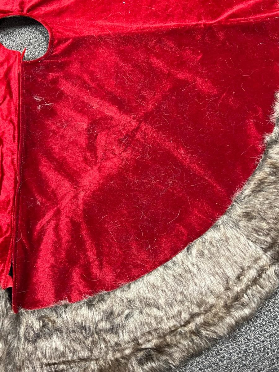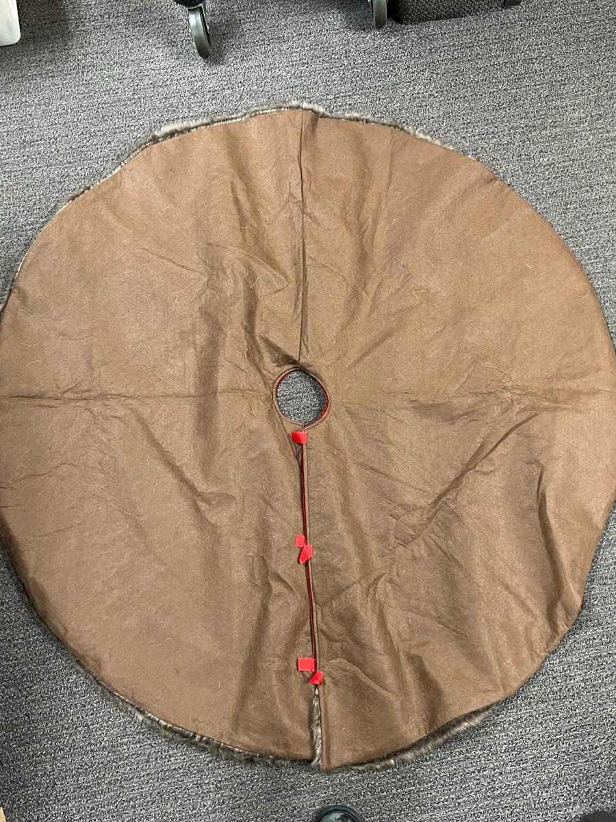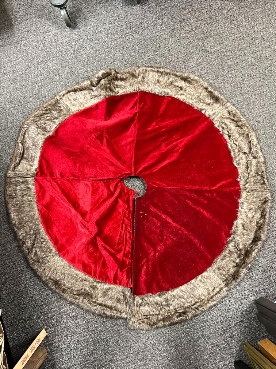 There is no significant rips or tears to the tree skirt and is in overall good useable condition. Check pictures for more details and for general sizing.