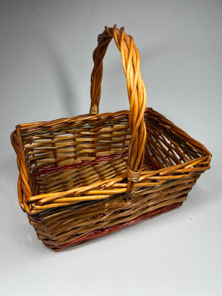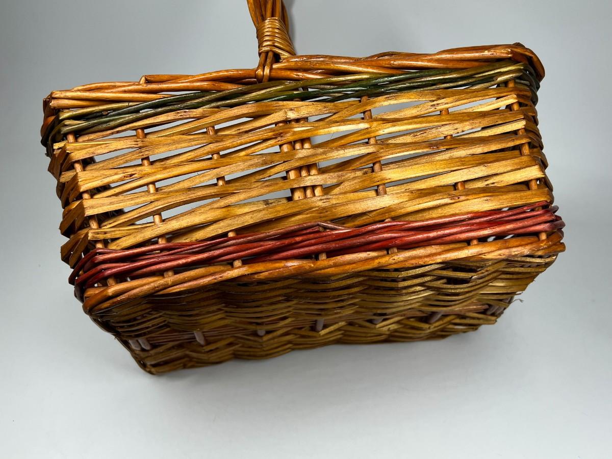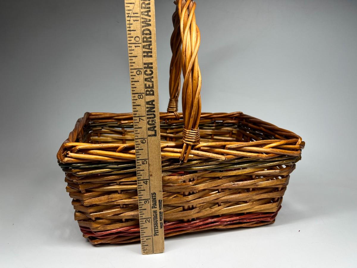 12" Christmas Holiday Wicker Basket with Red & Green Detail. Good condition, some light wear on the bottom.