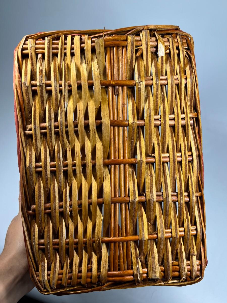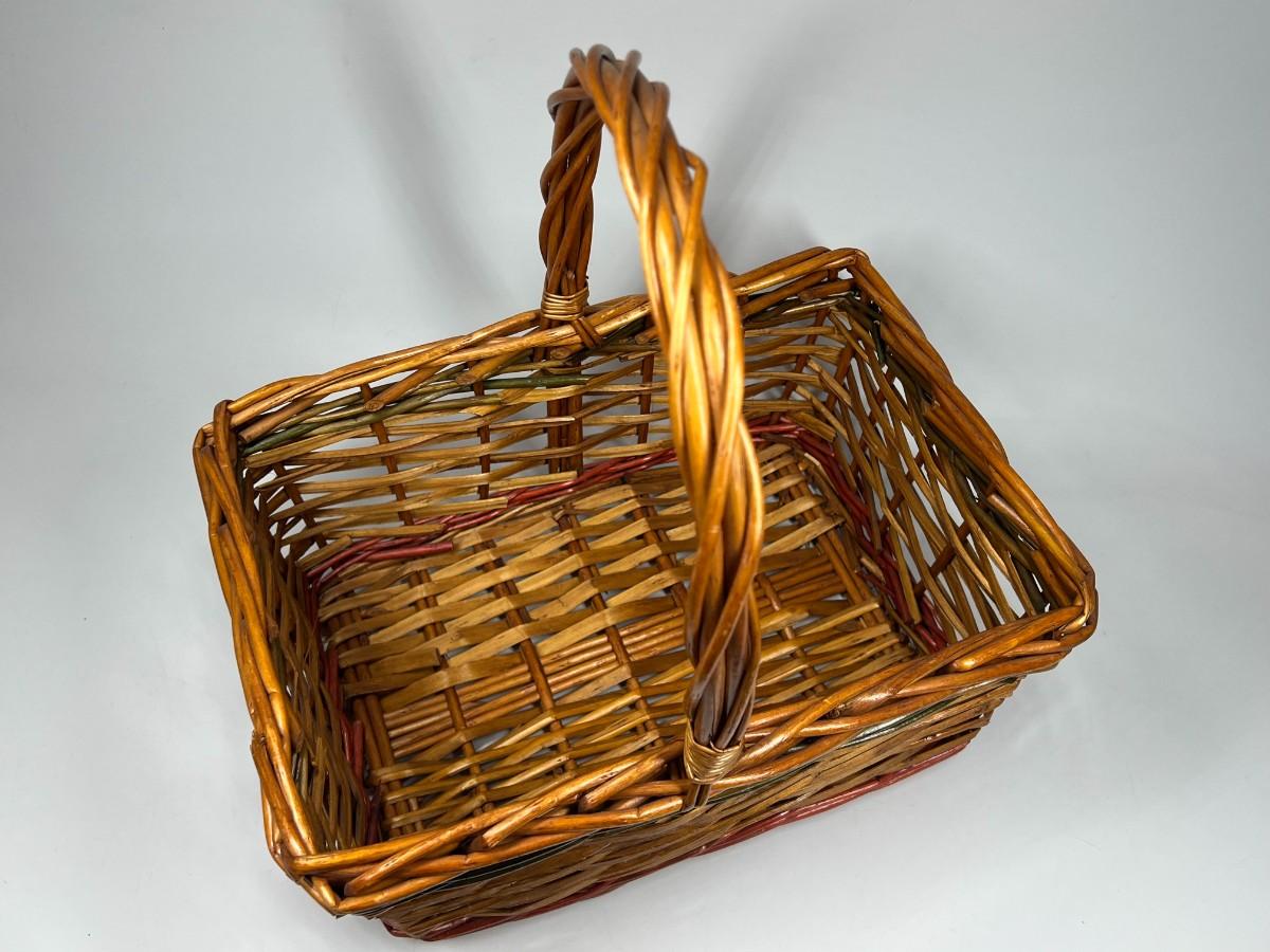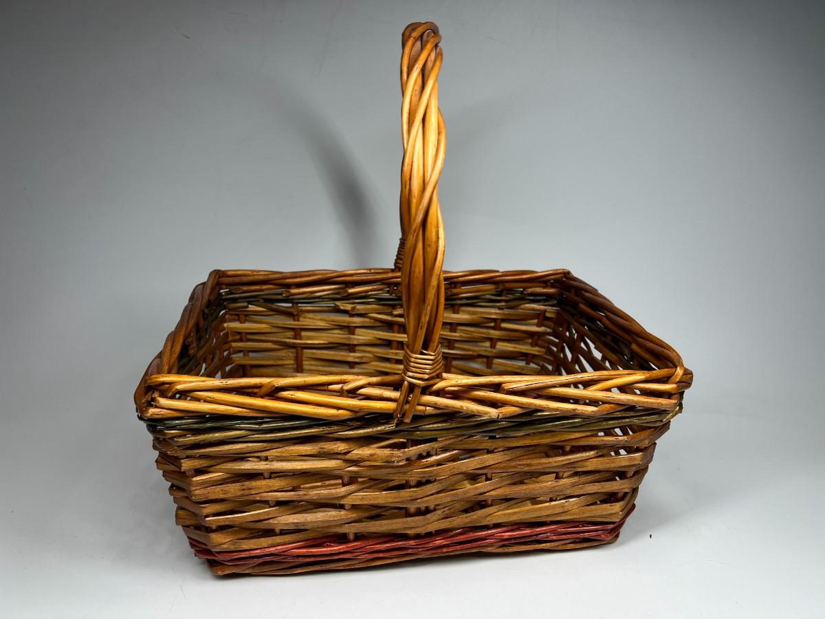 12" Christmas Holiday Wicker Basket with Red & Green Detail. Good condition, some light wear on the bottom.