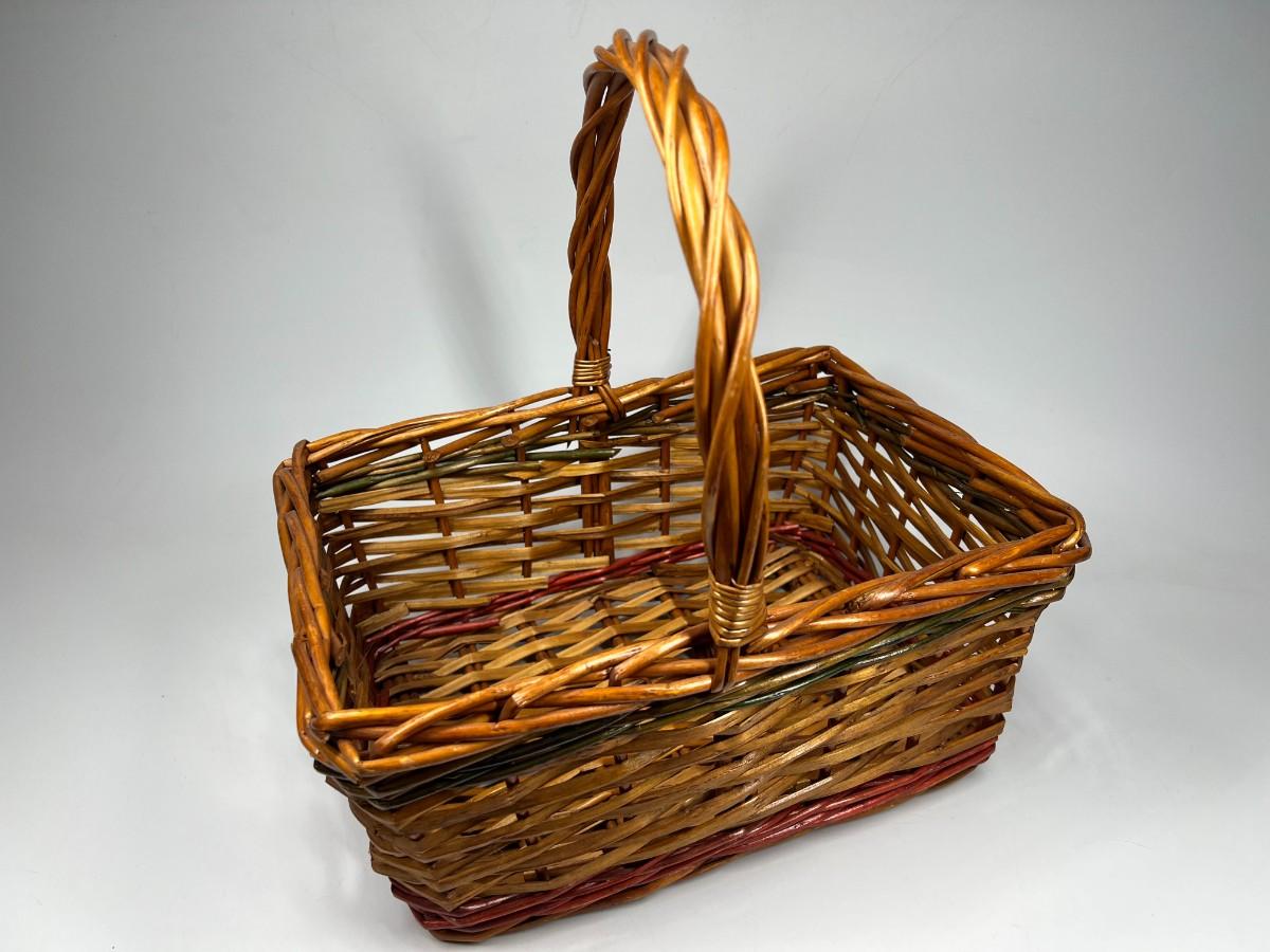 12" Christmas Holiday Wicker Basket with Red & Green Detail