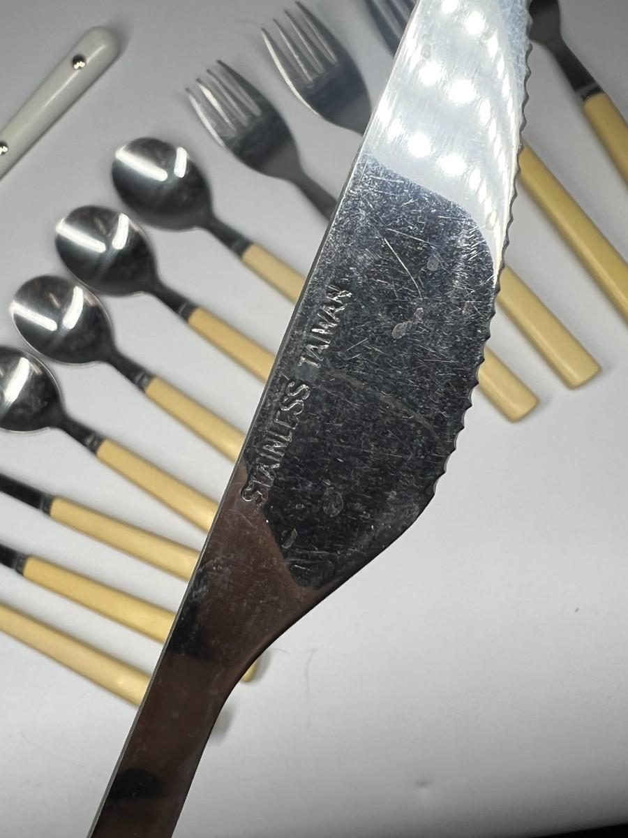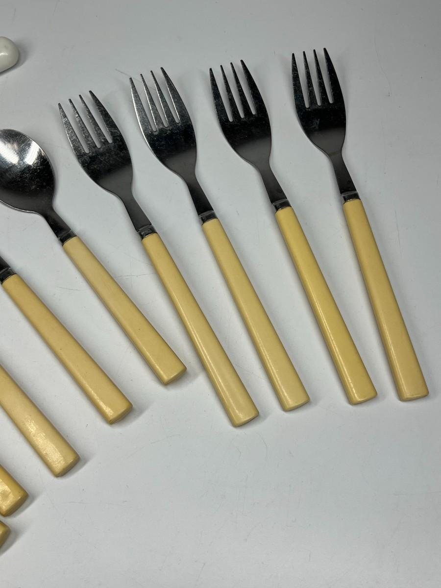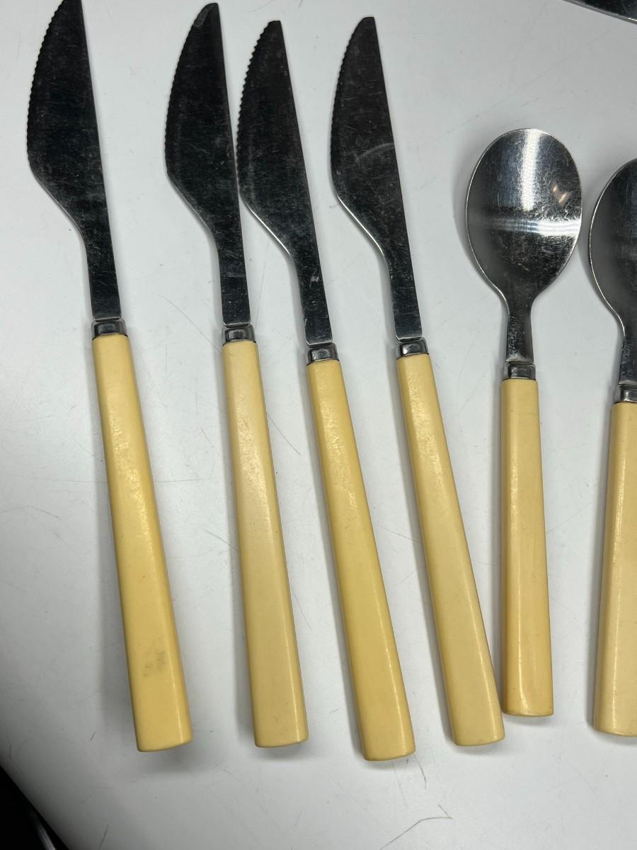 Vintage Retro Plastic Handle Cutlery Flatware Knives Forks Spoons