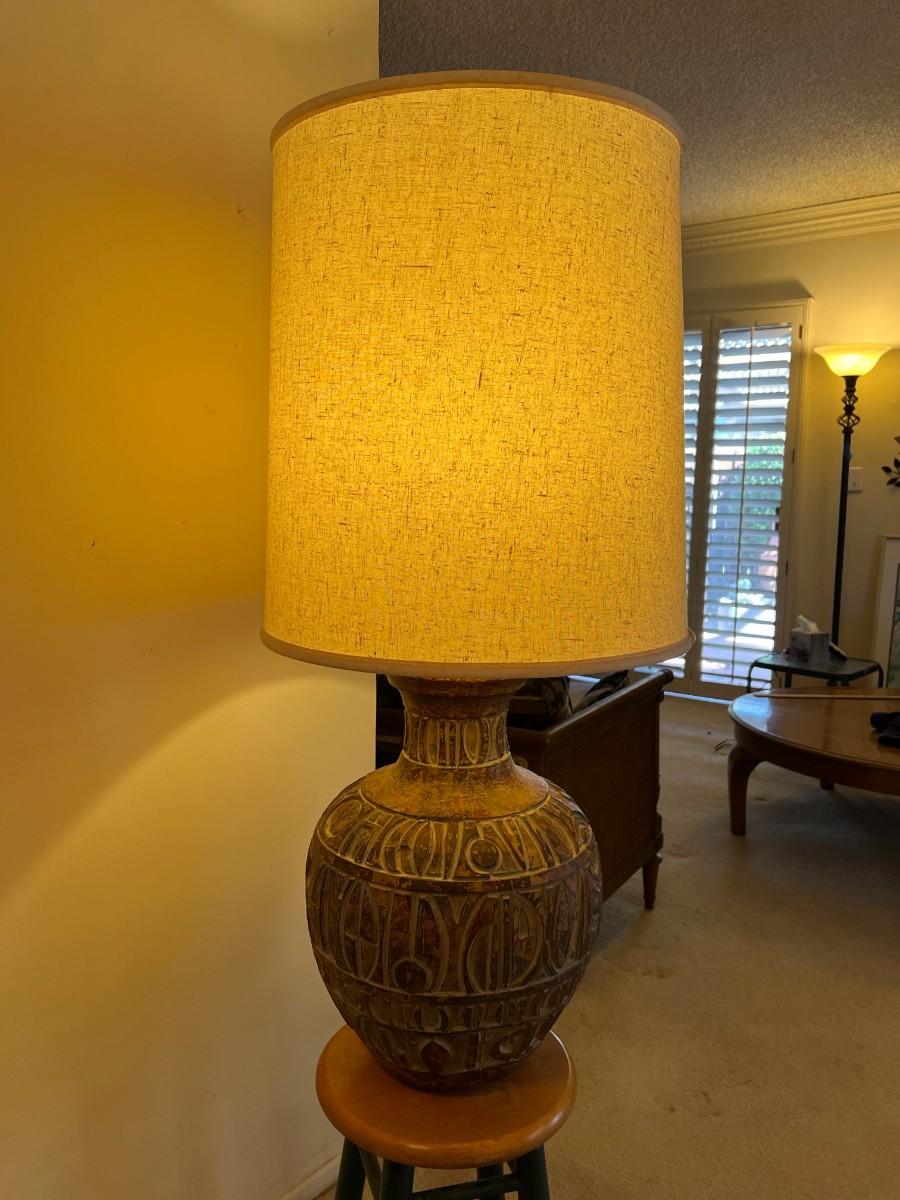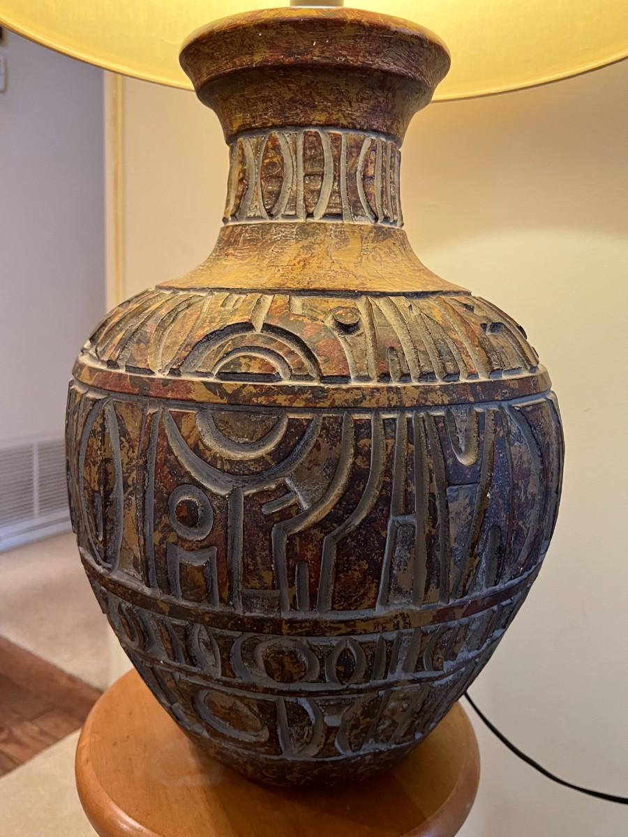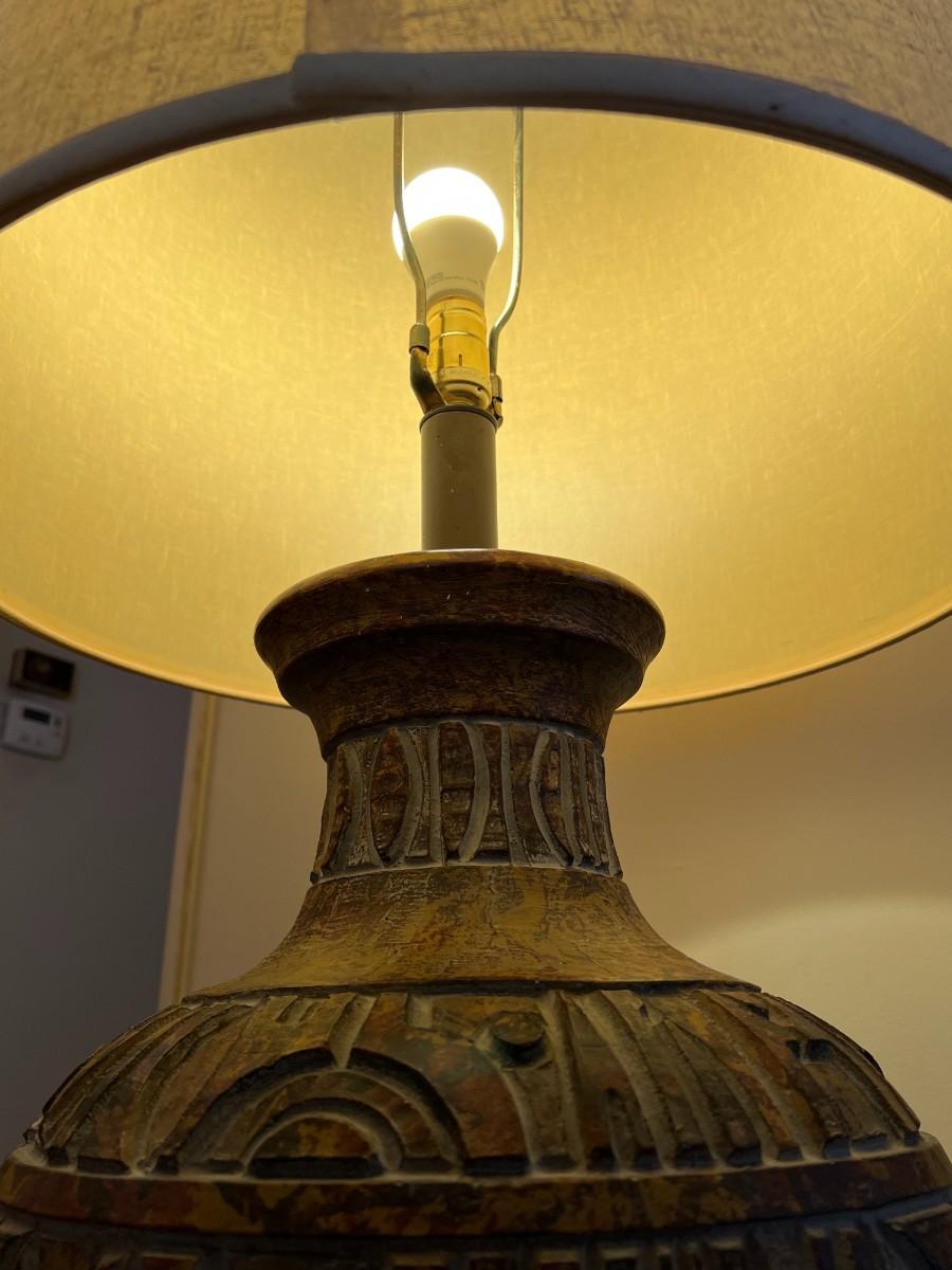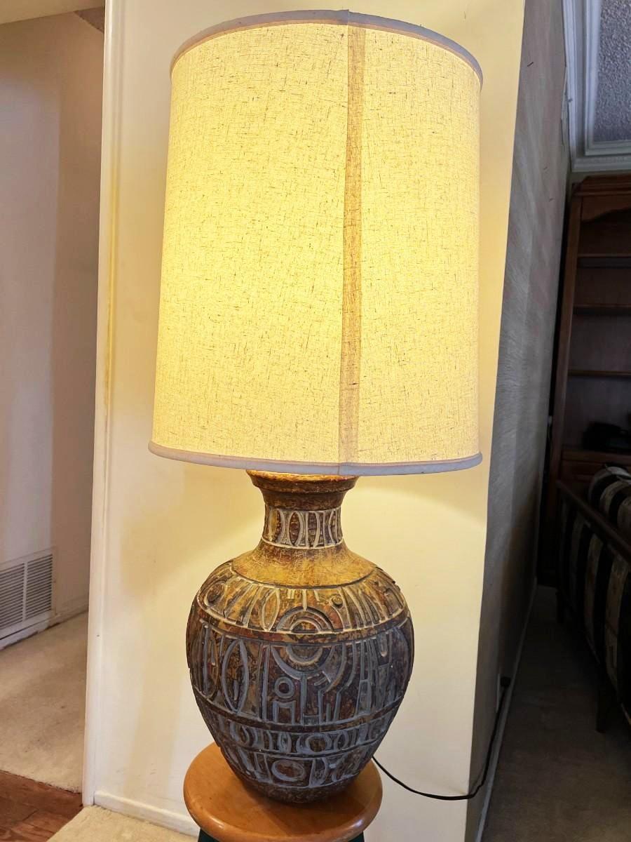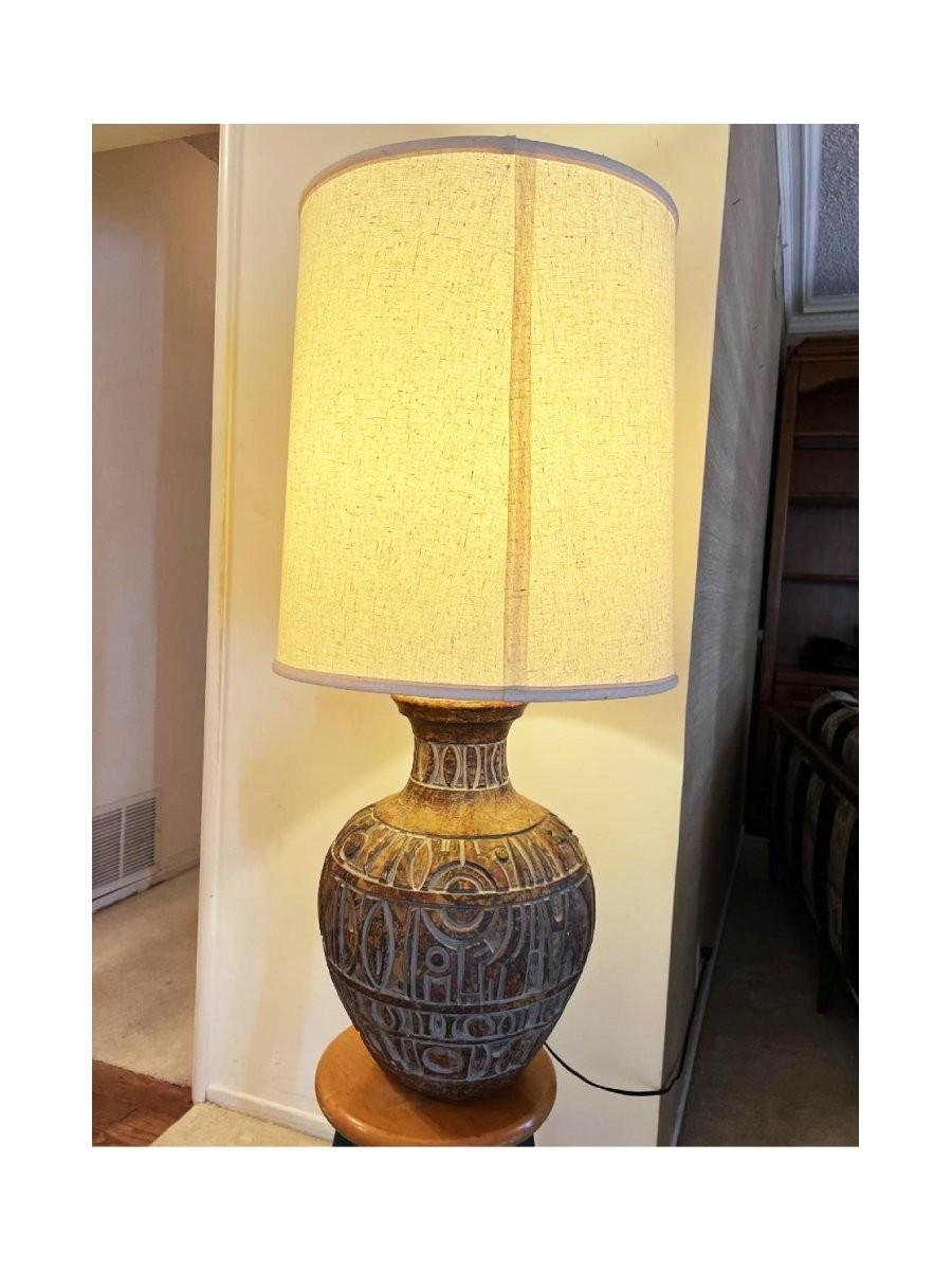 Large Stone Plaster Primitive Contemporary Mid Century MCM Design Tableside Lamp