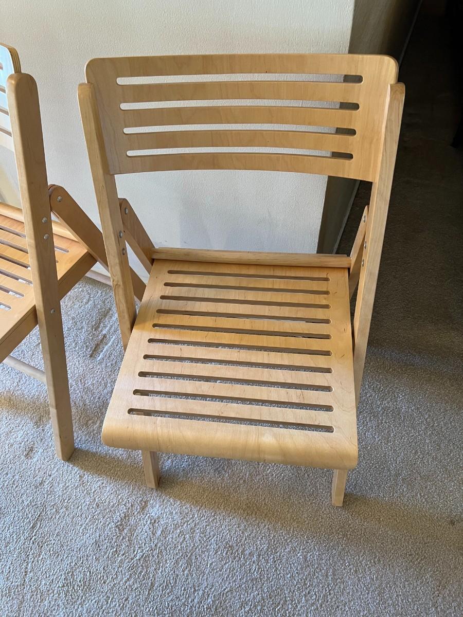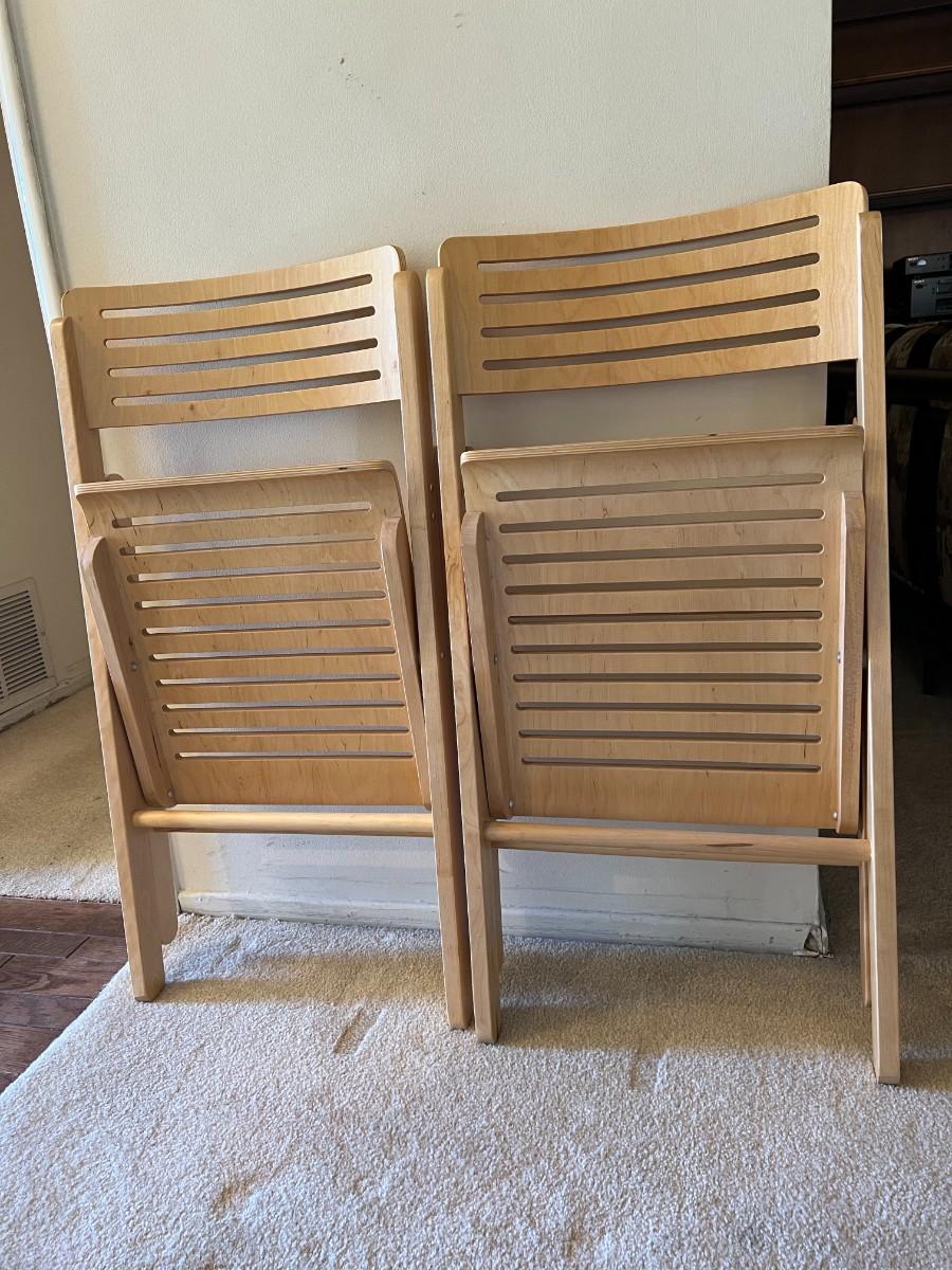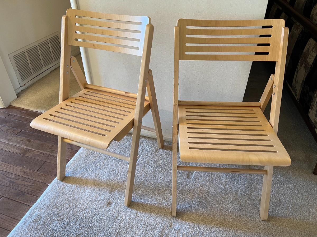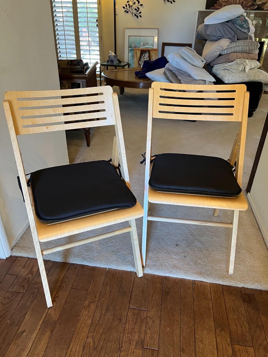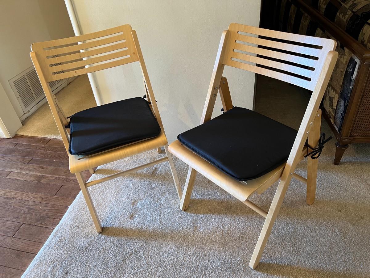 Pair of Foldable Light Solid Wood Contemporary Modern Slat Chairs with Seat Cushions
