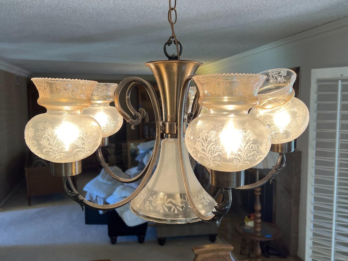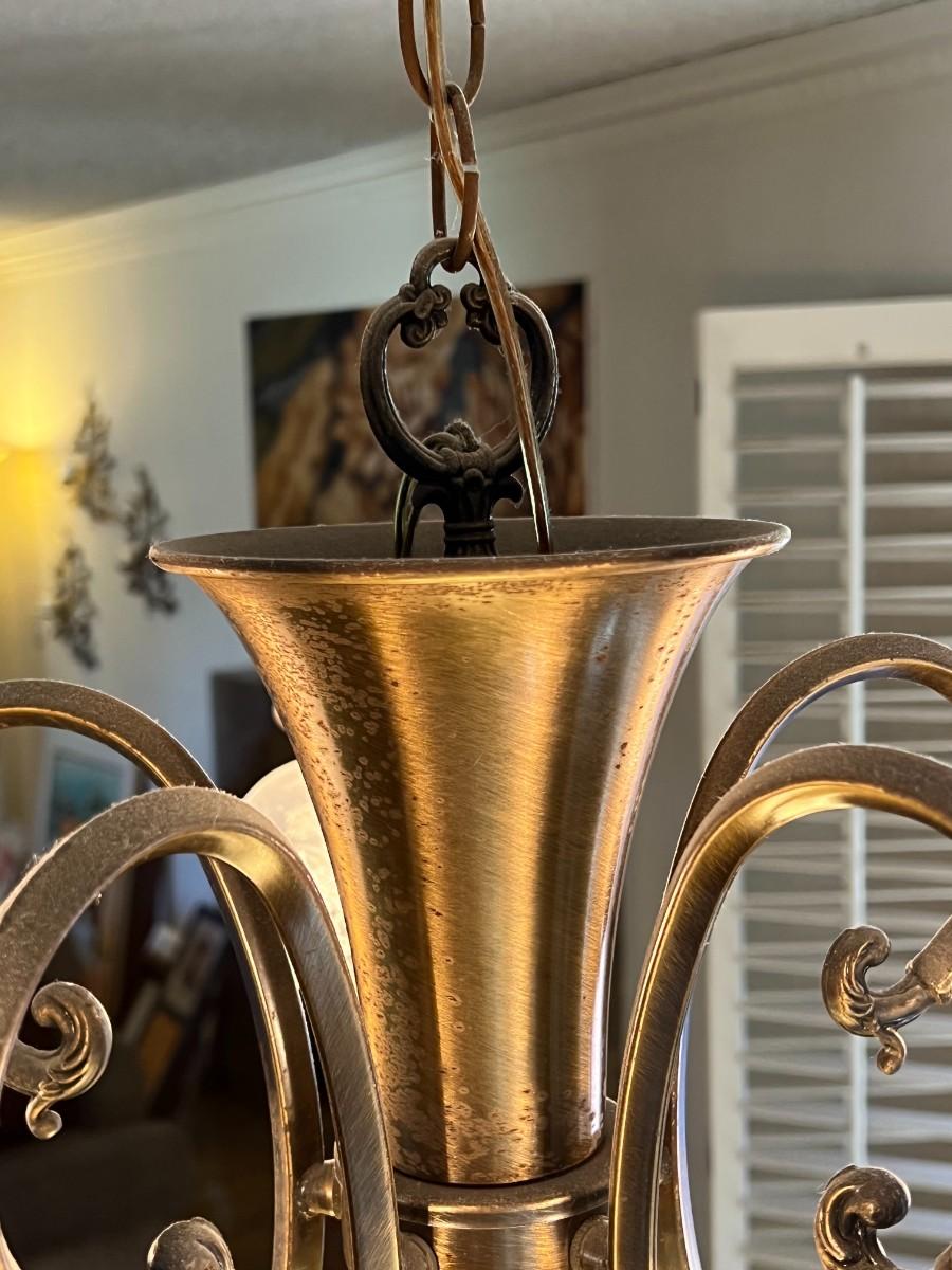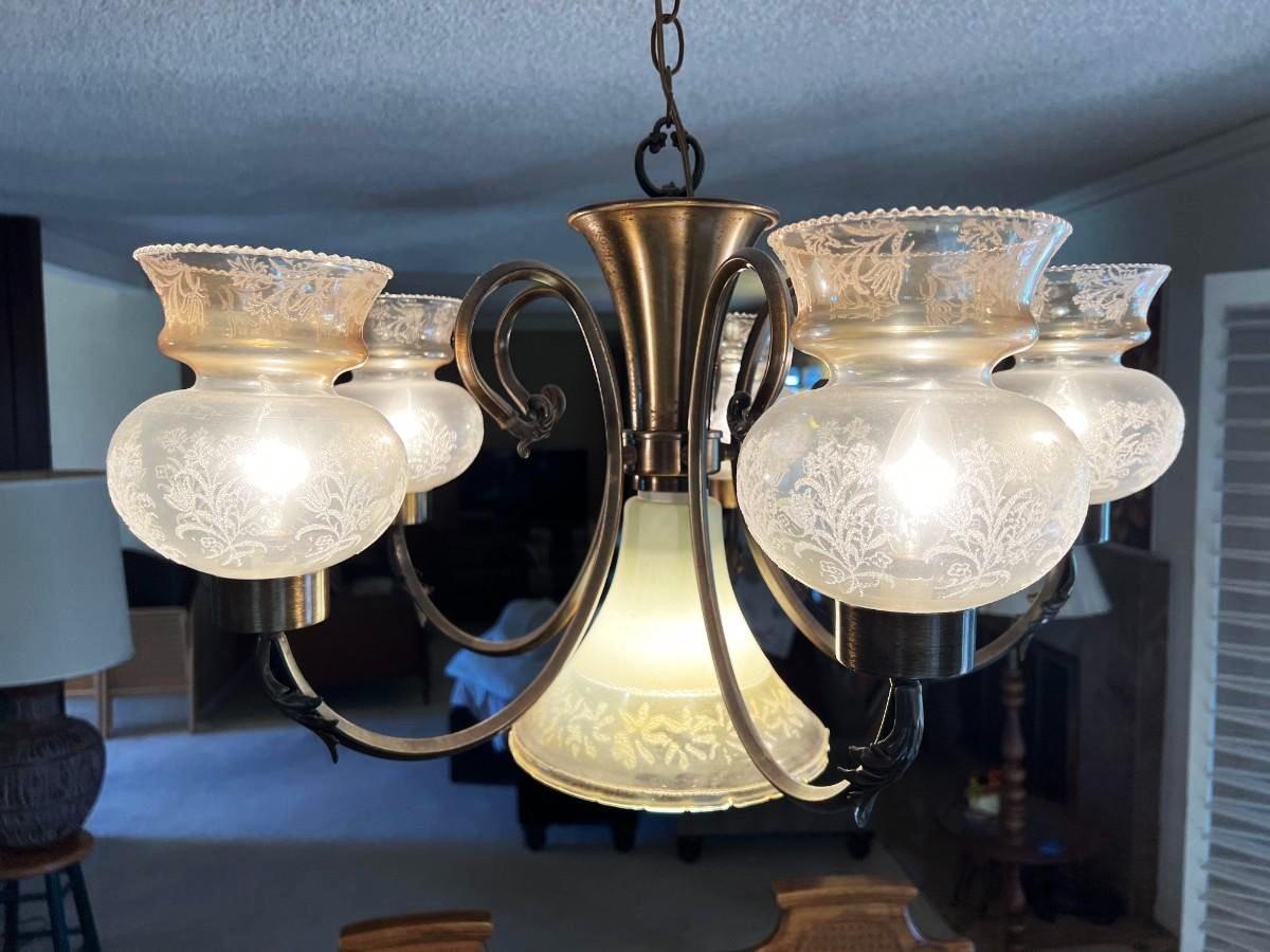 There is no significant damage to the lamp and is in overall good displayable and useable condition. Check pictures for more details. Everything on the lamp works, but needs to removed from the ceiling.