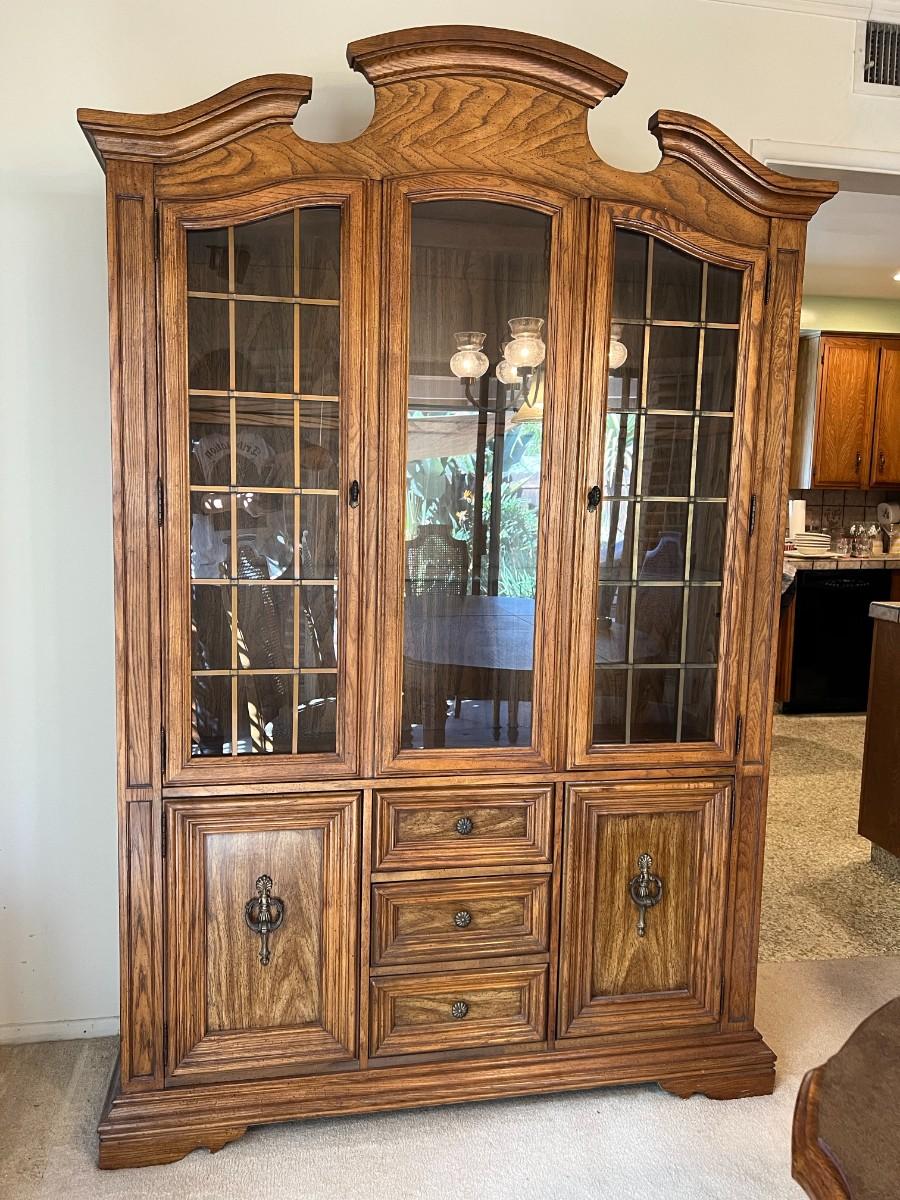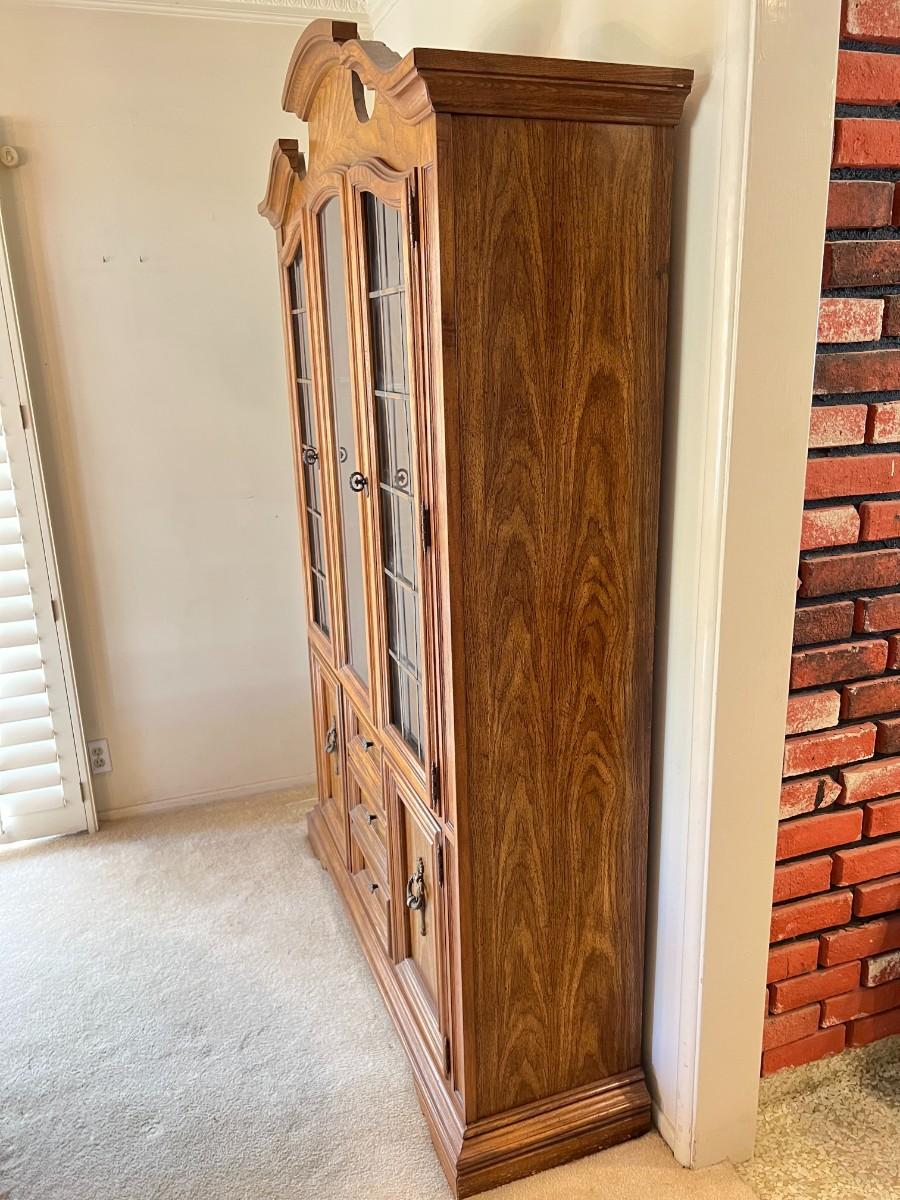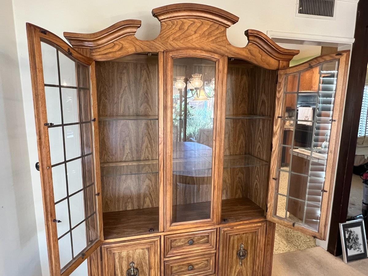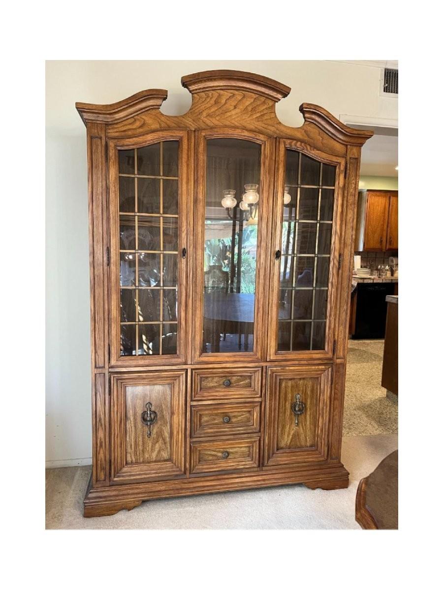 There is no significant damage to the curio cabinet and is in overall good displayable condition. Check pictures for more details and for sizing.