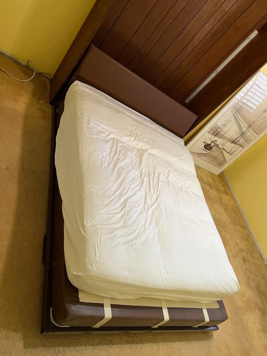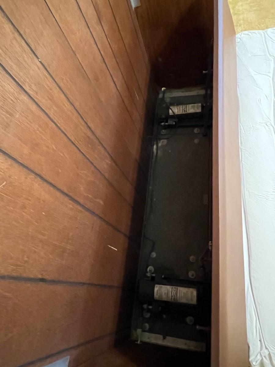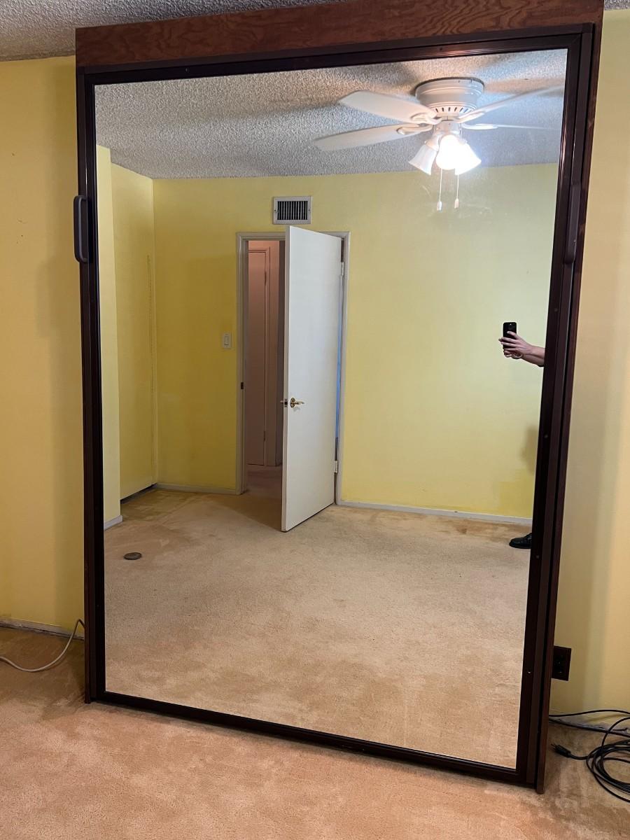 Mirrored Front Queen Size Murphy Hideaway Bed. Great for guest rooms. Queen size mattress included. About 93"x64"x18" outer frame dimensions. Lowers and raises easily.