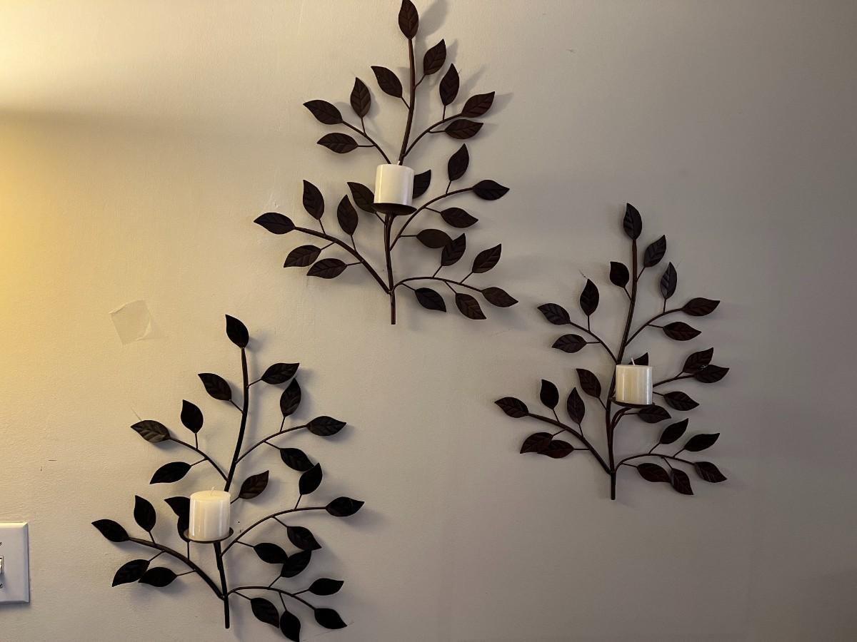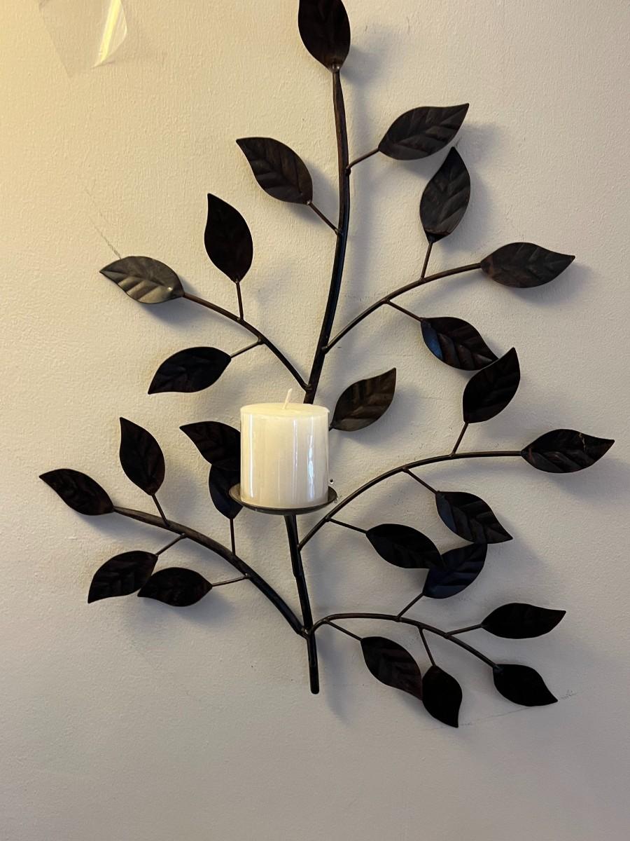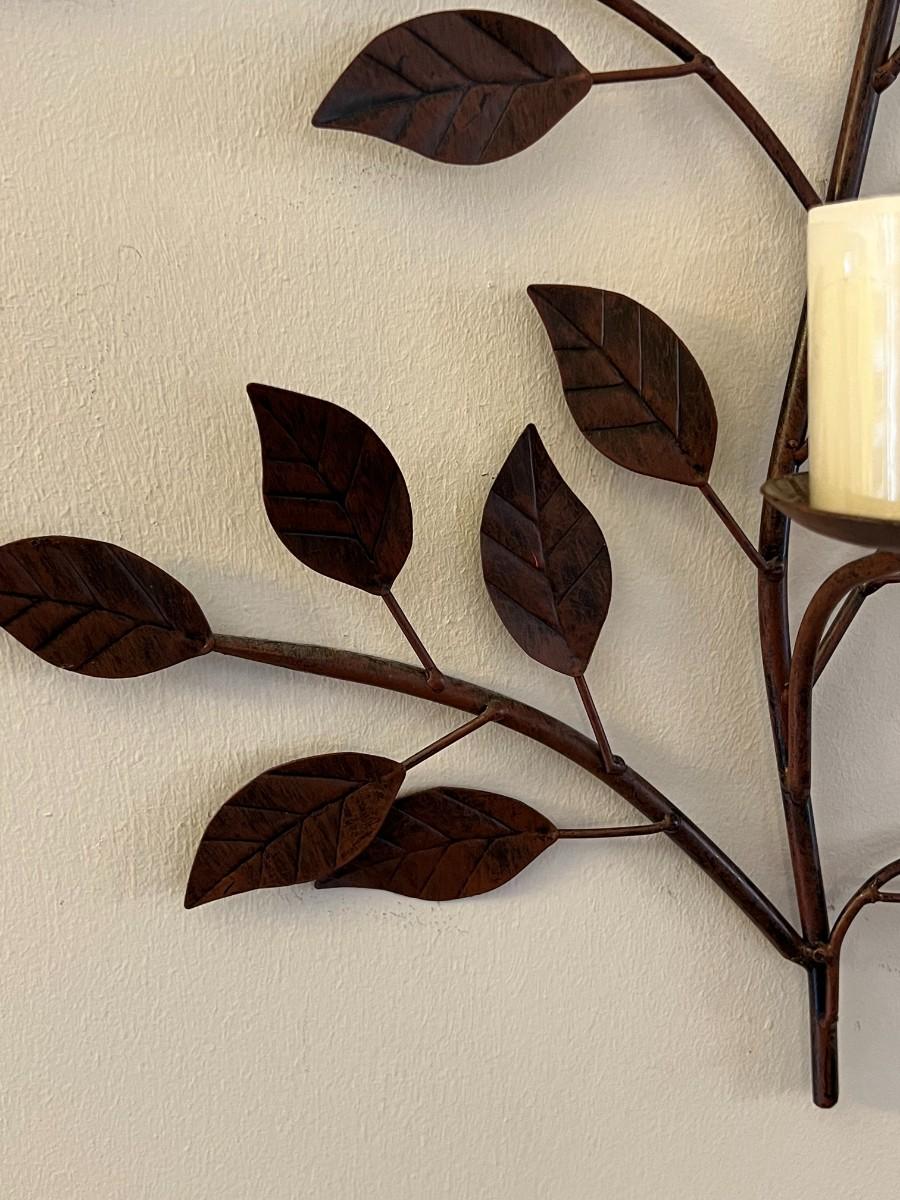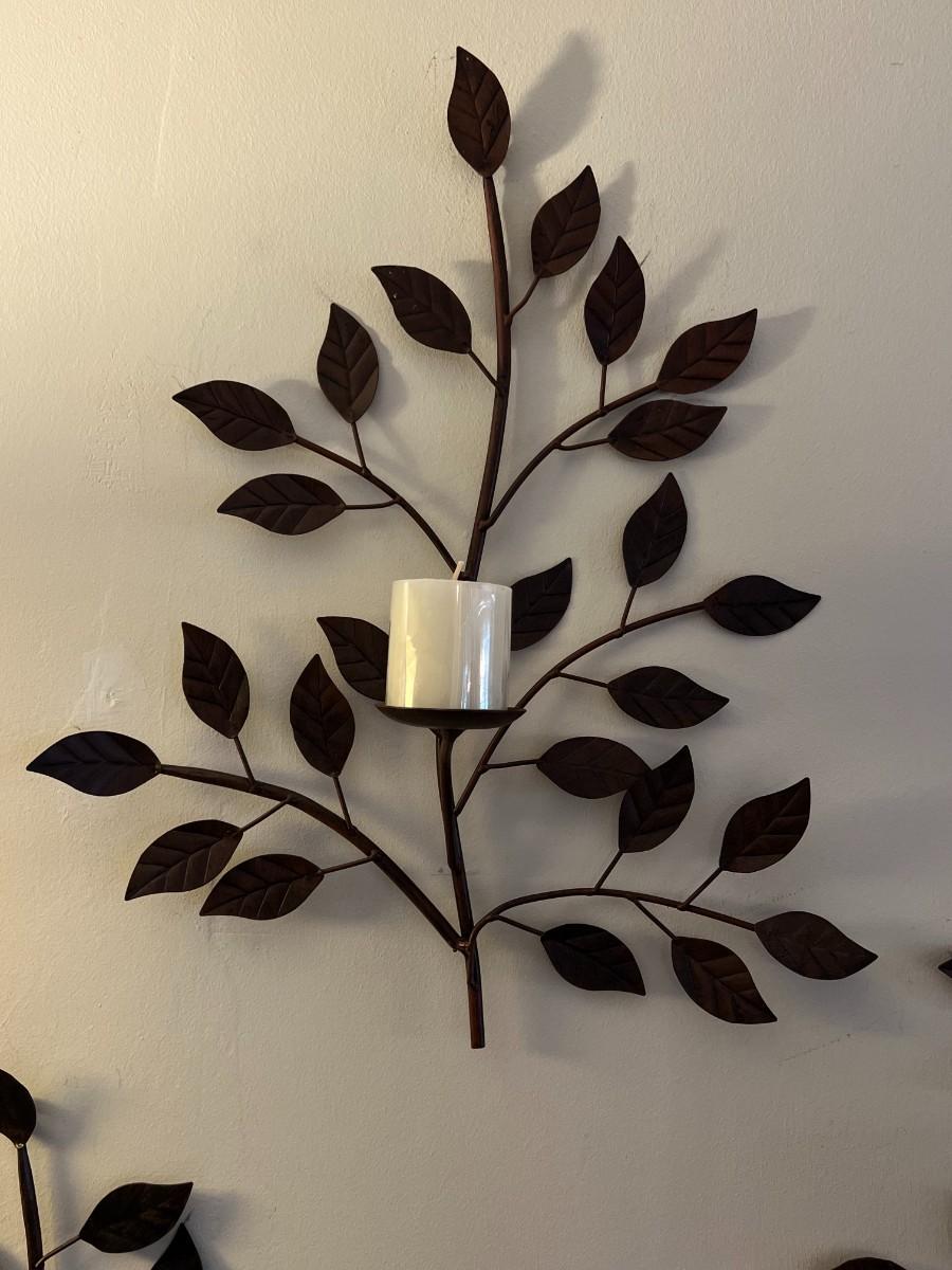 Set of Wall Hanging Metal Leaf Branch Candle Holders