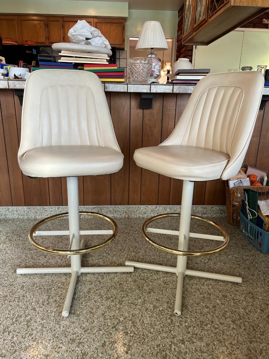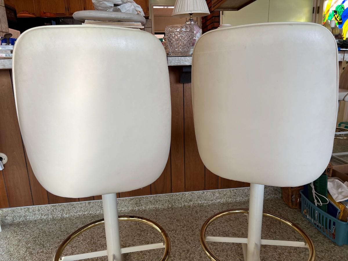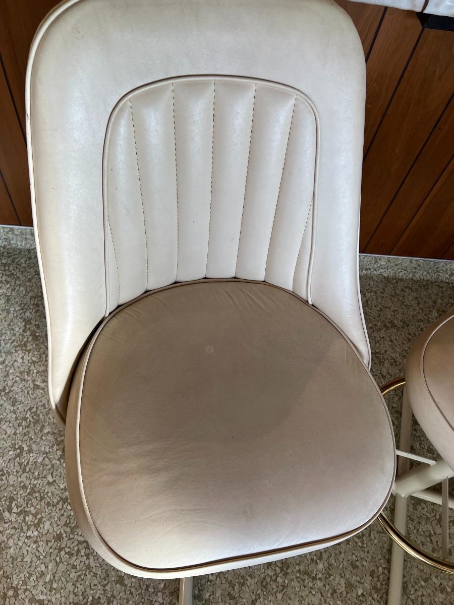 Retro White Vinyl Upholstered Swivel Bar Chairs with Foot Rail