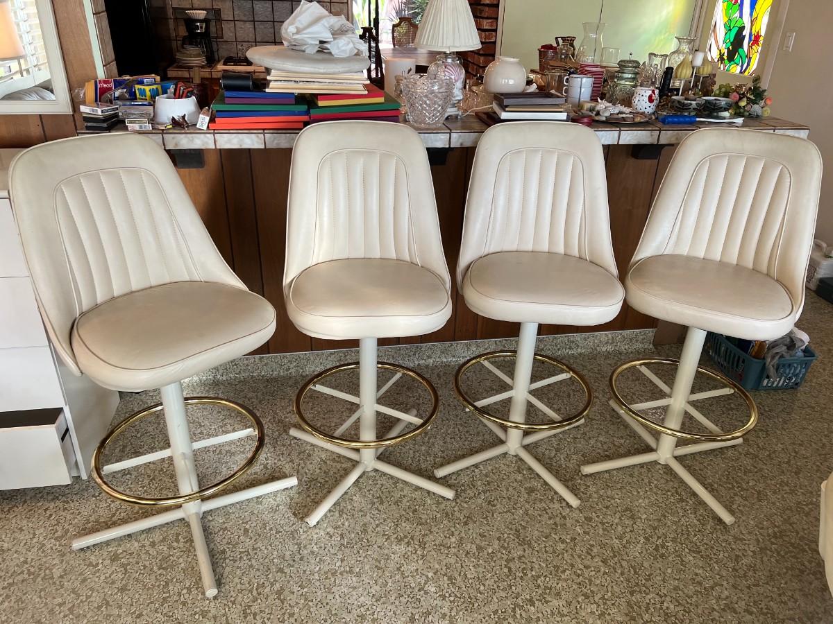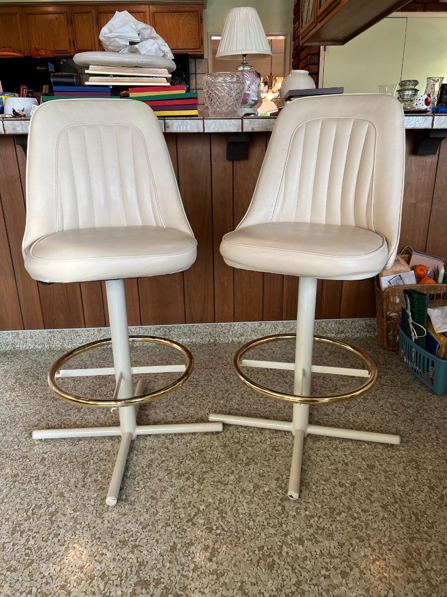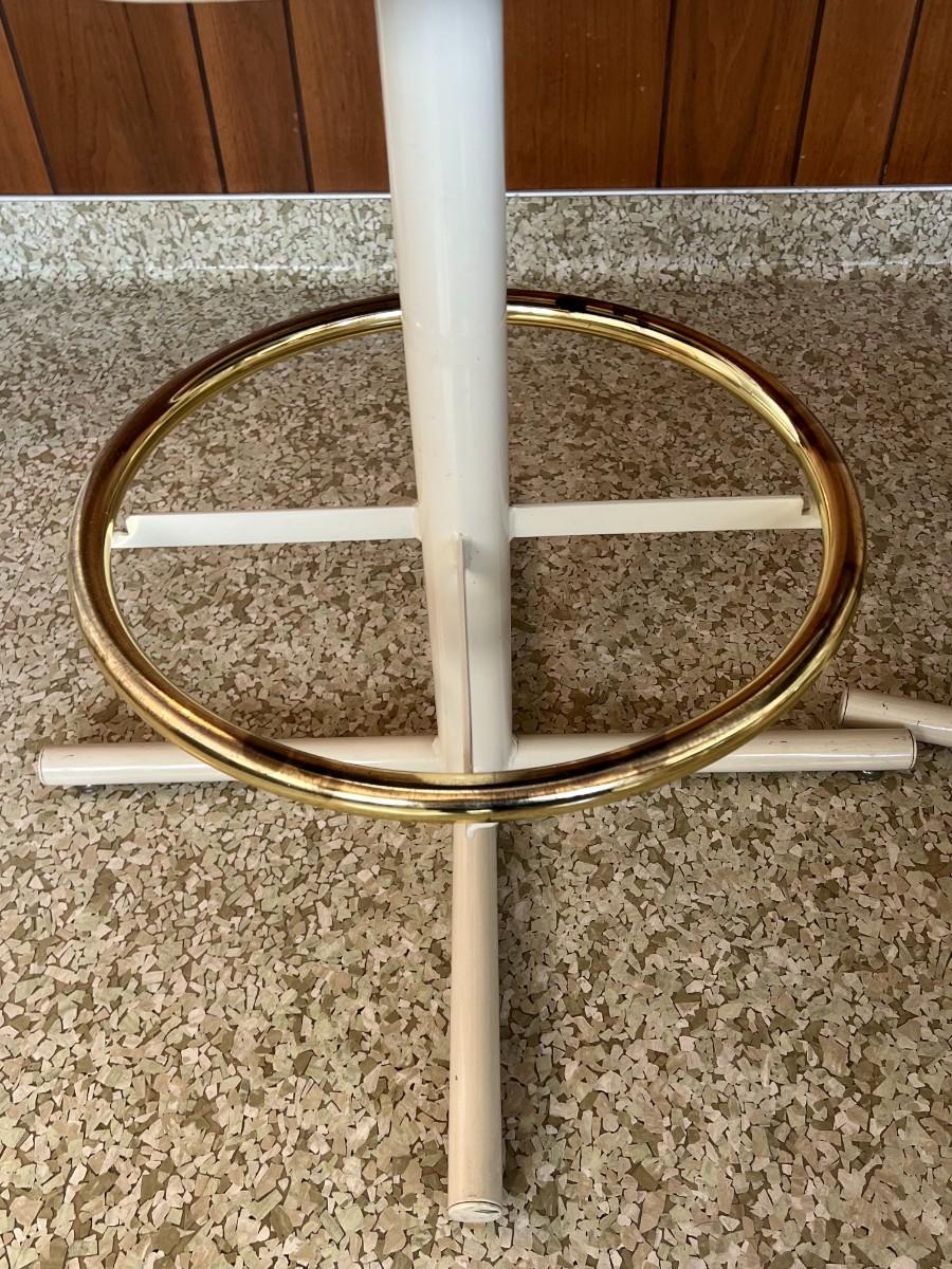 Retro White Vinyl Upholstered Swivel Bar Chairs with Foot Rail
