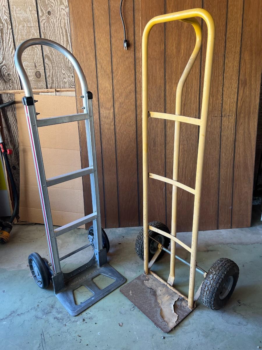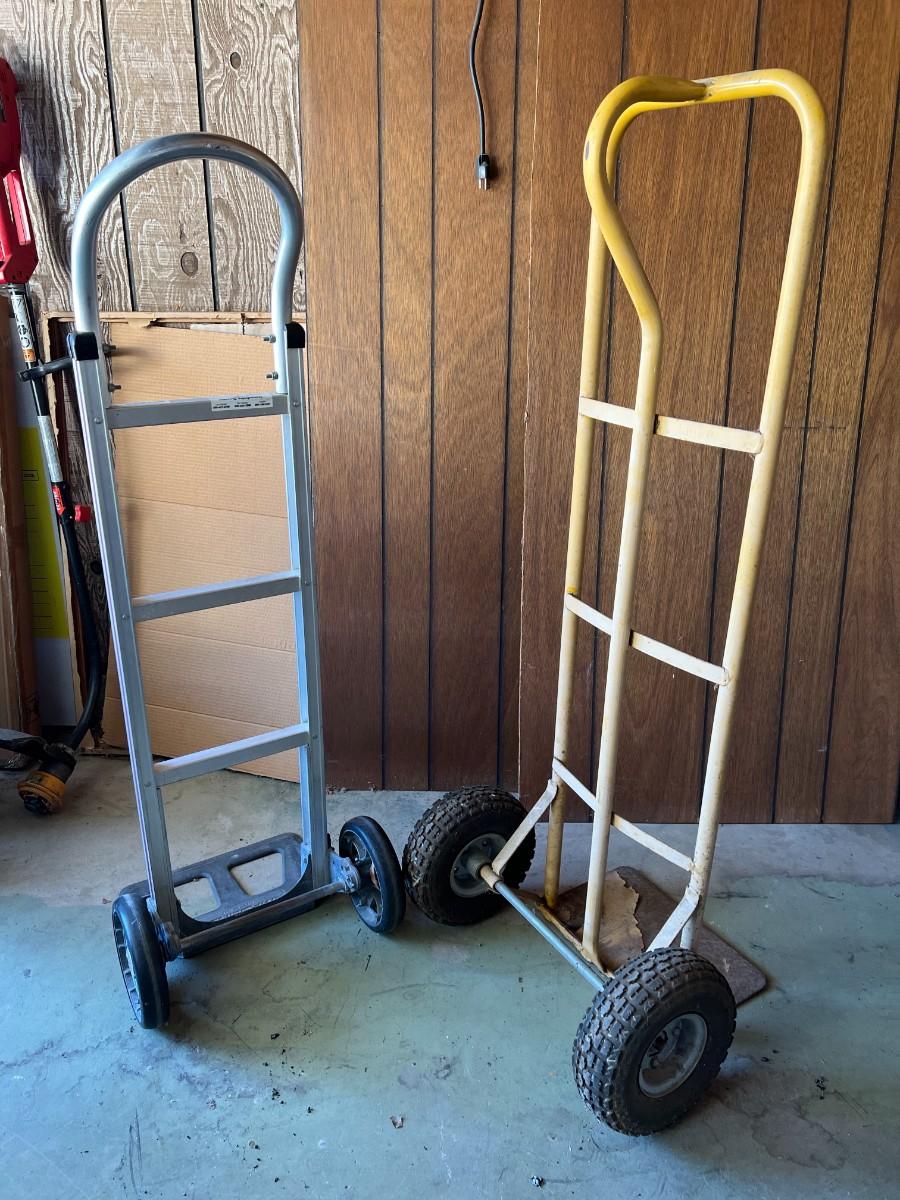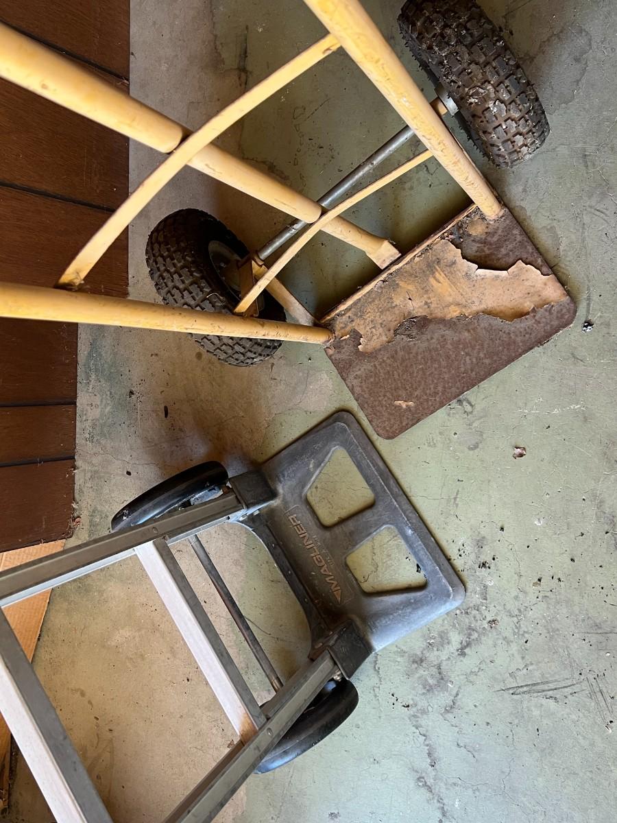 The yellow dolly has wear and rust, the other dolly is in good condition. Check pictures for more details.