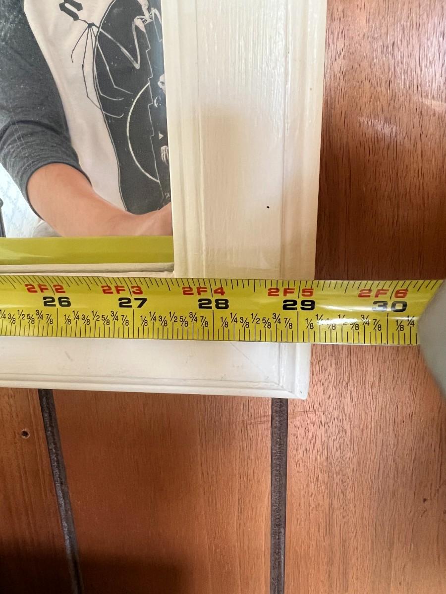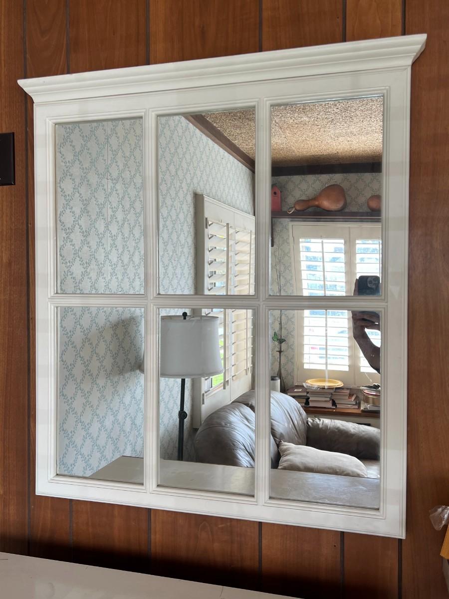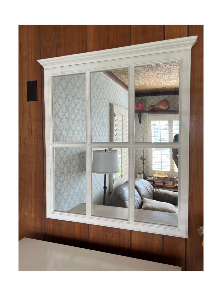 There is no significant damage to the wall mirror and is in good displayable condition. Check pictures for more details and for sizing.