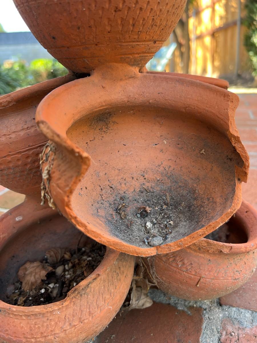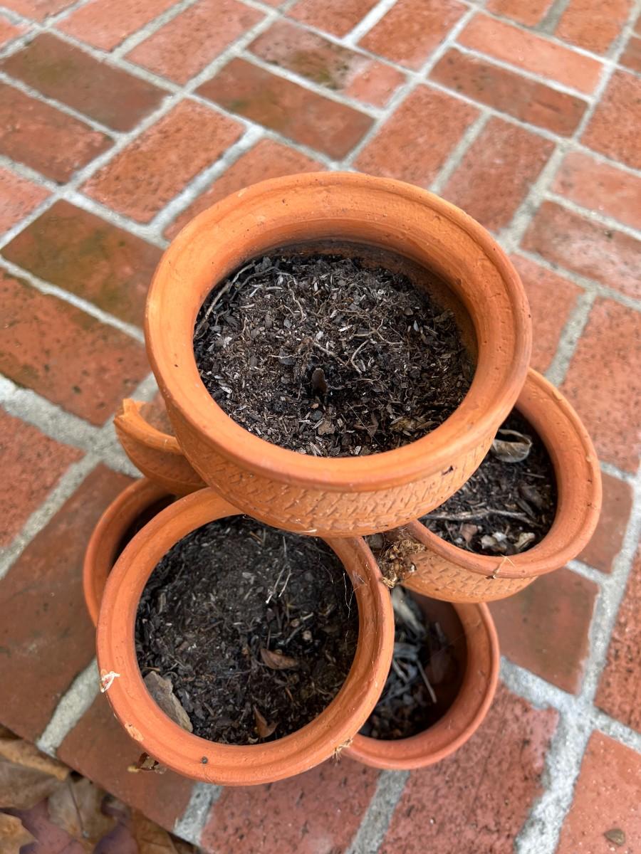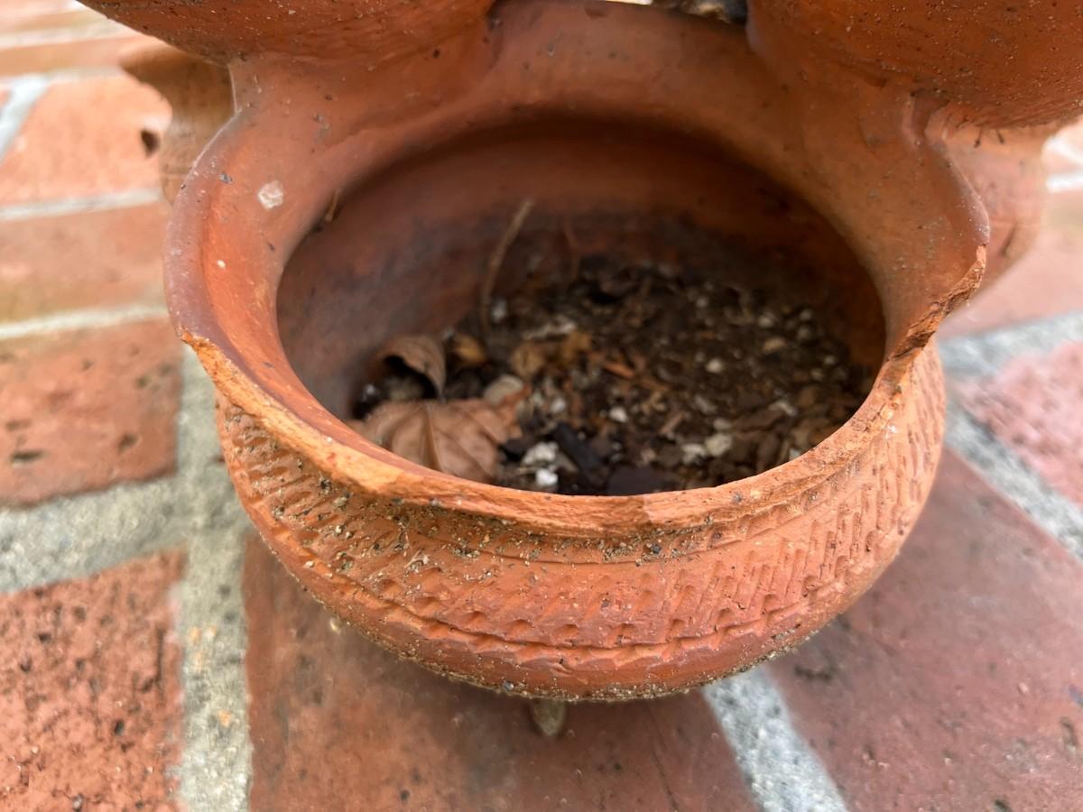 There is a cracked pot and a chipped piece on the back of the planter, but there is no other significant damage and is in good displayable condition. Check pictures for more details and for sizing.