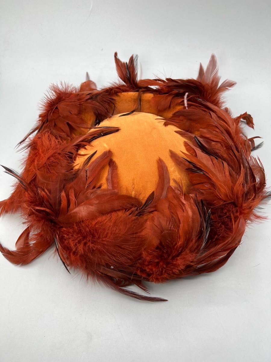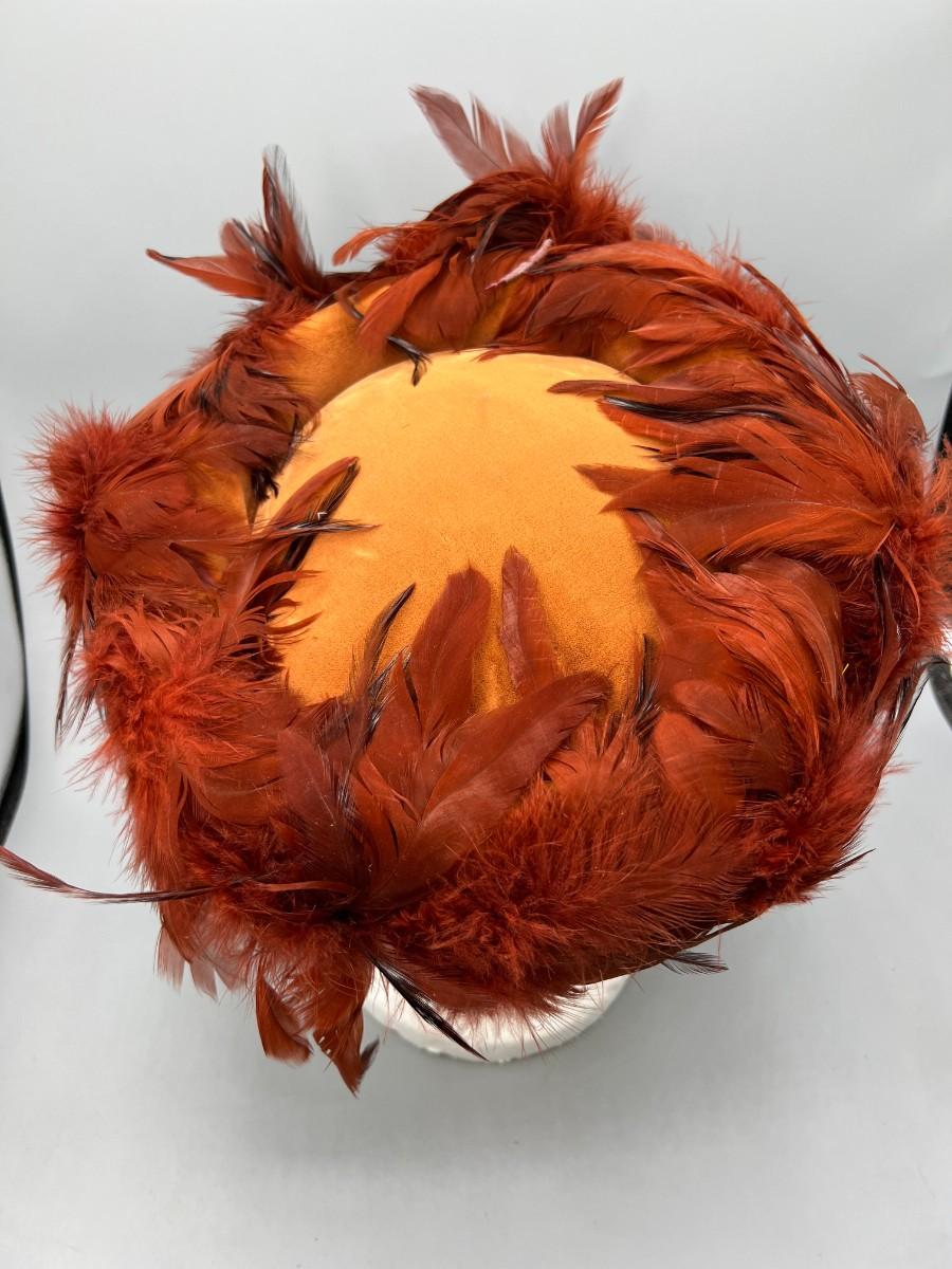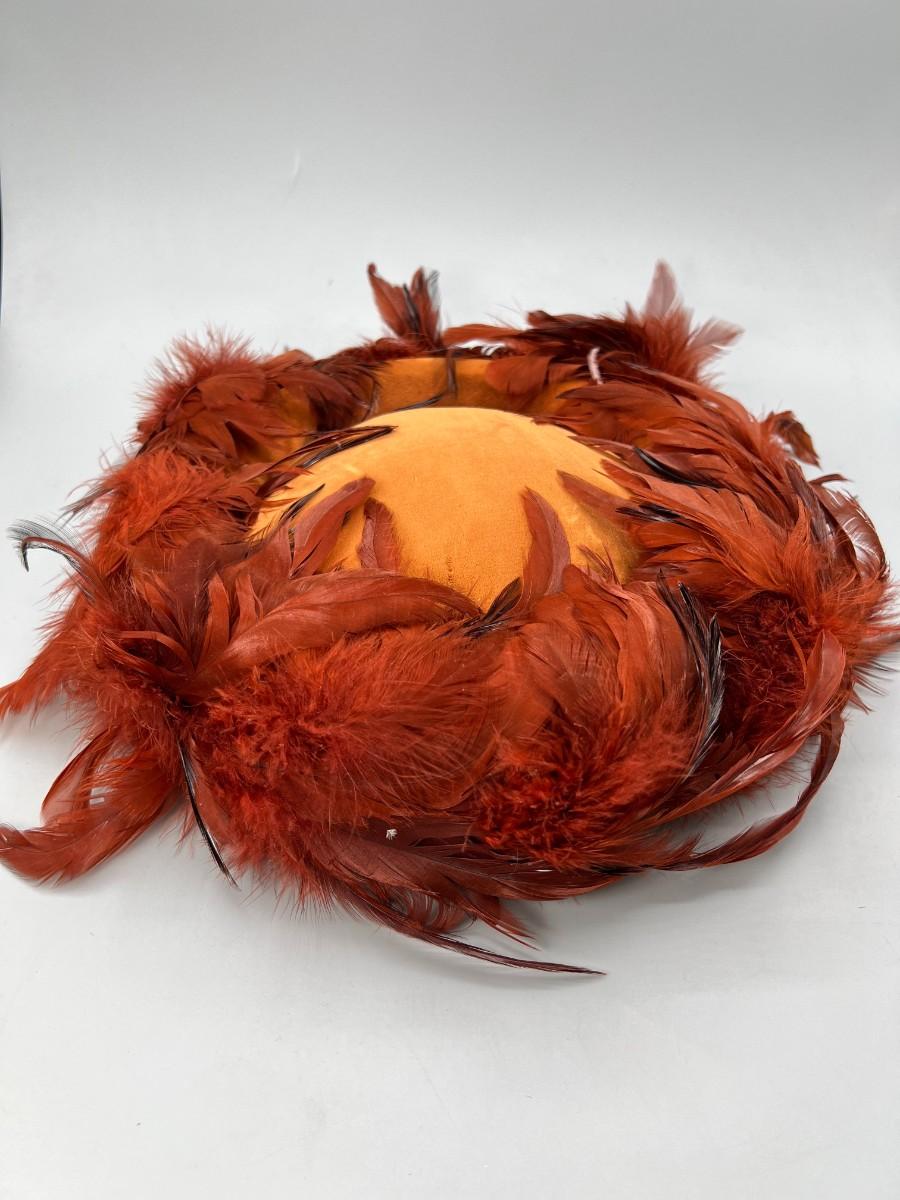 Vintage Round Orange & Red Feather Dress Up Pillbox Hat Cap