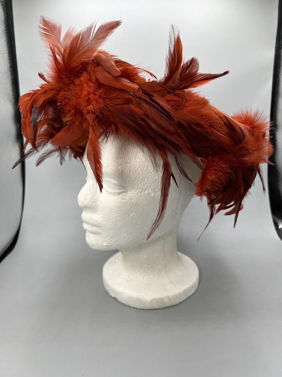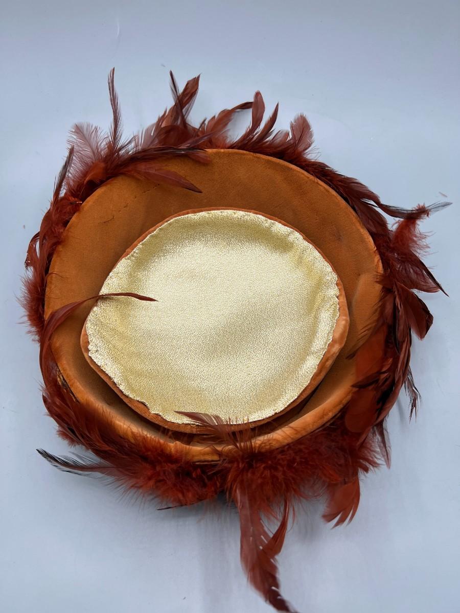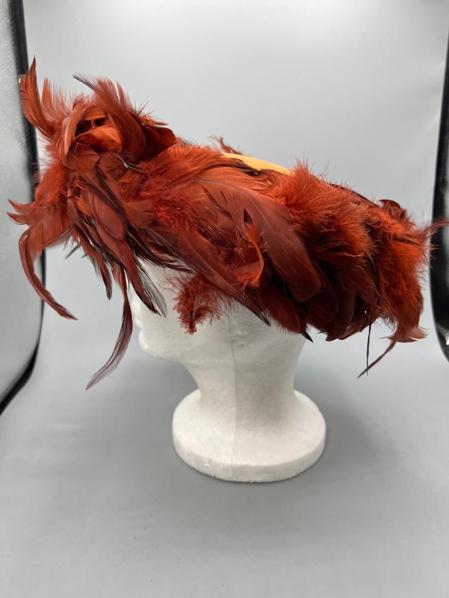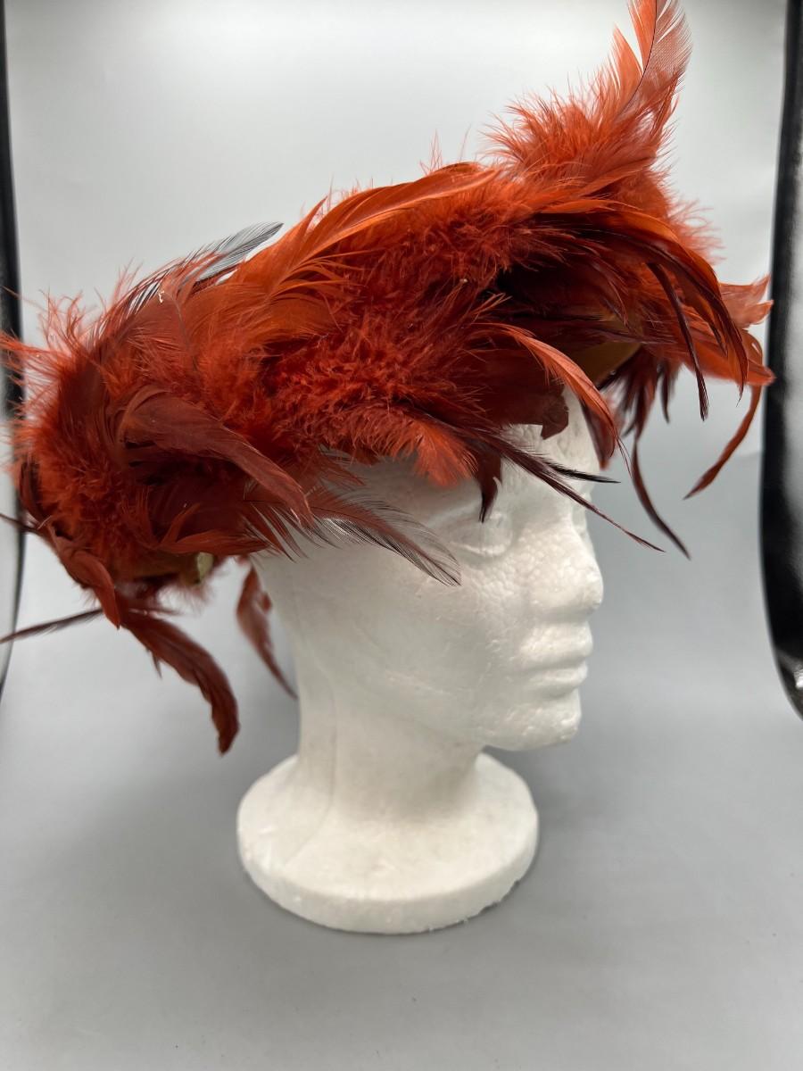 Vintage Round Orange & Red Feather Dress Up Pillbox Hat Cap