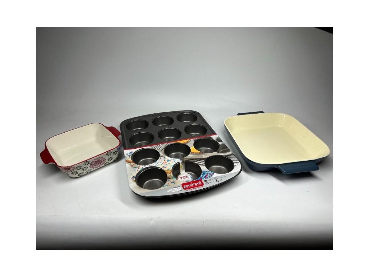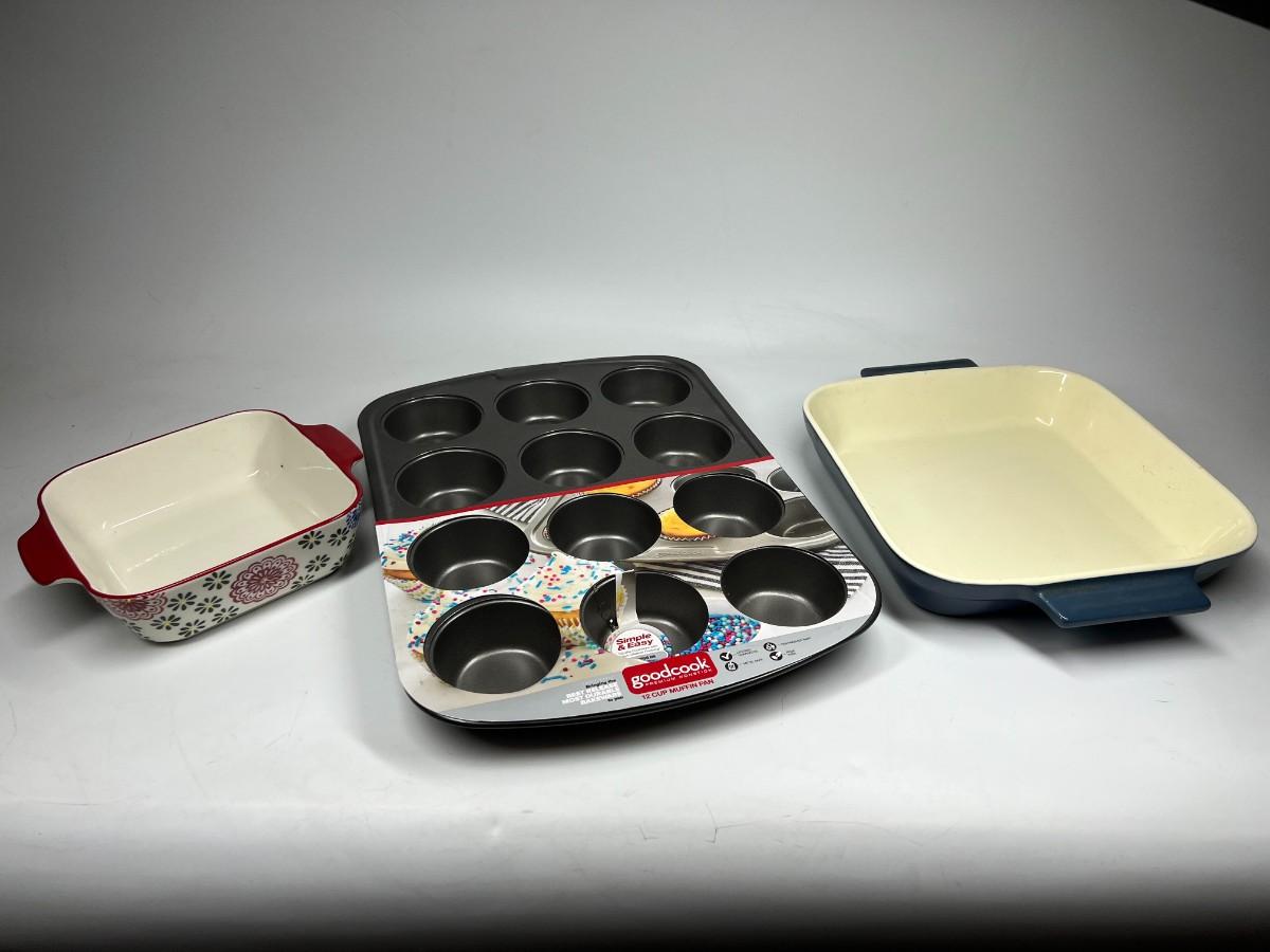 Lot of Bakeware Goodcook Muffin Pan, Cuisinart Casserole Dish, & More