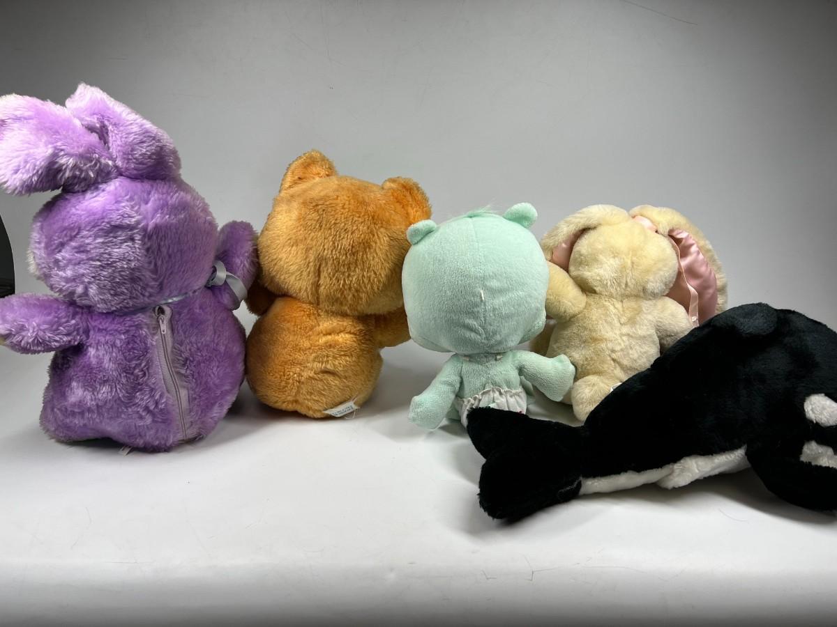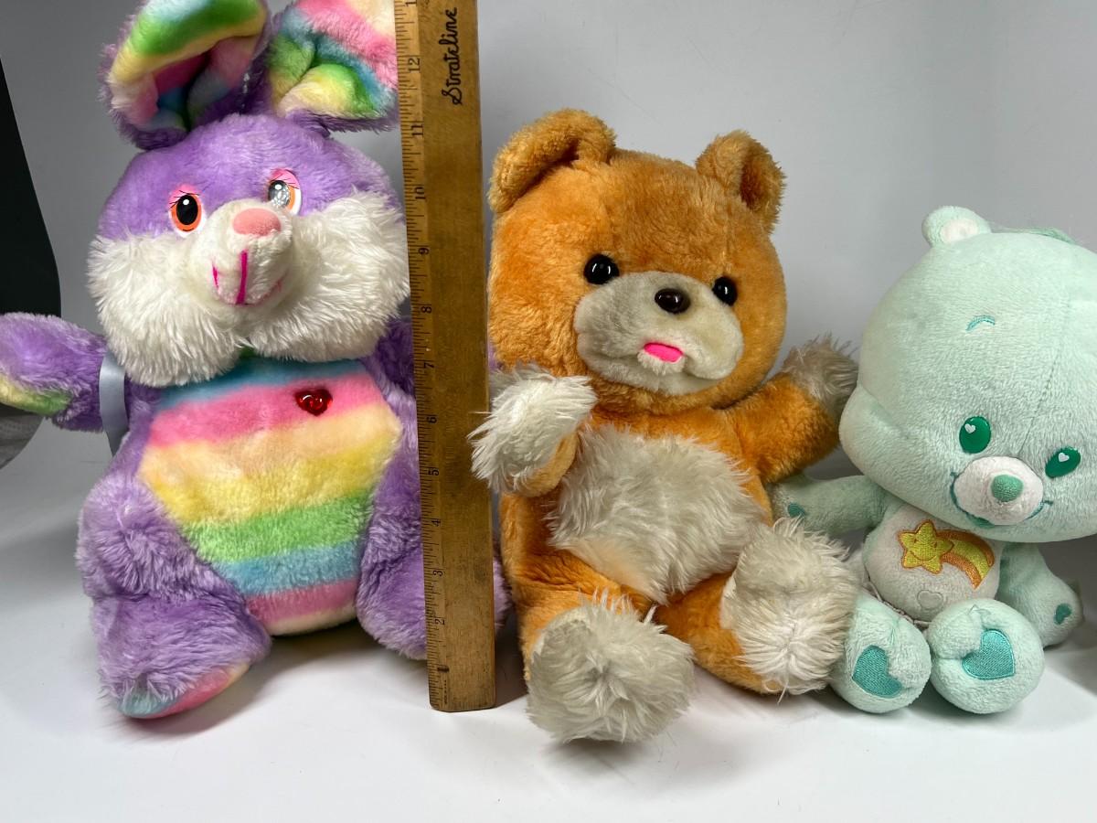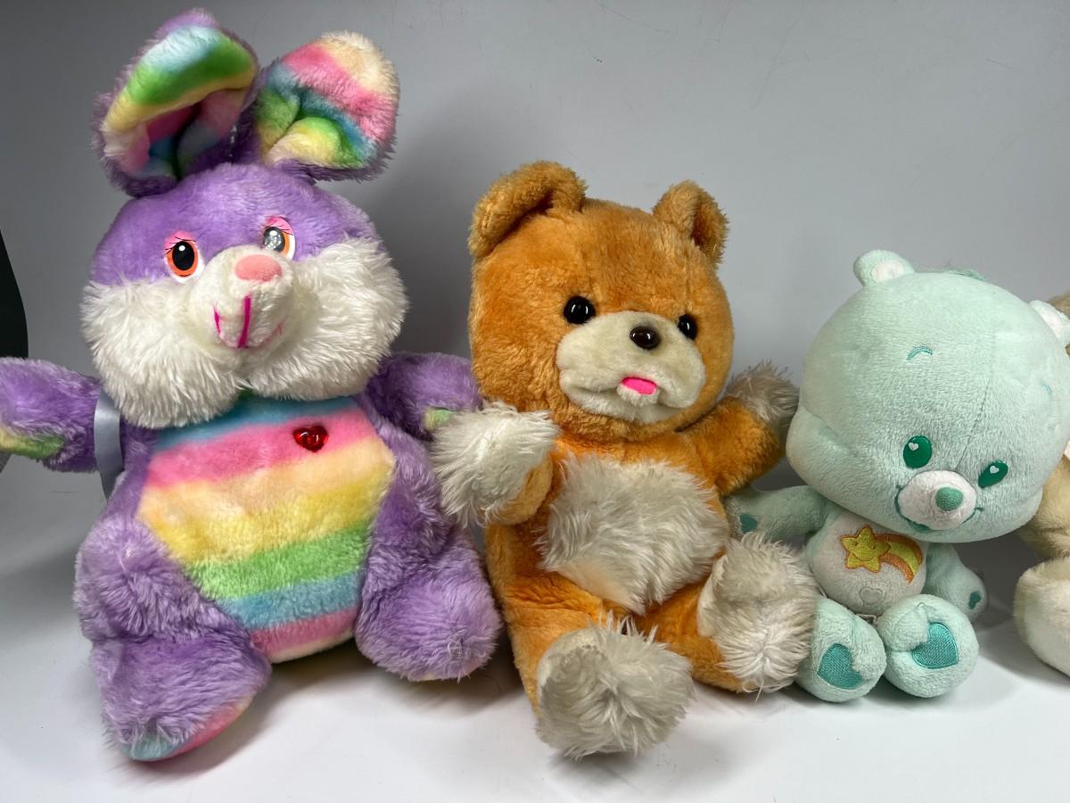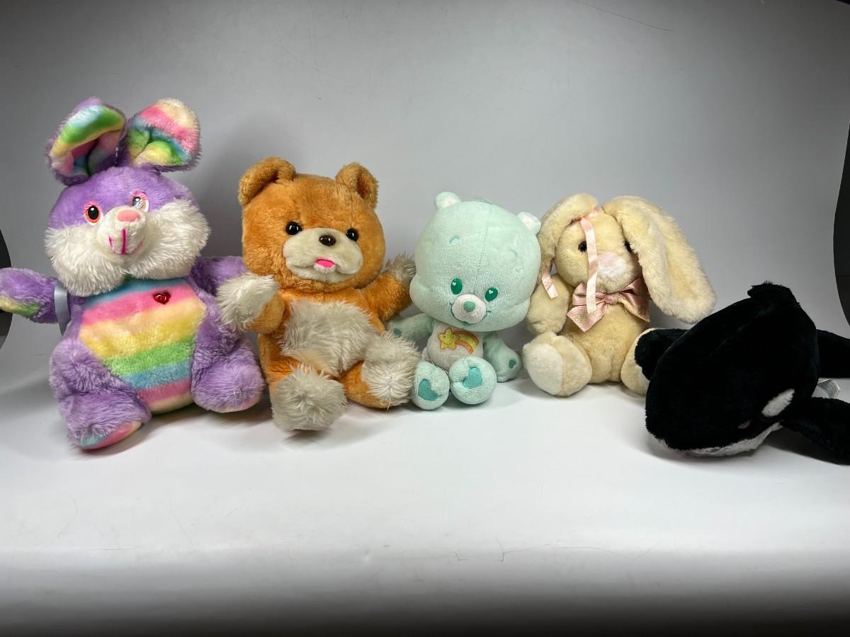 Lot of Stuffed Animal Plushes Care Bears, Rainbow Bunny, Orca Whale, & More