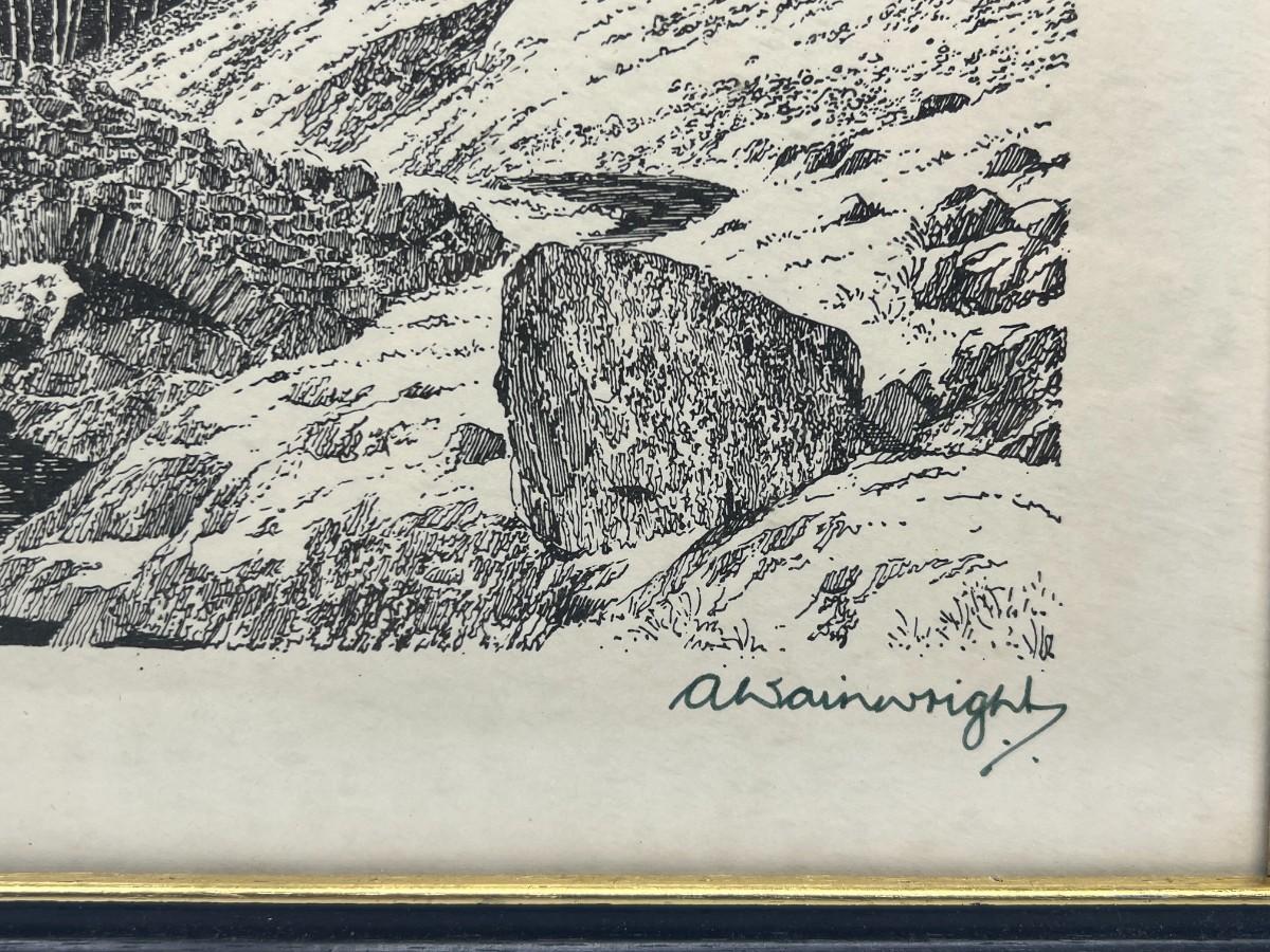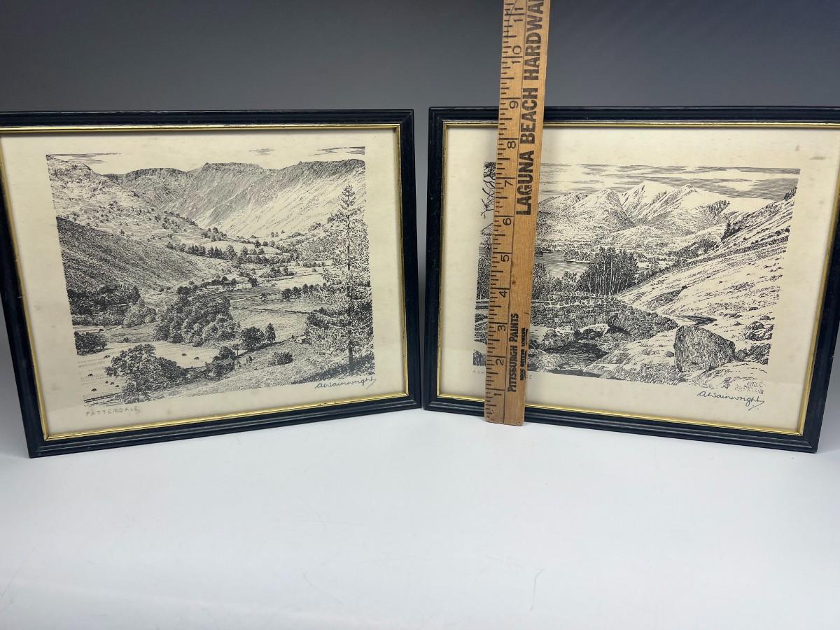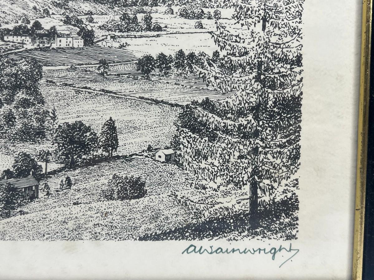 Pair of Framed Landscape Etchings by A. Wainwright. Each is approx 9" x 12".