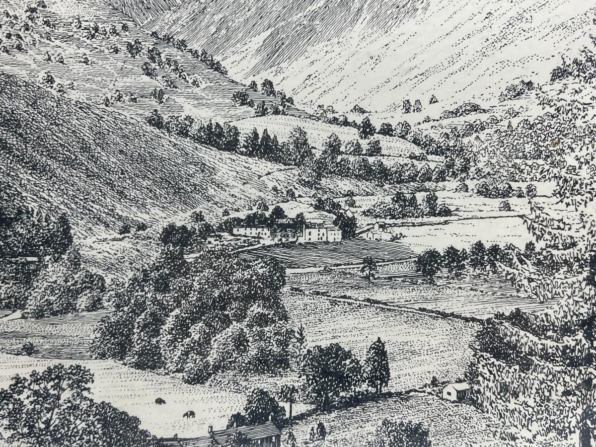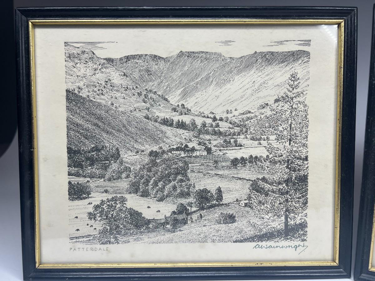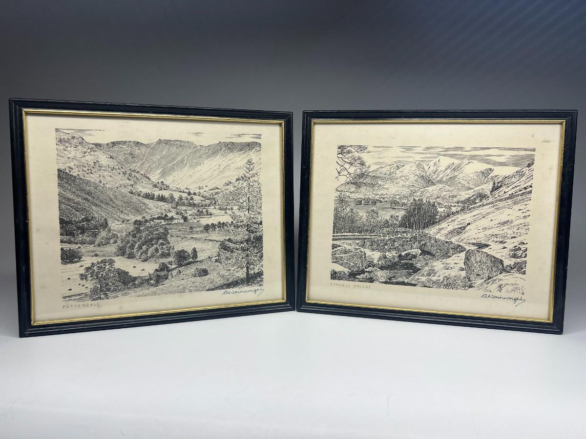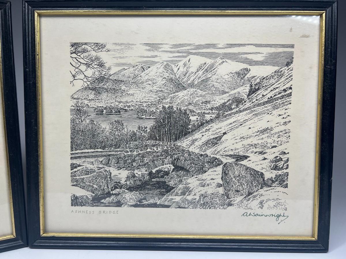 Pair of Framed Landscape Etchings by A. Wainwright. Each is approx 9" x 12".