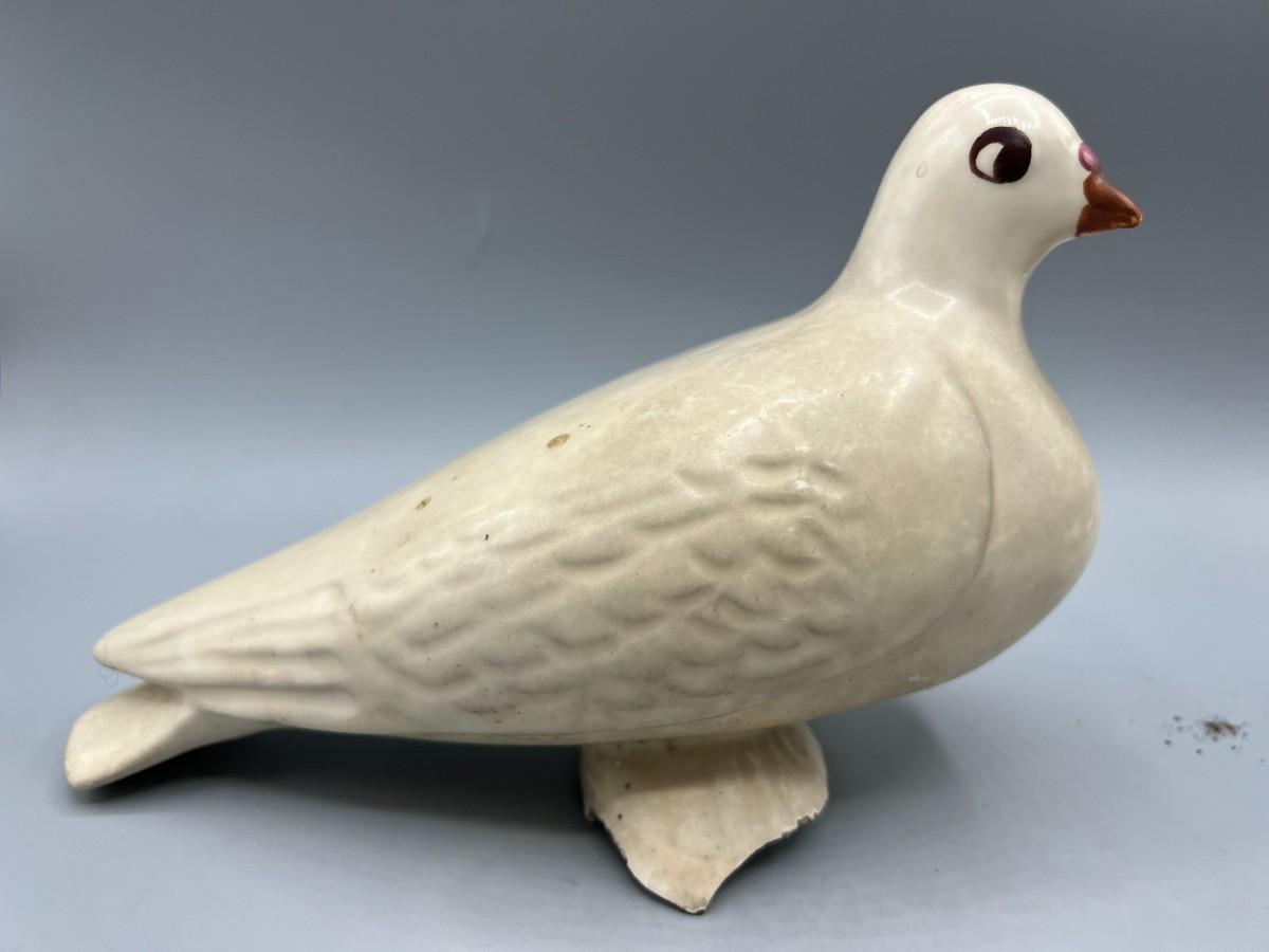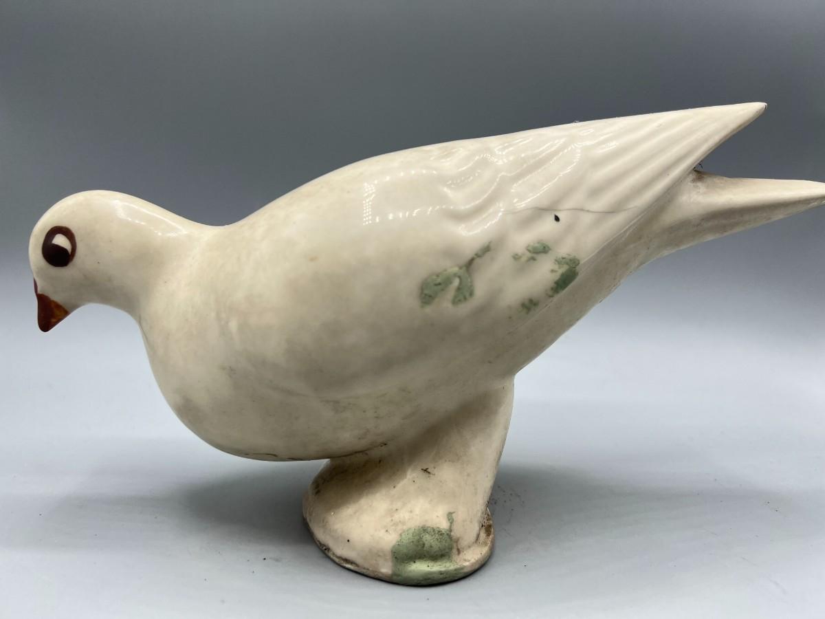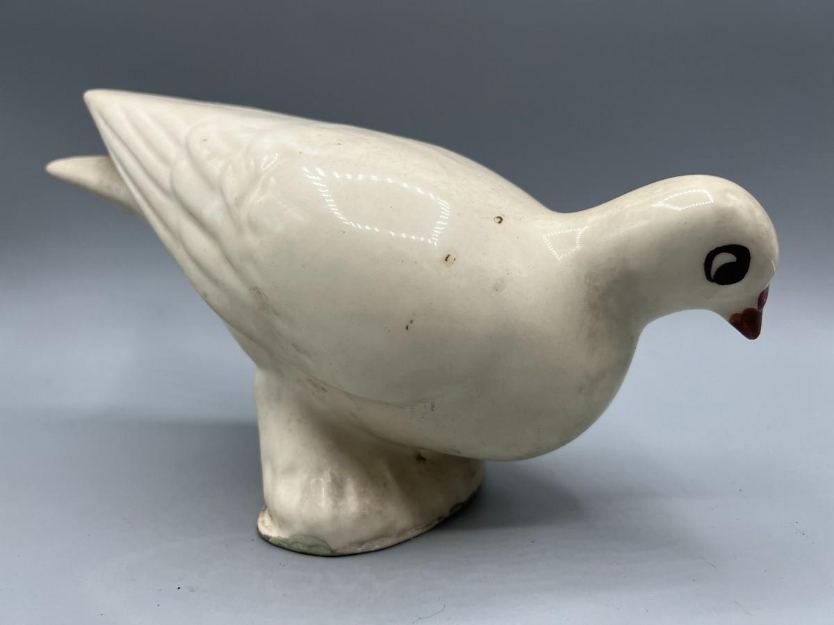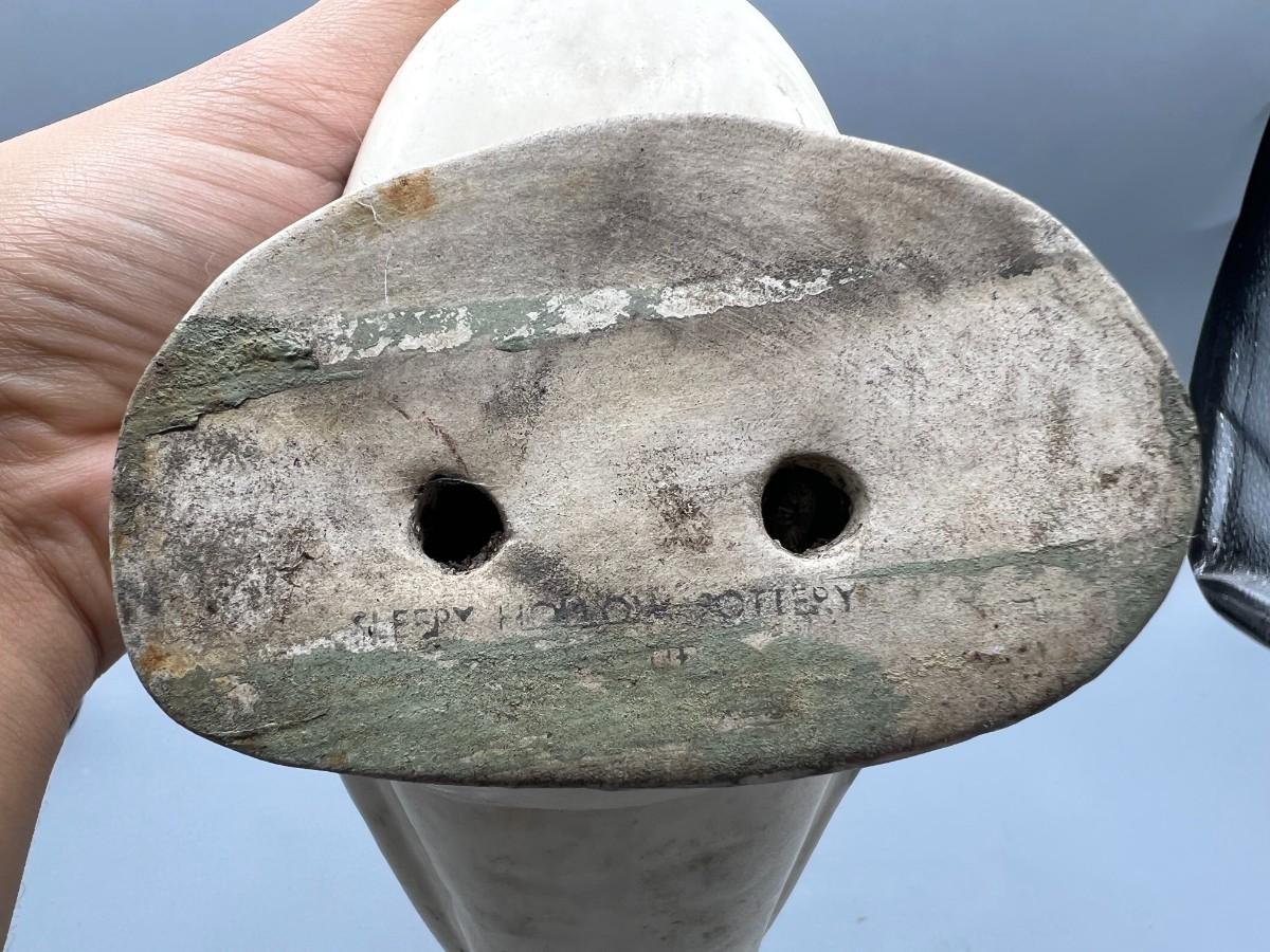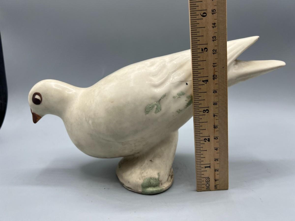 Pair of Ceramic Pigeons by Sleepy Hollow Pottery. Each approx. 6" tall. There is some damage on the bottom of the one of the doves.