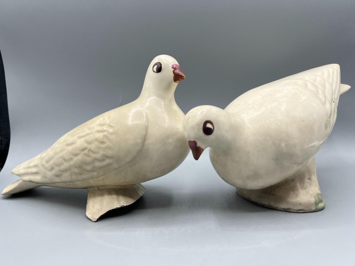 Pair of Retro Sleepy Hollow Pottery Ceramic Garden Yard Art Pigeons Doves