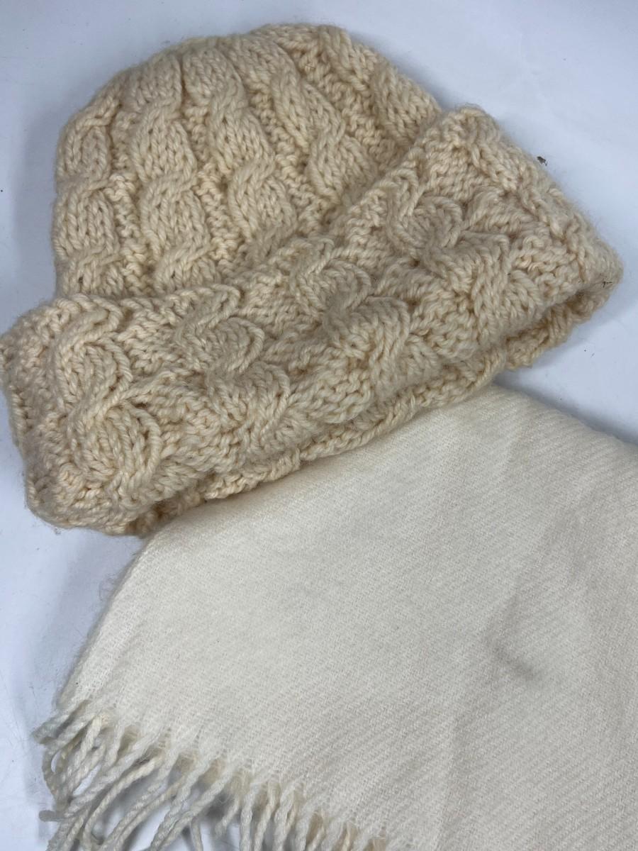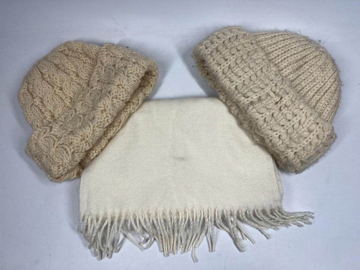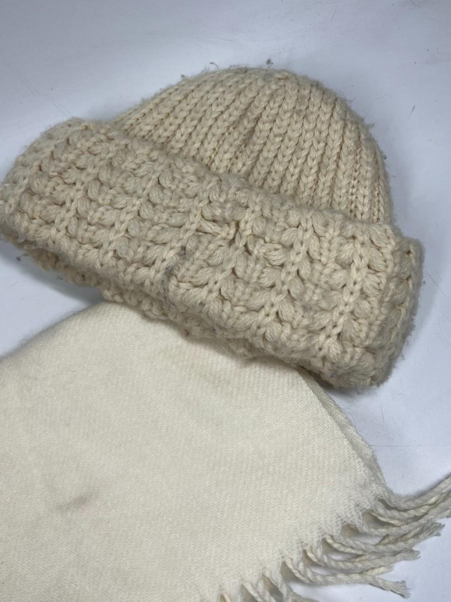 Lot of Winter Accessories Crochet Eggshell Off White Beanie Hats & Soft White Scarf