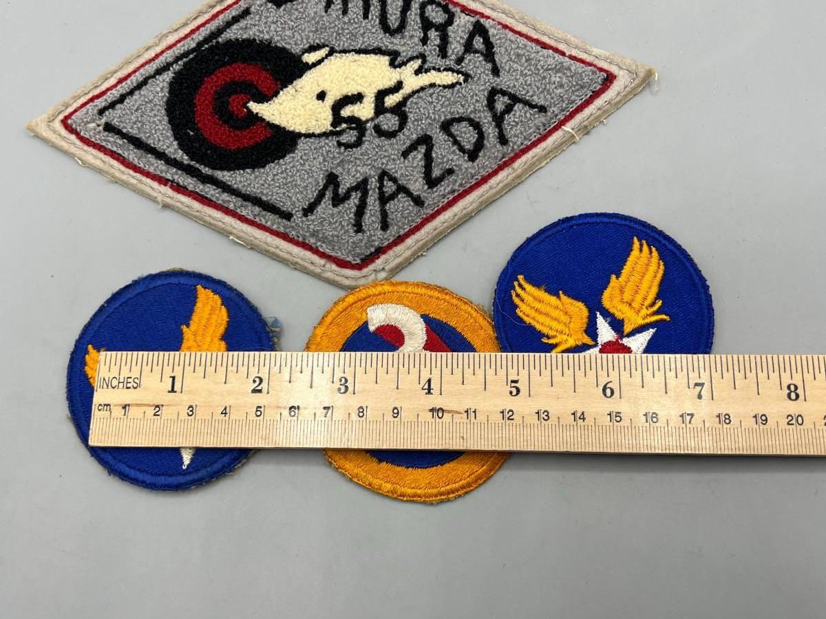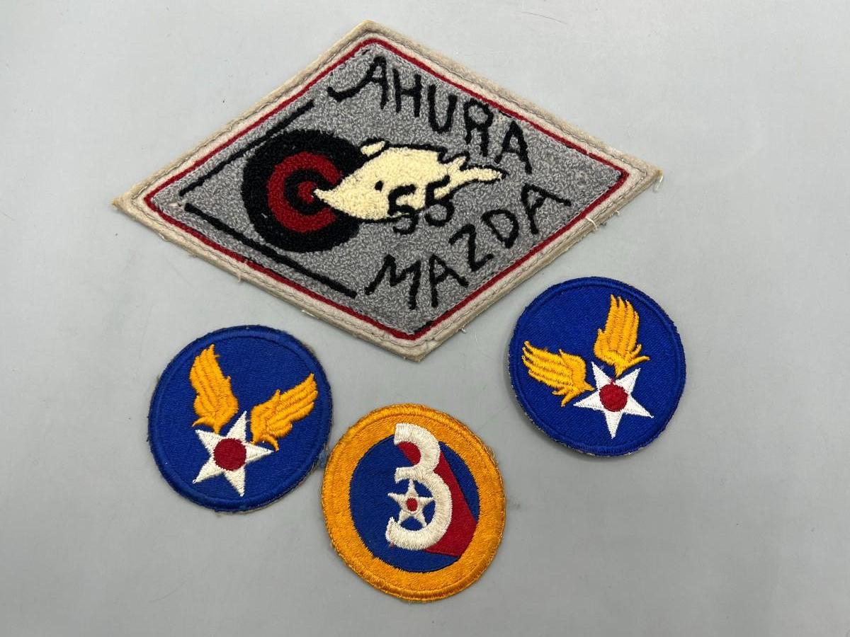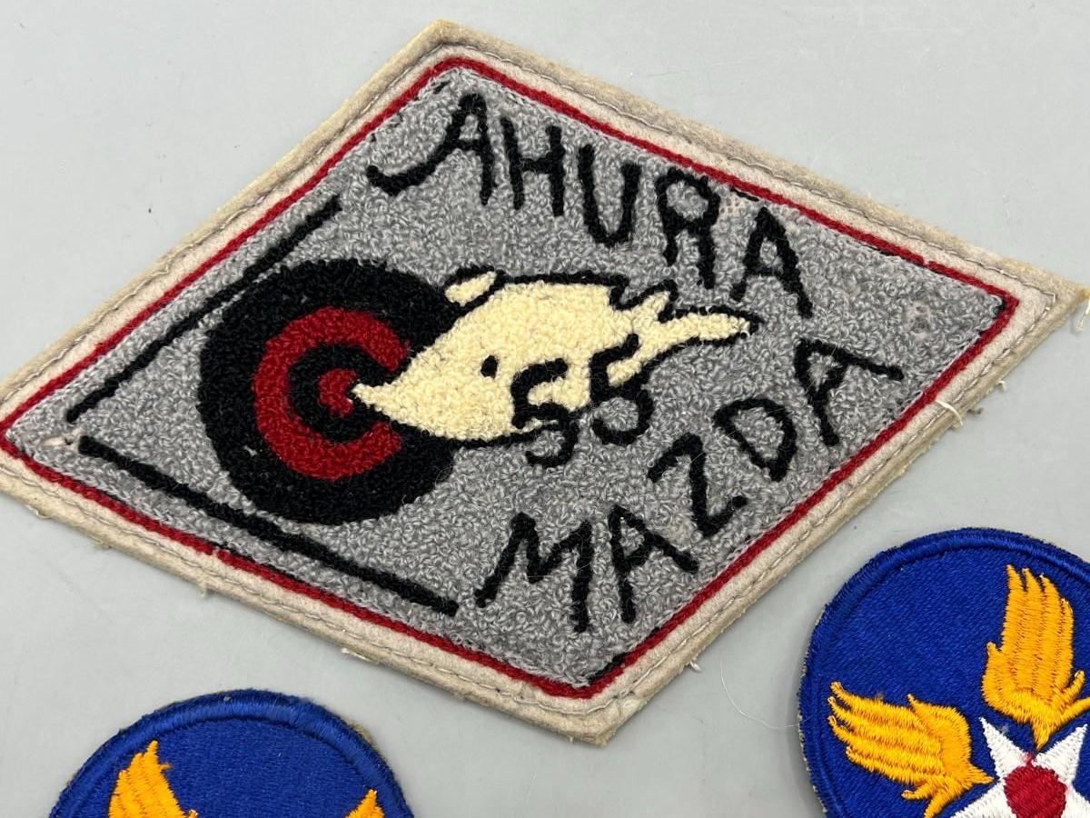Vintage WWII Army Air Force Insignia Patch Lot & '55 Ahura Mazda Patch. All are in good vintage condition.