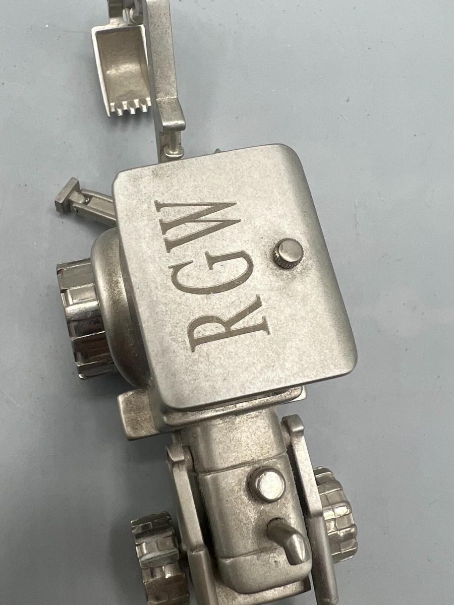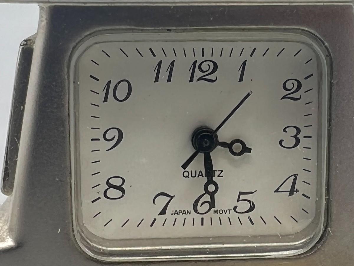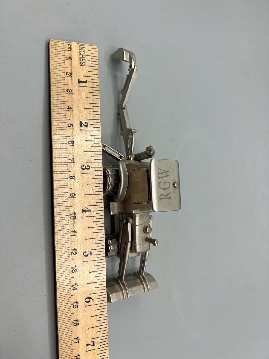 Miniature Backhoe Loader Clock Moveable Parts Engraved. In good condition. Not running. About 2" tall and 6" if stretched out completely.