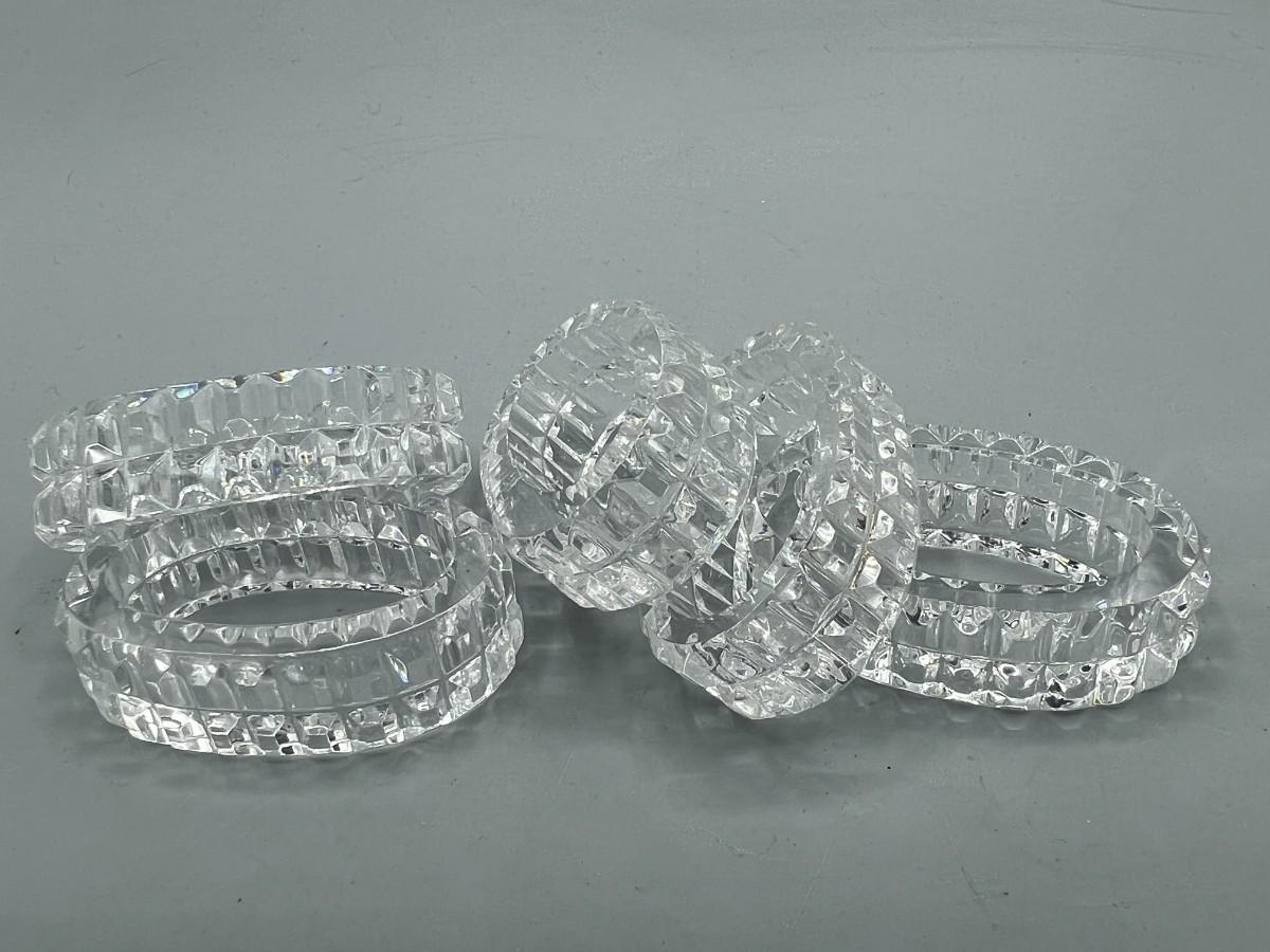 Set of Crystal Glass Napkin Ring Holders. Good condition. Set of 5.