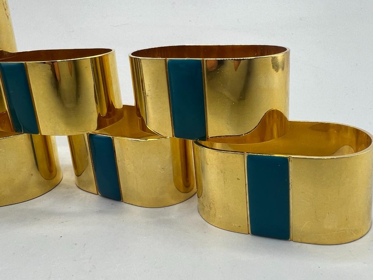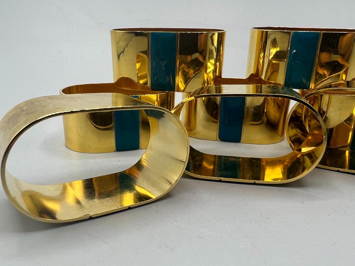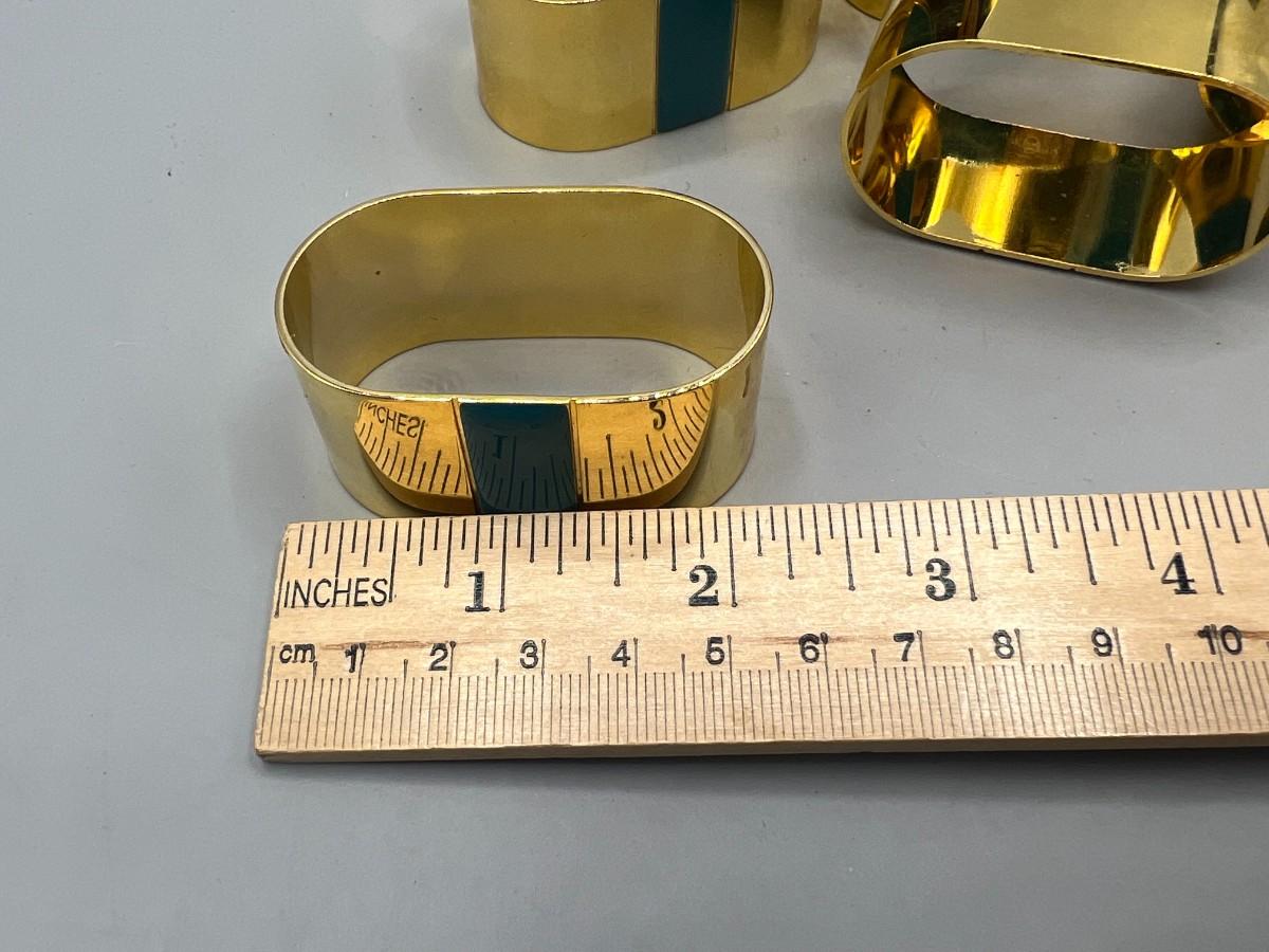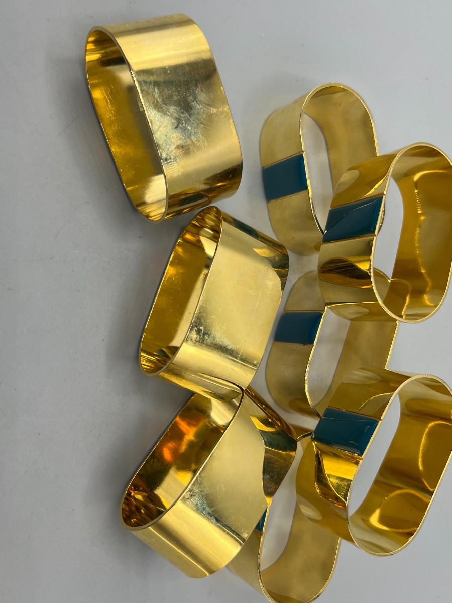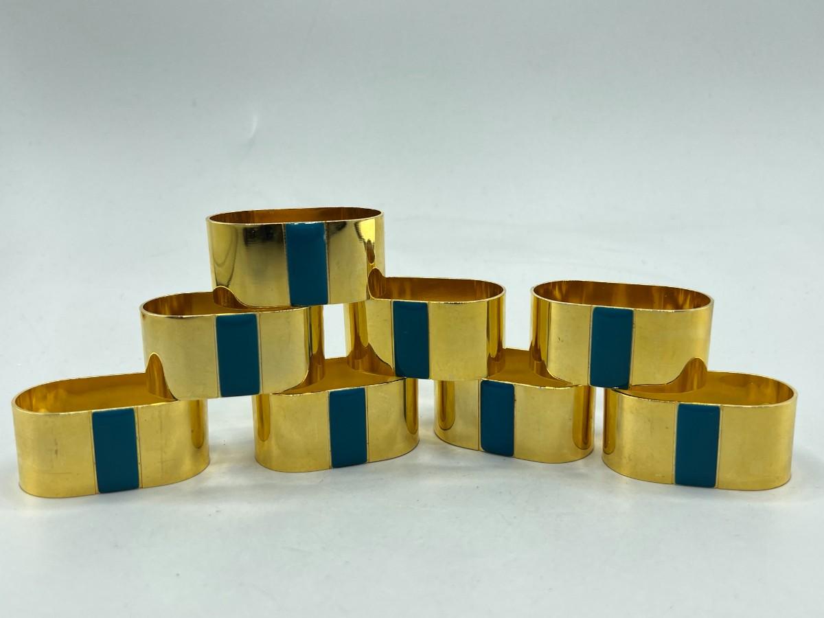 Set of 8 Gold Tone Metal Napkin Ring Holders. Light signs of use.