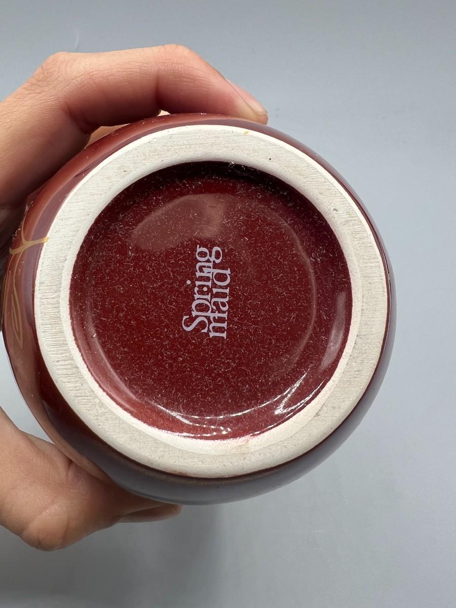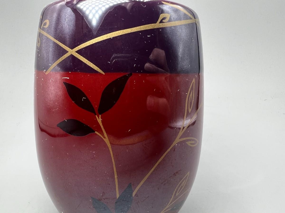 Small Springmaid Ceramic Mid Century Style Burgundy Red Floral Design Flower Vase