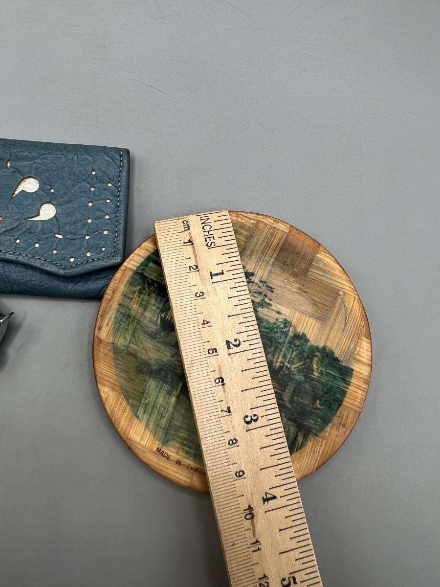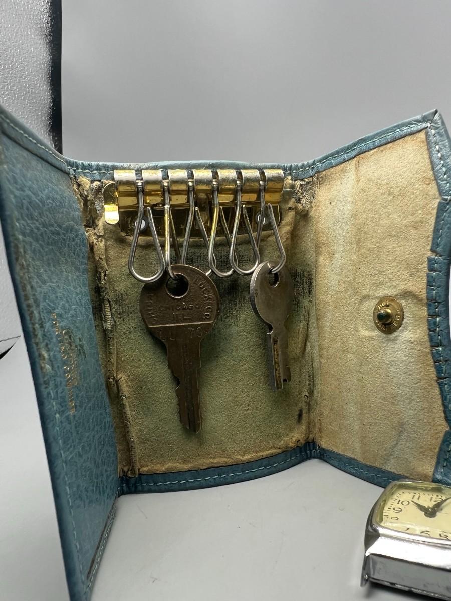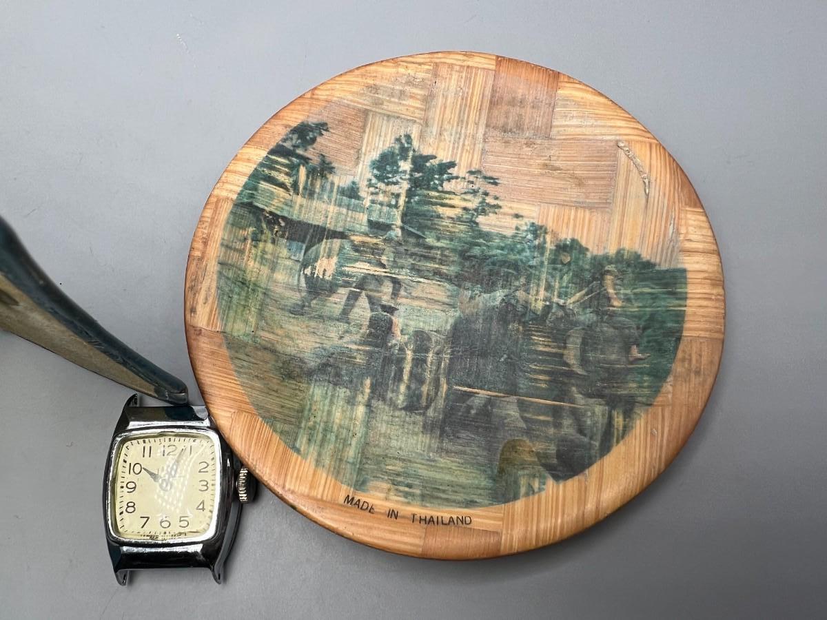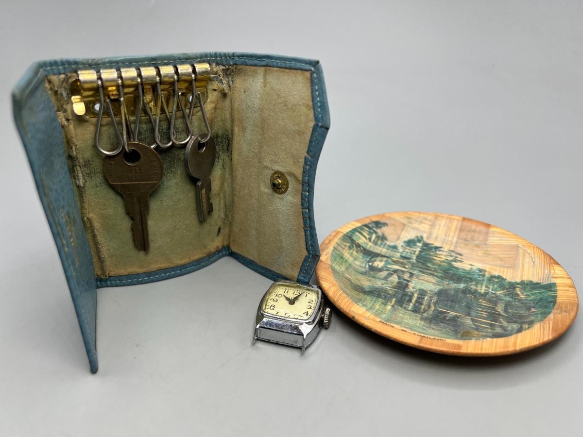 Retro Lot of Miscellaneous Trinkets Key Wallet Holder, Wood Bamboo Dish, & Tower Watch