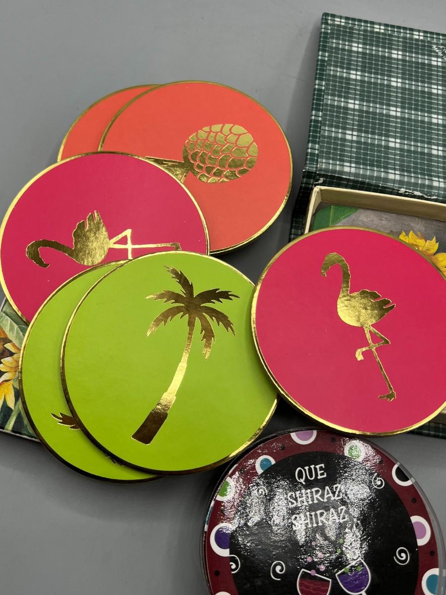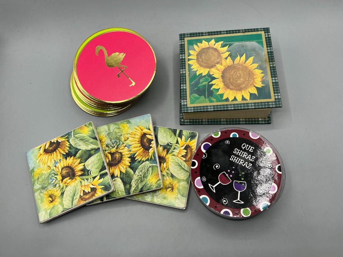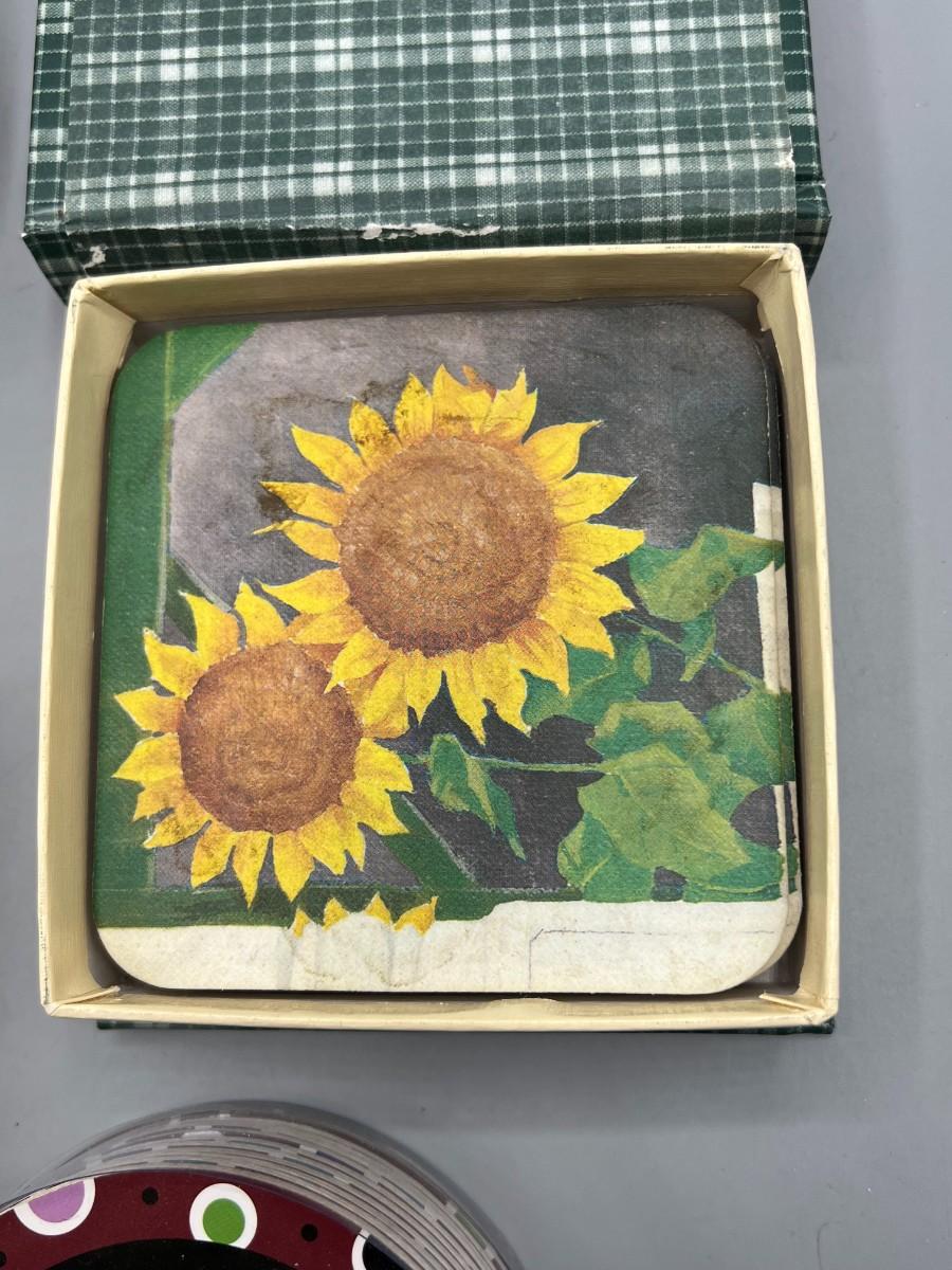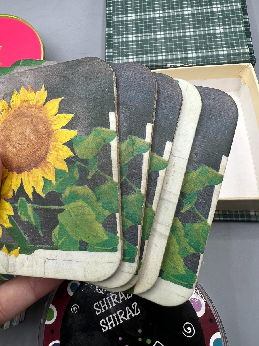 Lot of Retro Cardboard Resin Sunflower Party Drink Coasters