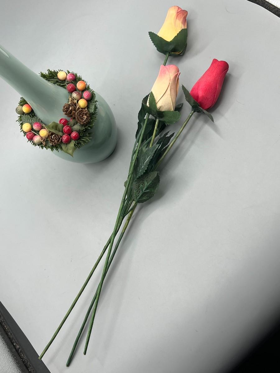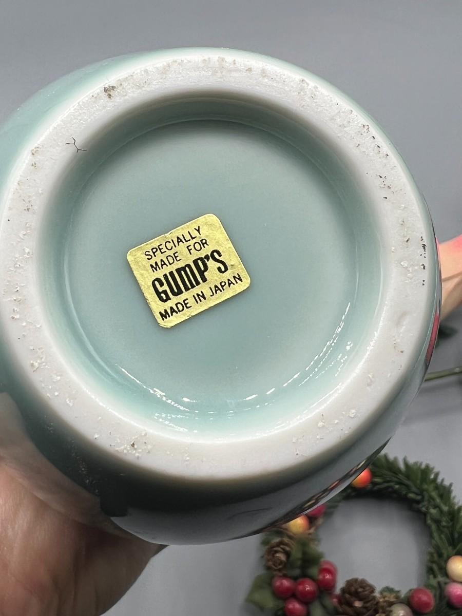 Vintage Gumps Ceramic Flower Vase with Faux Flowers