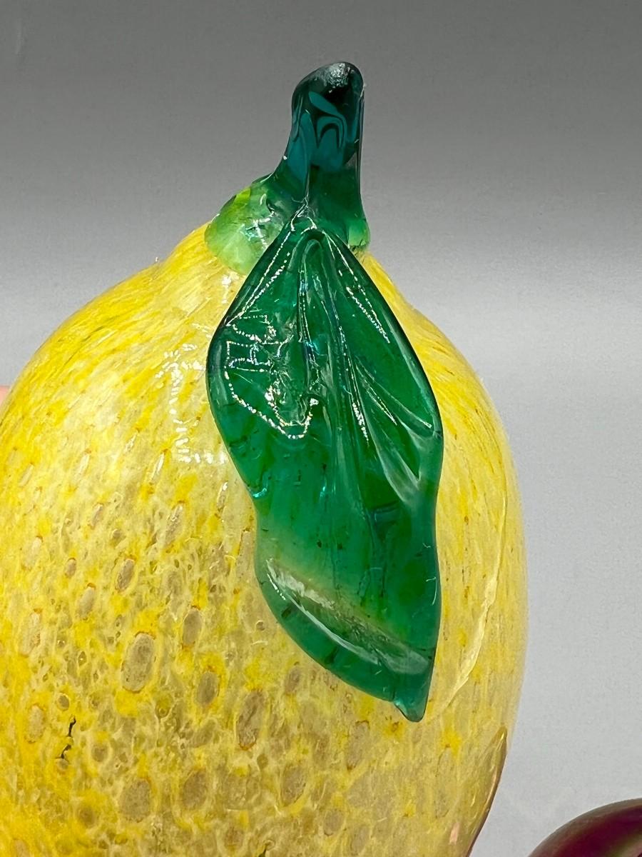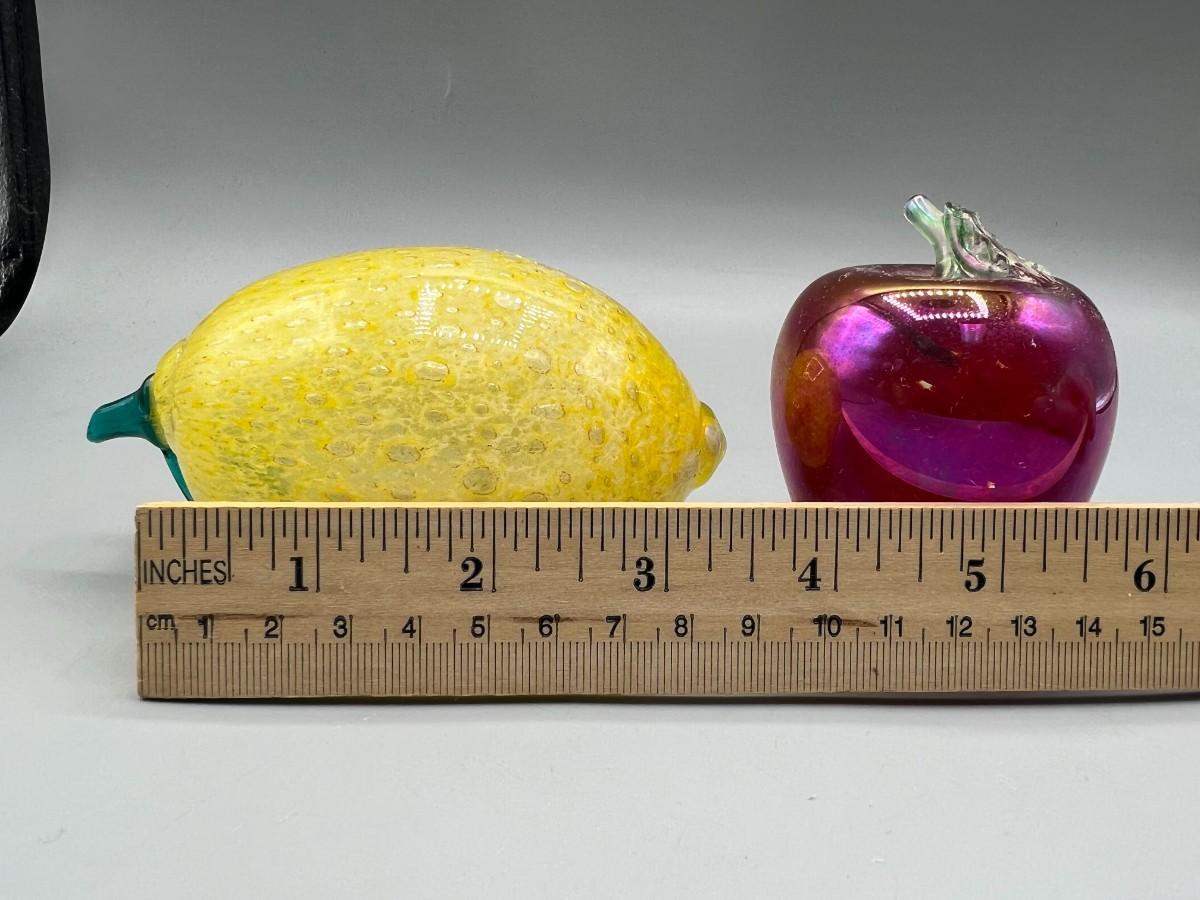 Retro Glass Art Fruit Kitchenware Yellow Lemon & Red Apple Decor