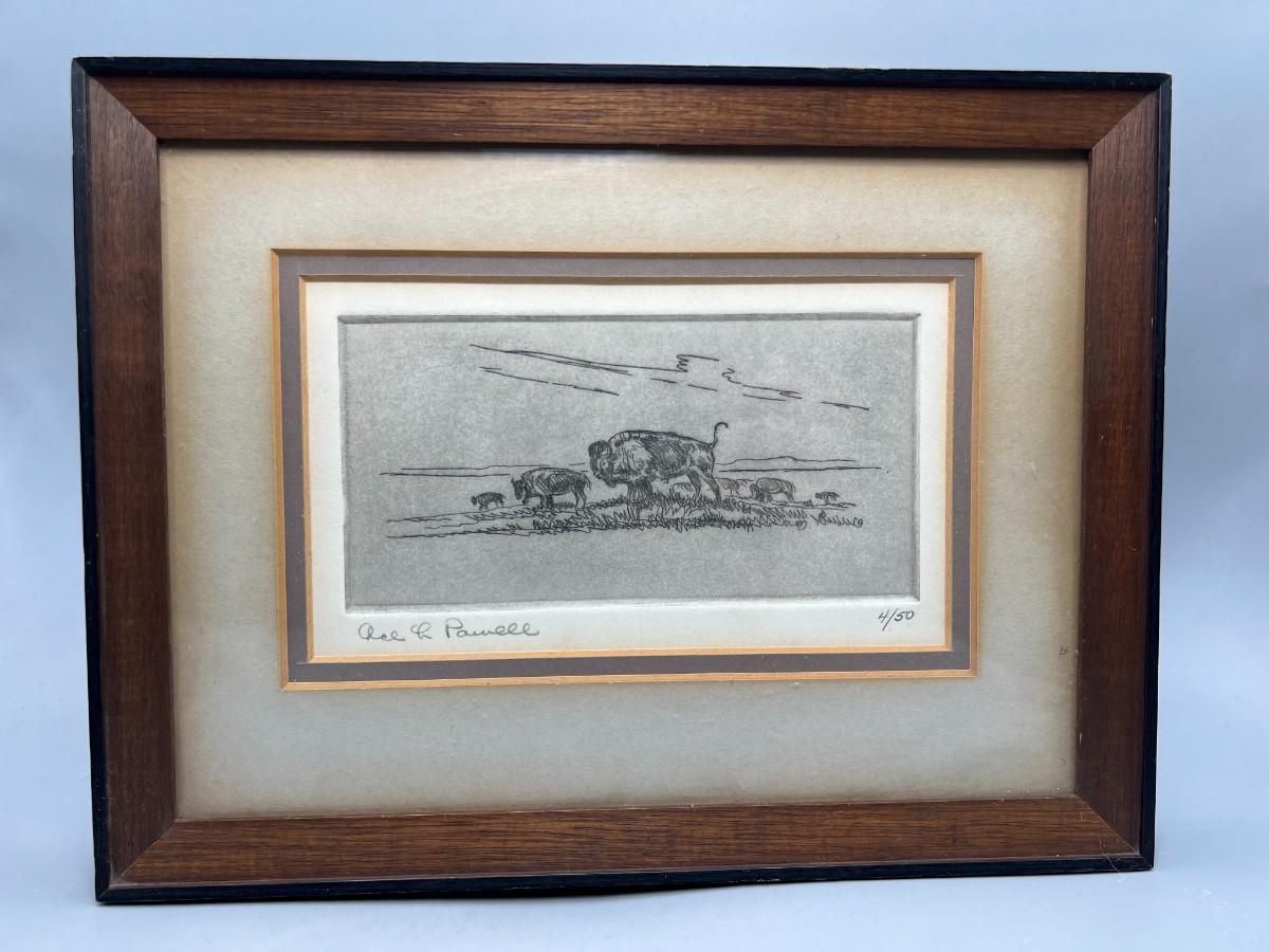 Vintage Ace Powell Signed & Numbered Buffalo Etching American West Art