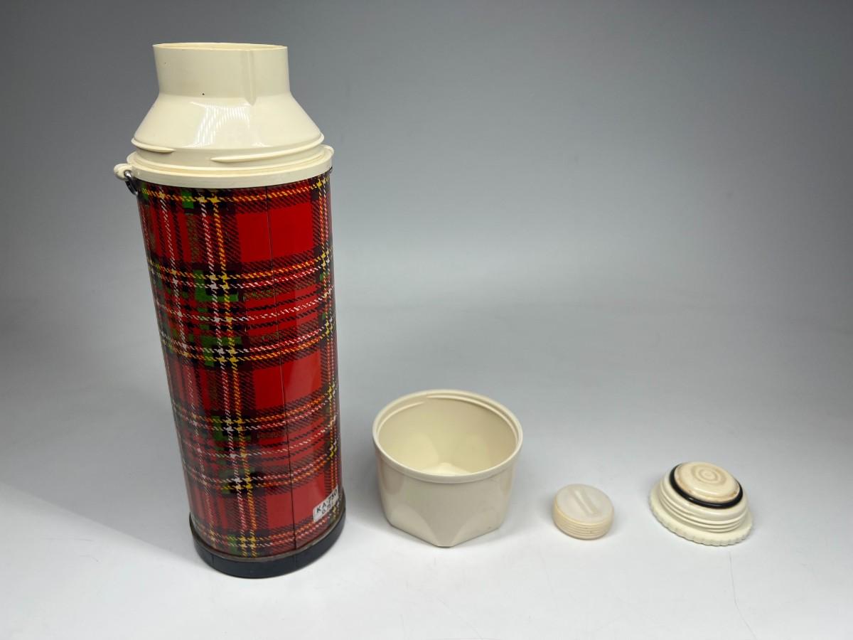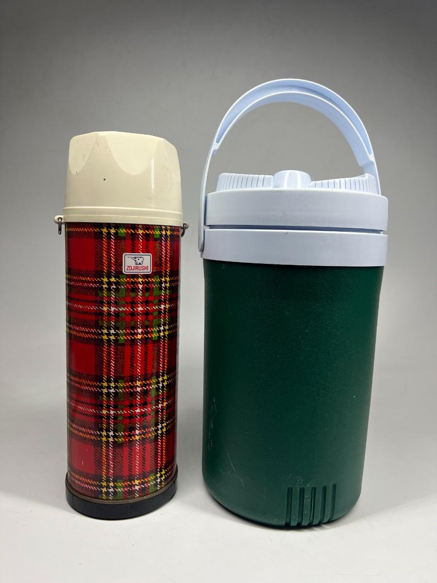 Retro Zojirushi Plaid Thermos & Rubbermaid Drinking Cooler