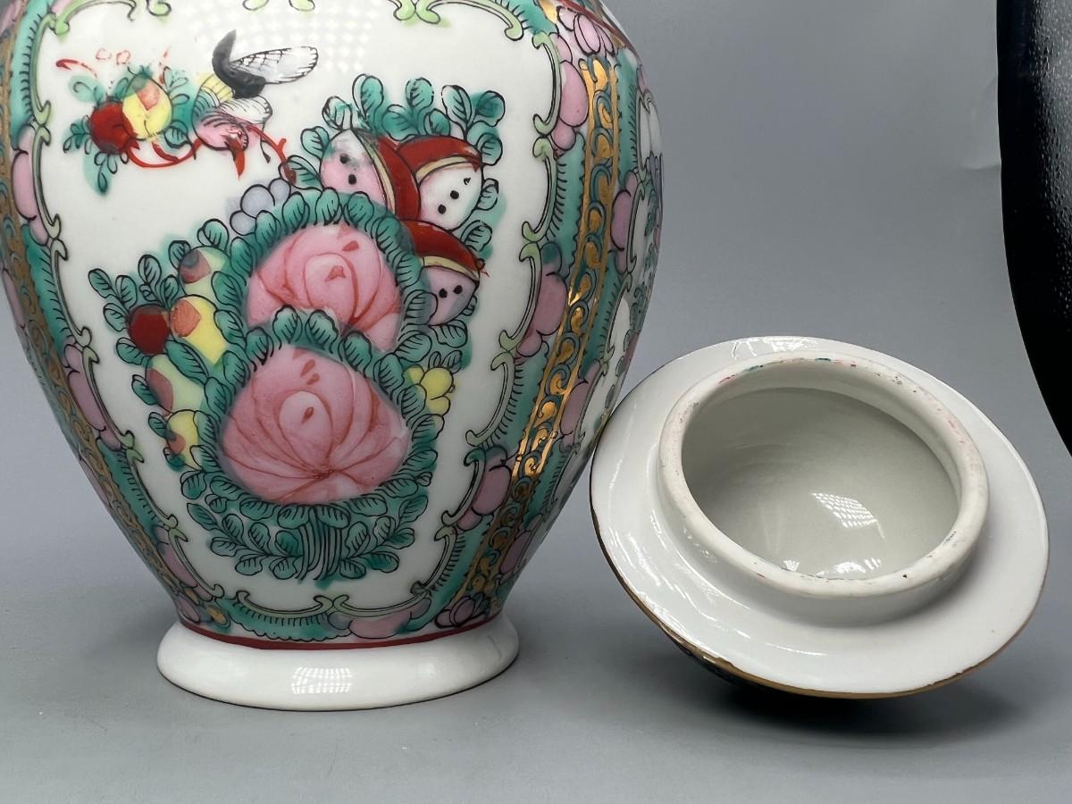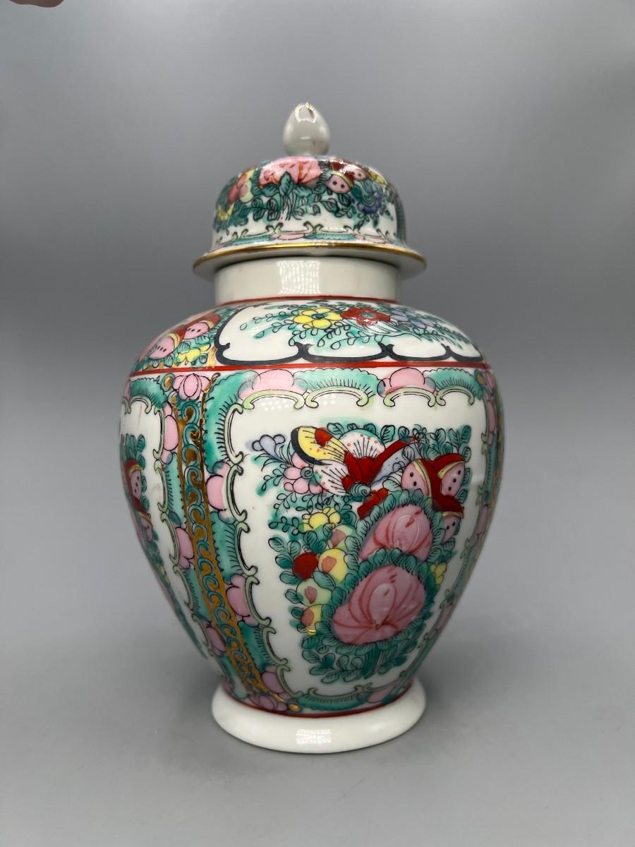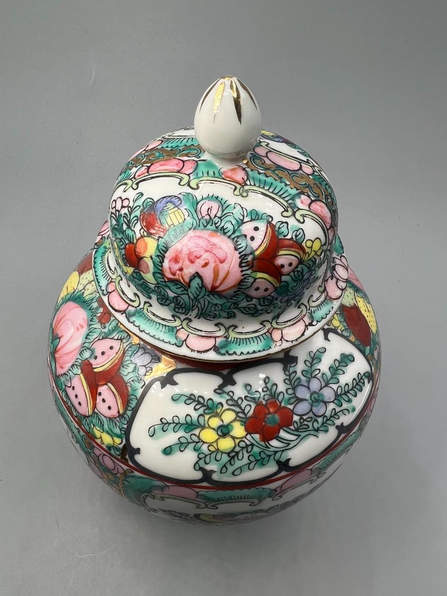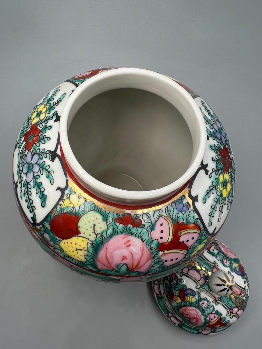 Vintage Oriental Floral Design Colorful Hong Kong Porcelain Ginger Jar Urn