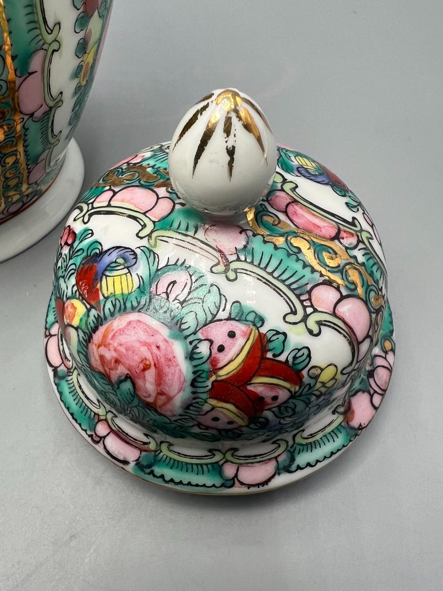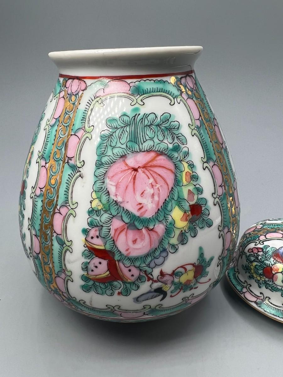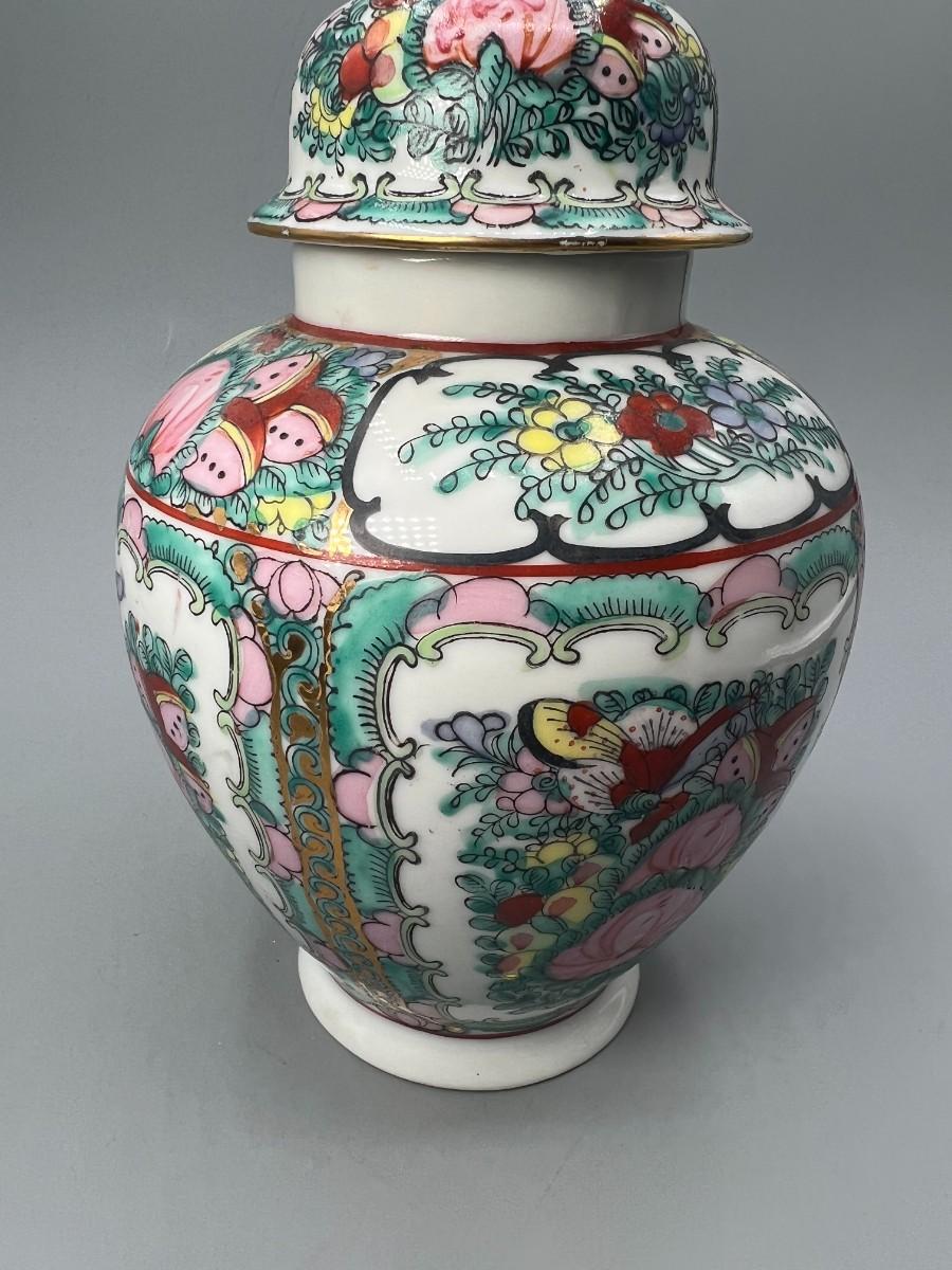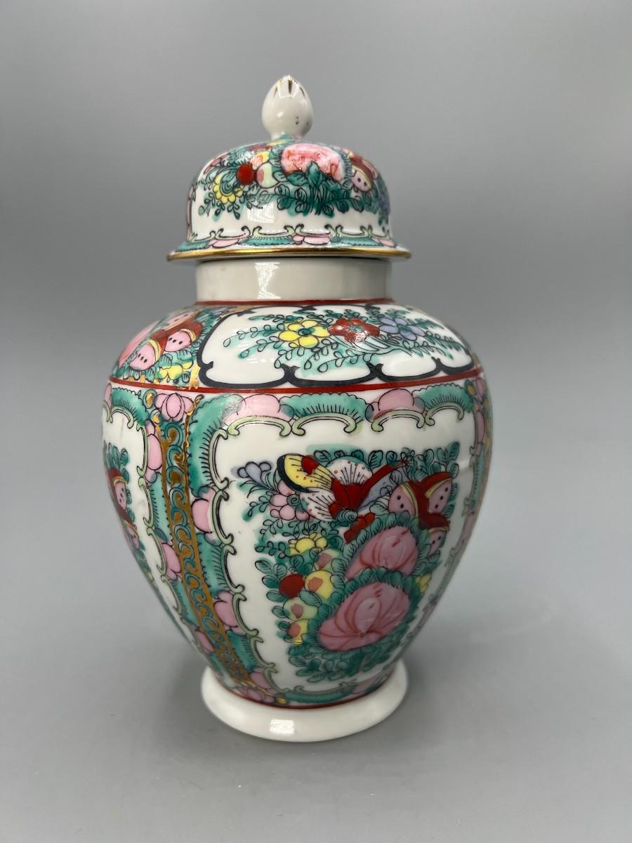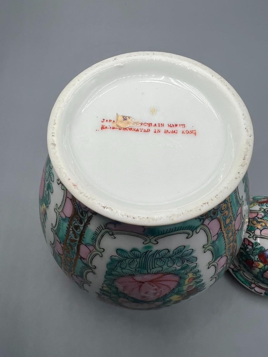 Vintage Oriental Floral Design Colorful Hong Kong Porcelain Ginger Jar Urn