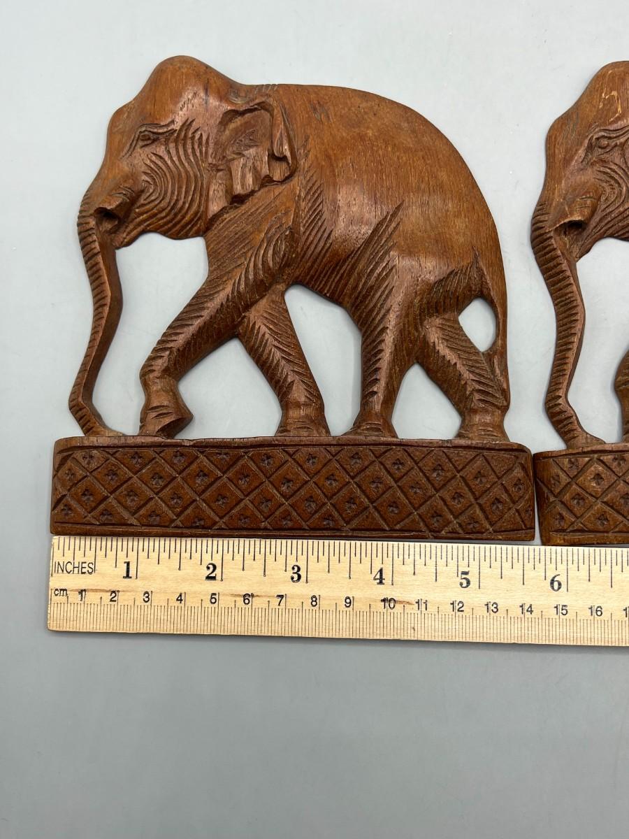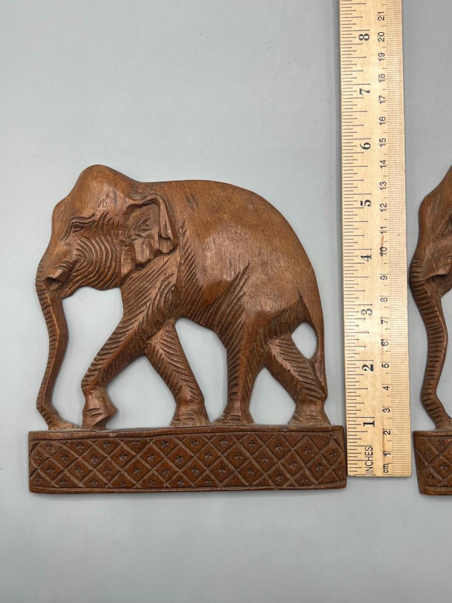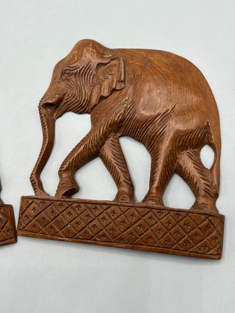 Pair of Retro Wooden Carved Wild Elephant Hanging Decor Art