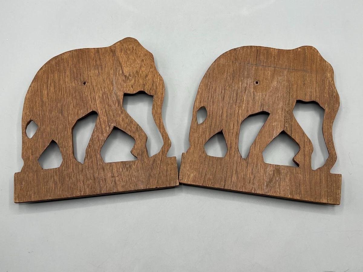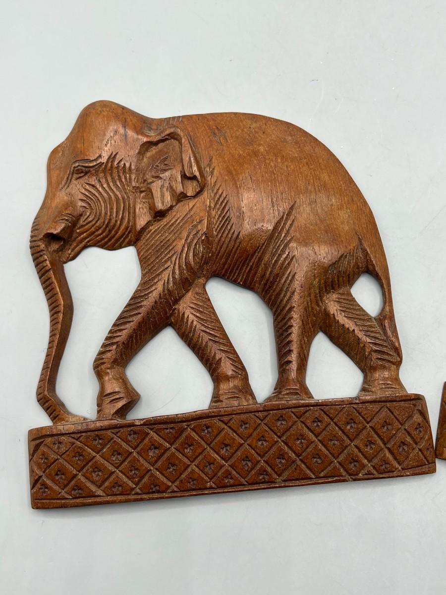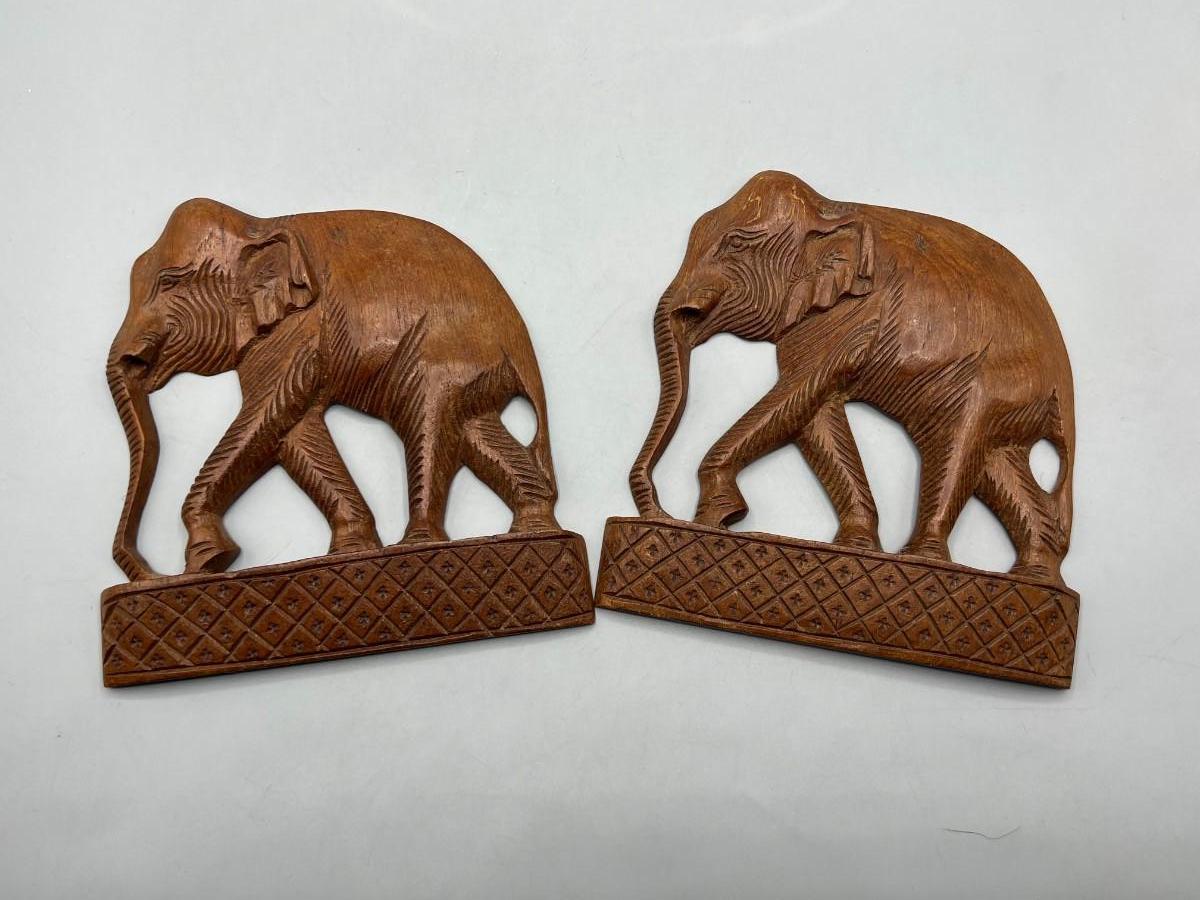 Pair of Retro Wooden Carved Wild Elephant Hanging Decor Art