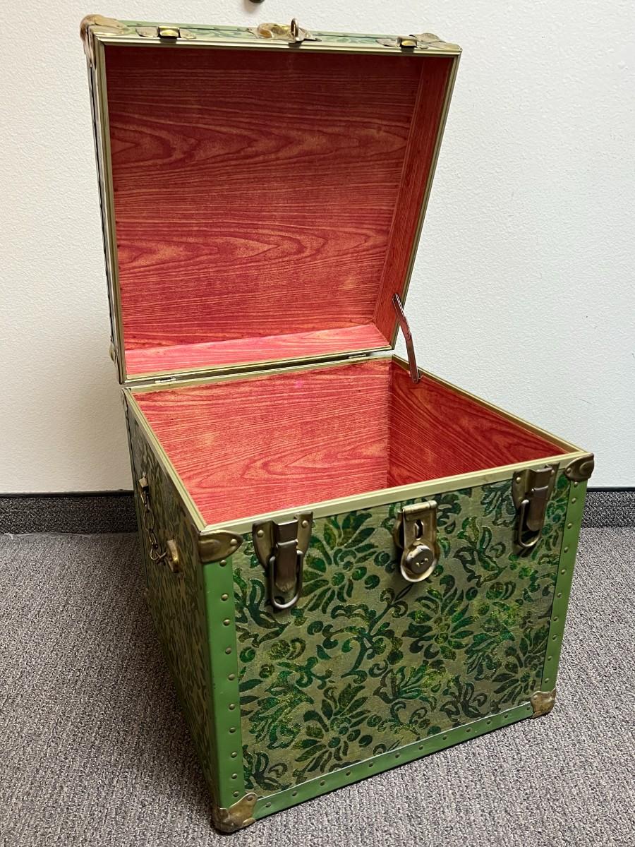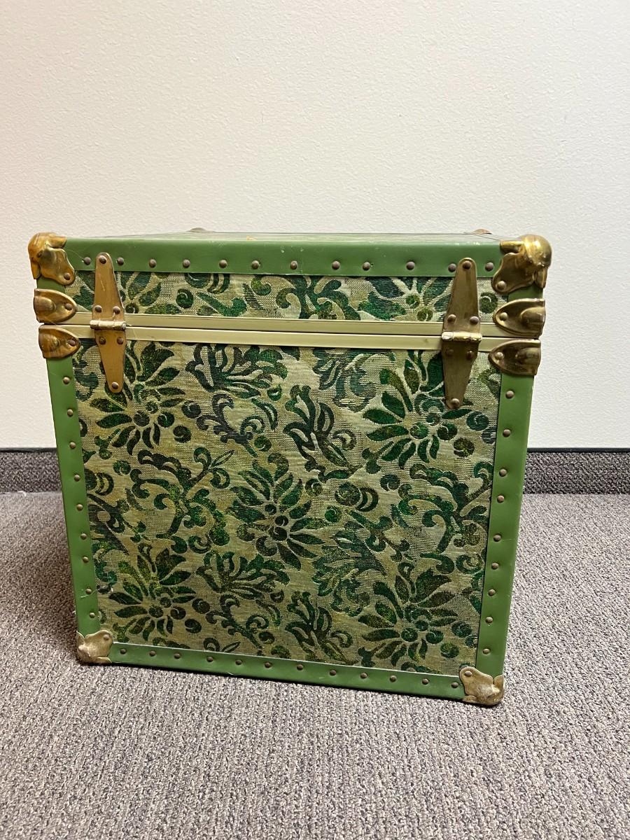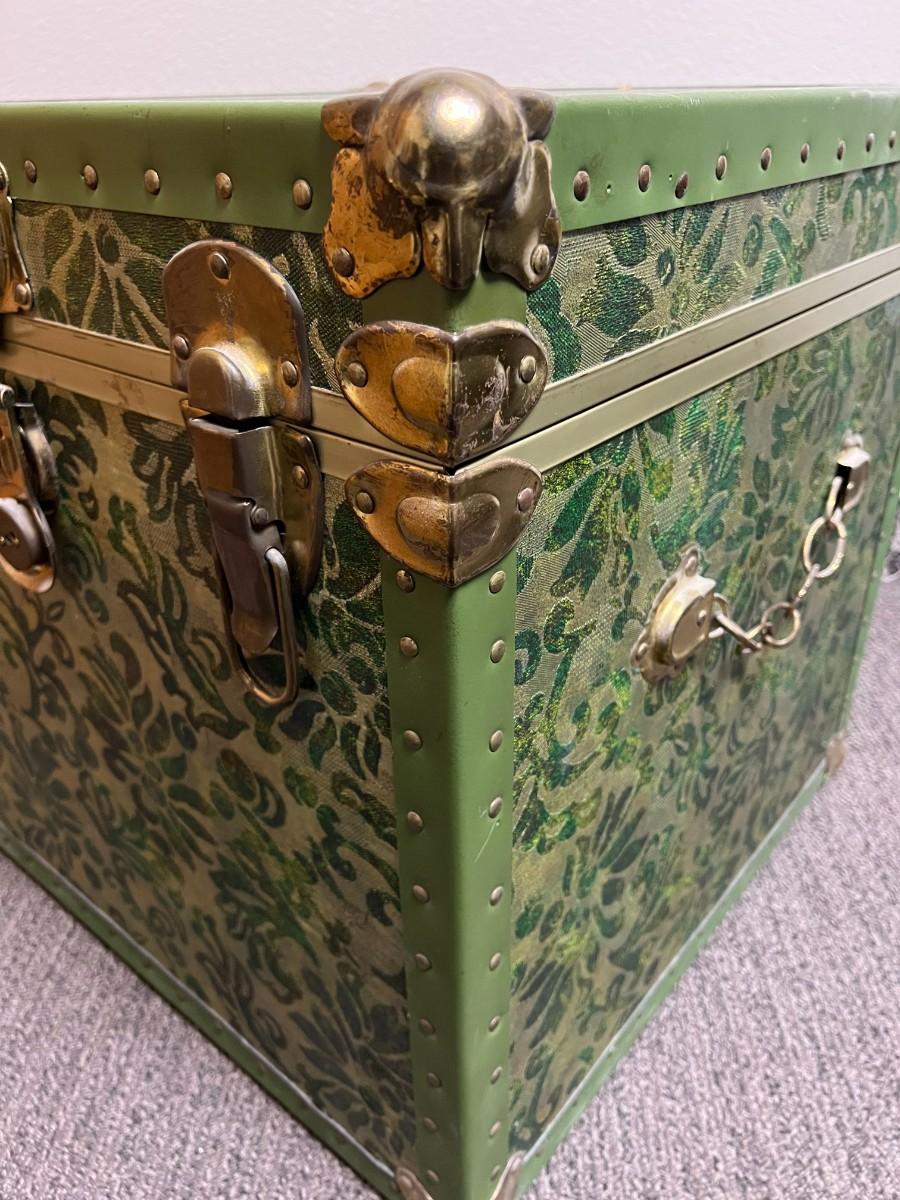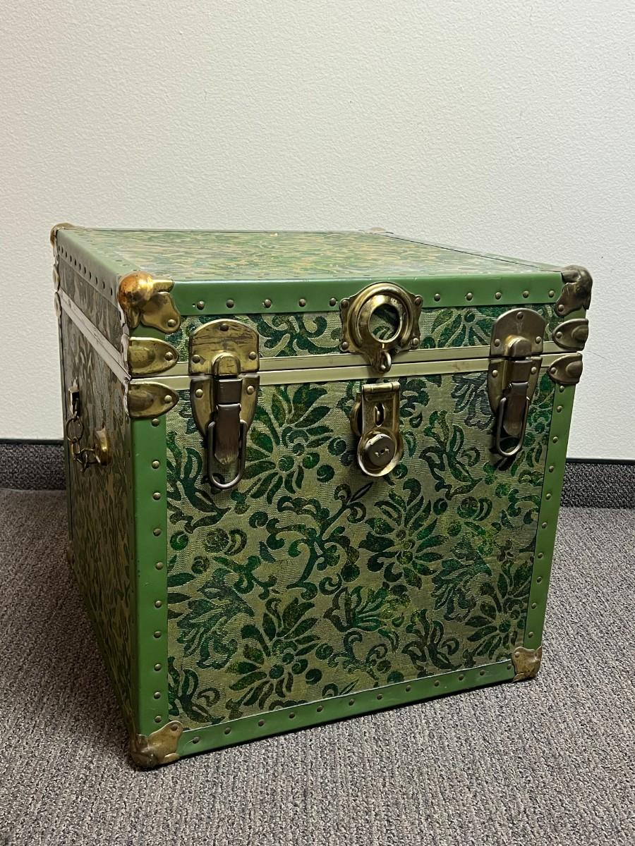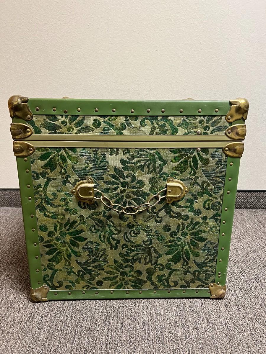 Retro Antique Style Green Fabric Wrapped Storage Trunk
