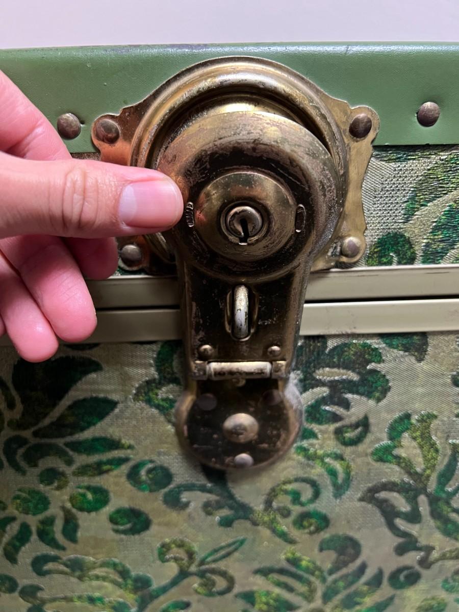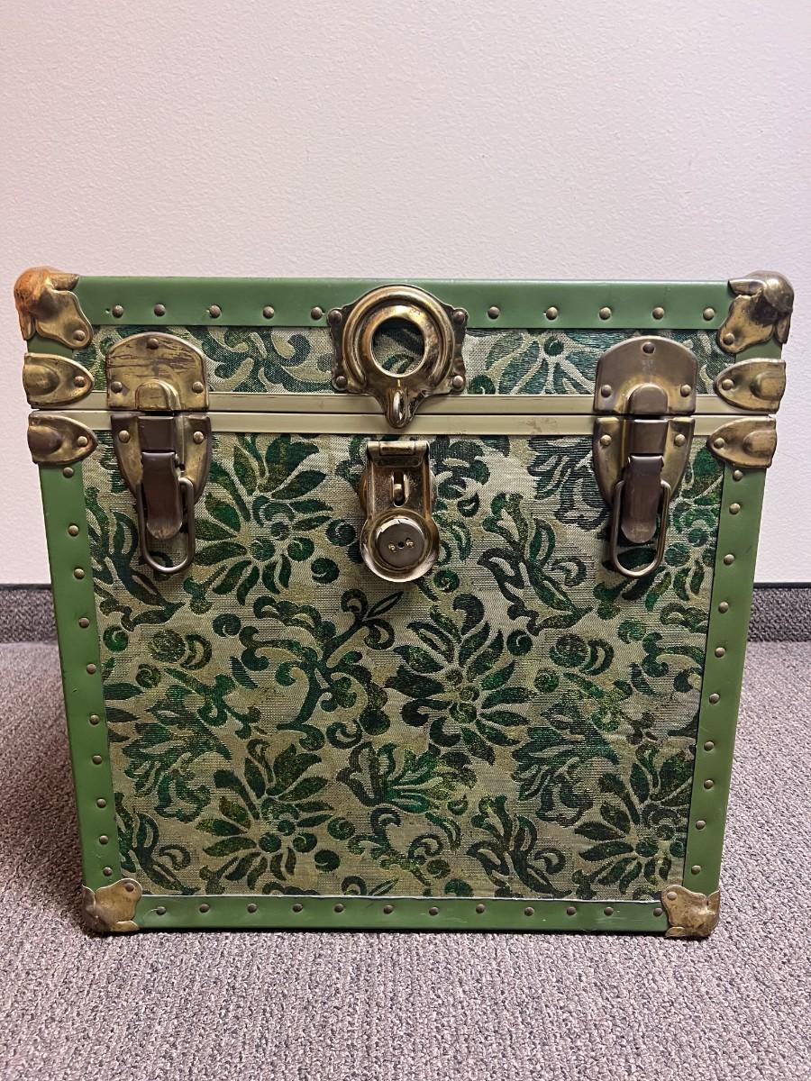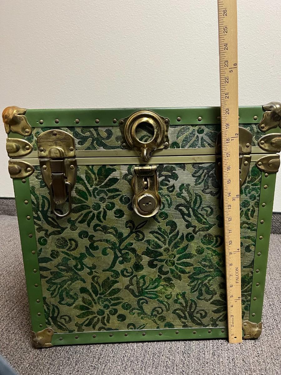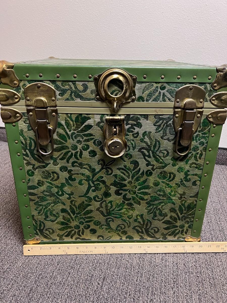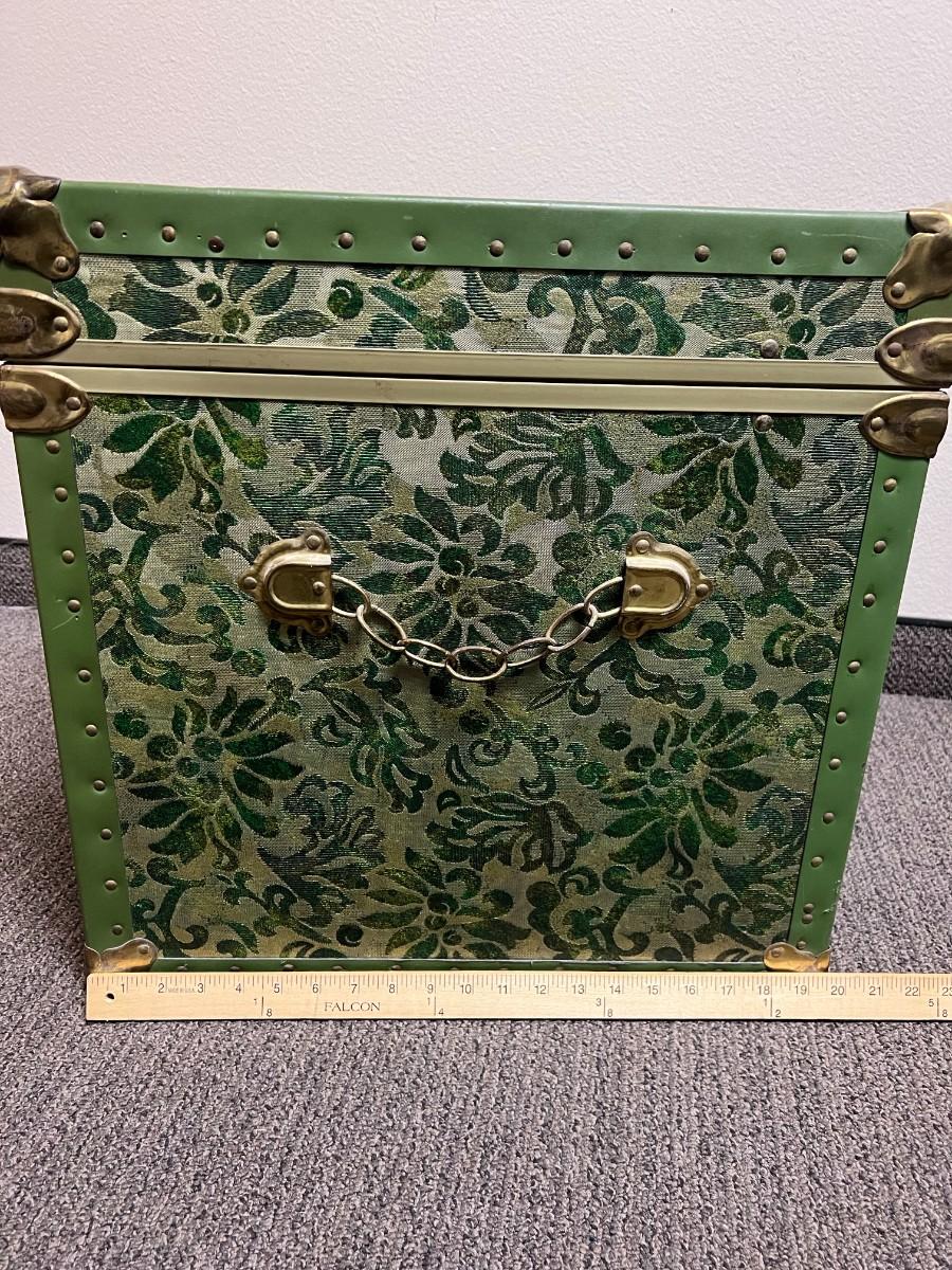 Retro Antique Style Green Fabric Wrapped Storage Trunk